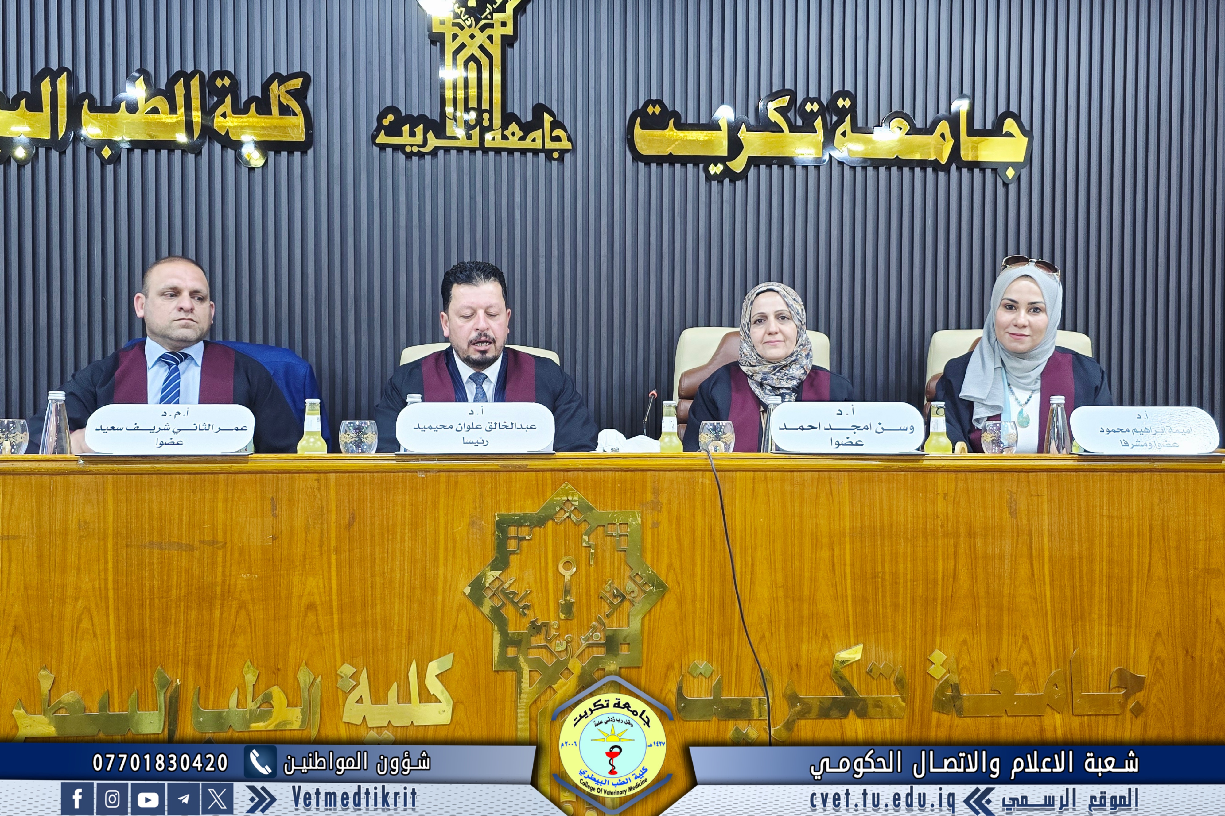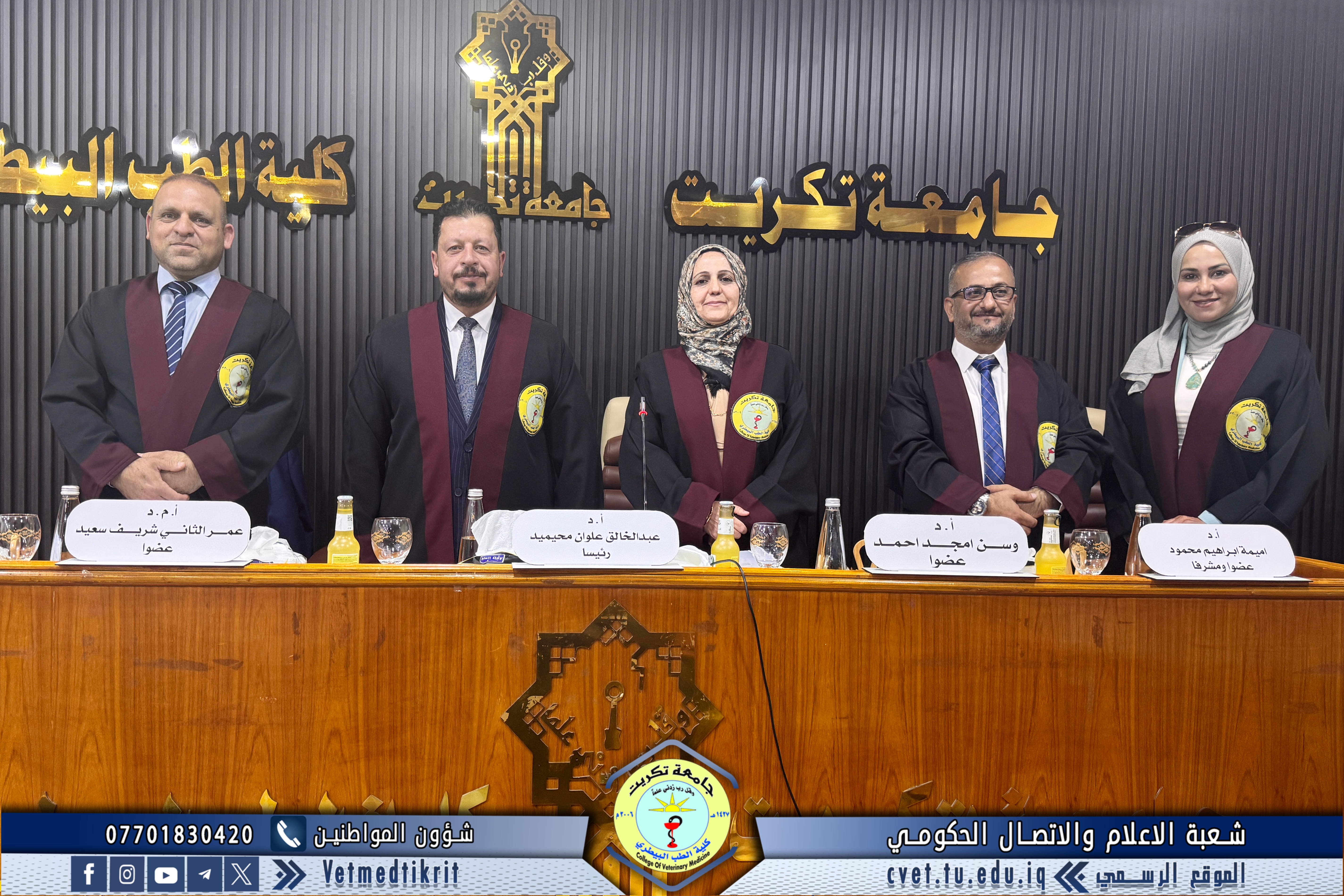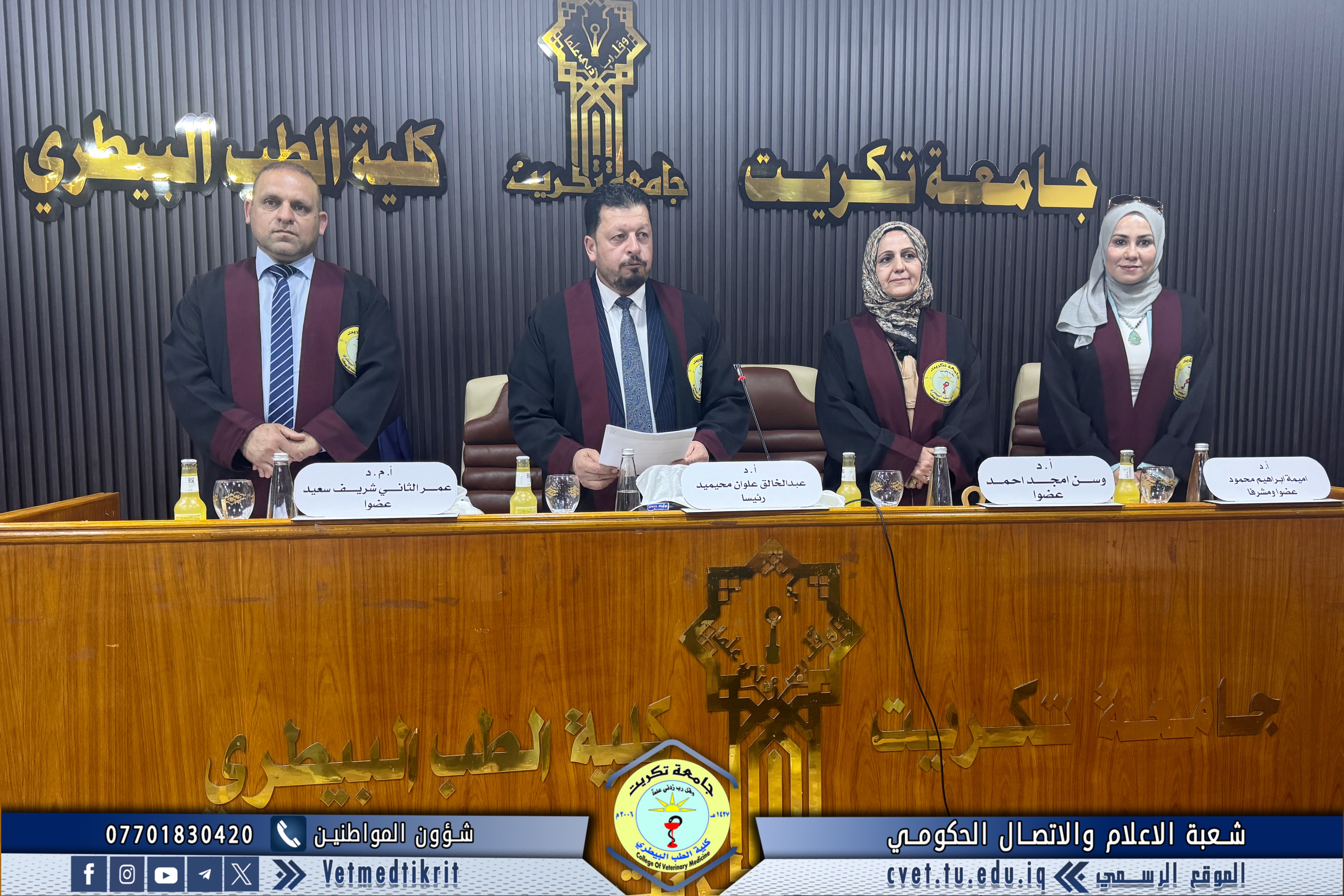 وحضر المناقشة التي اقيمت على قاعة الدكتور مهند ماهر في كلية الطب البيطري عدد من السيدات والسادة اعضاء الكادر التدريسي وجمع من الطلبة.