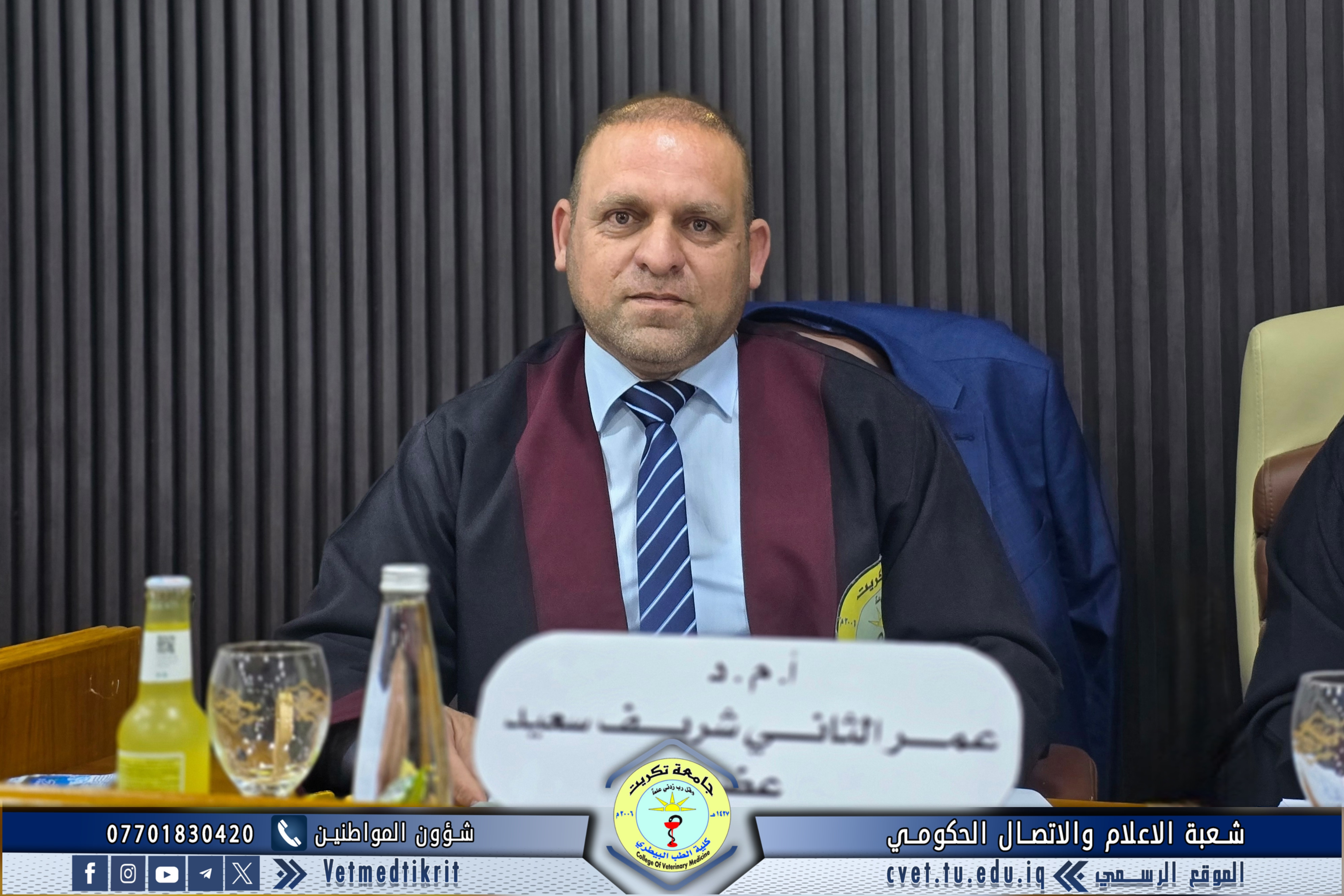 - الاستاذ المساعد الدكتور عمر الثاني شريف سعيد / تخصص طب باطني ووقائي / جامعة تكريت - كلية الطب البيطري / عضوا