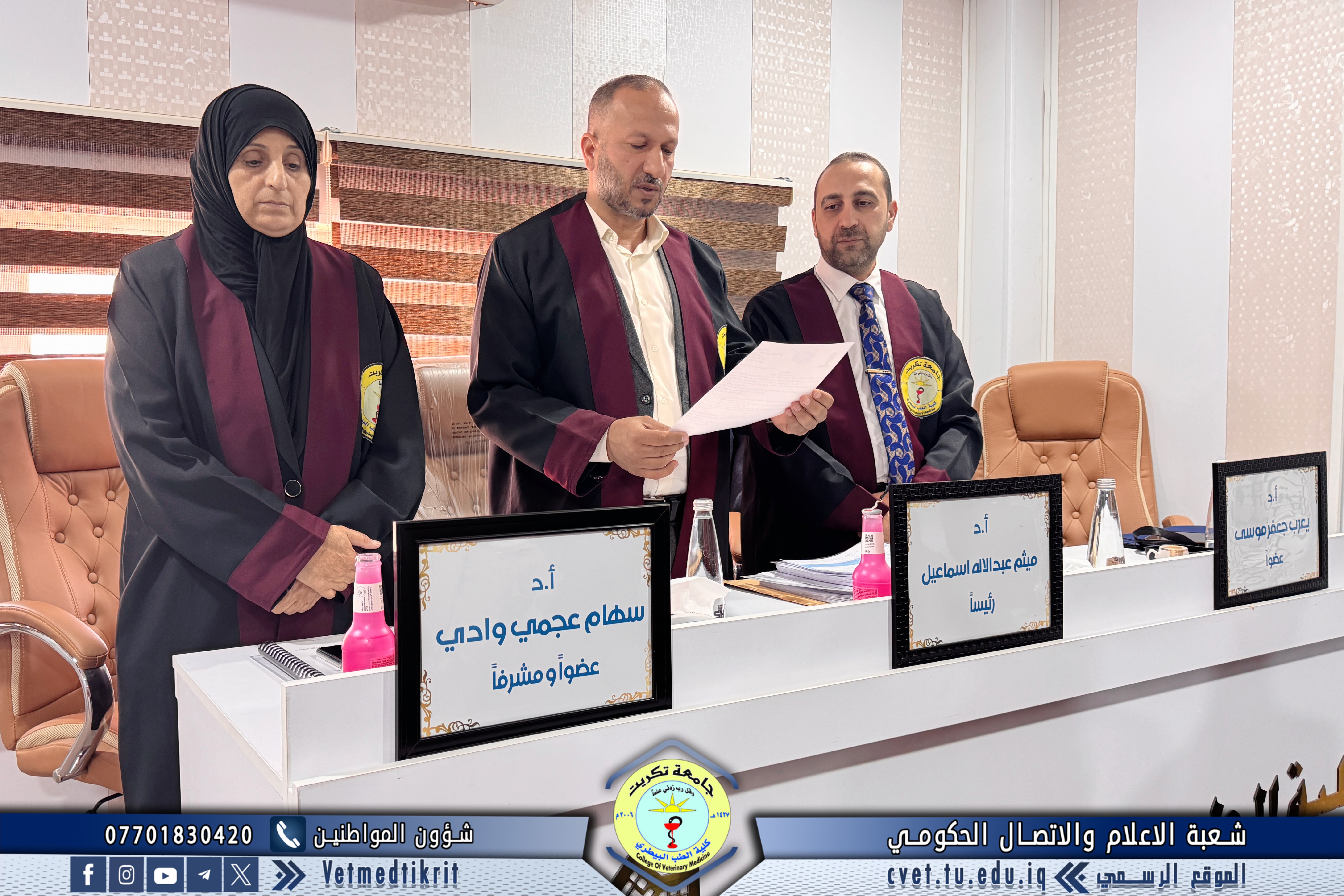 - أ.د. سهام عجمي وادي / تخصص ادوية بيطرية / كلية الطب البيطري - جامعة تكريت / عضوا ومشرفا