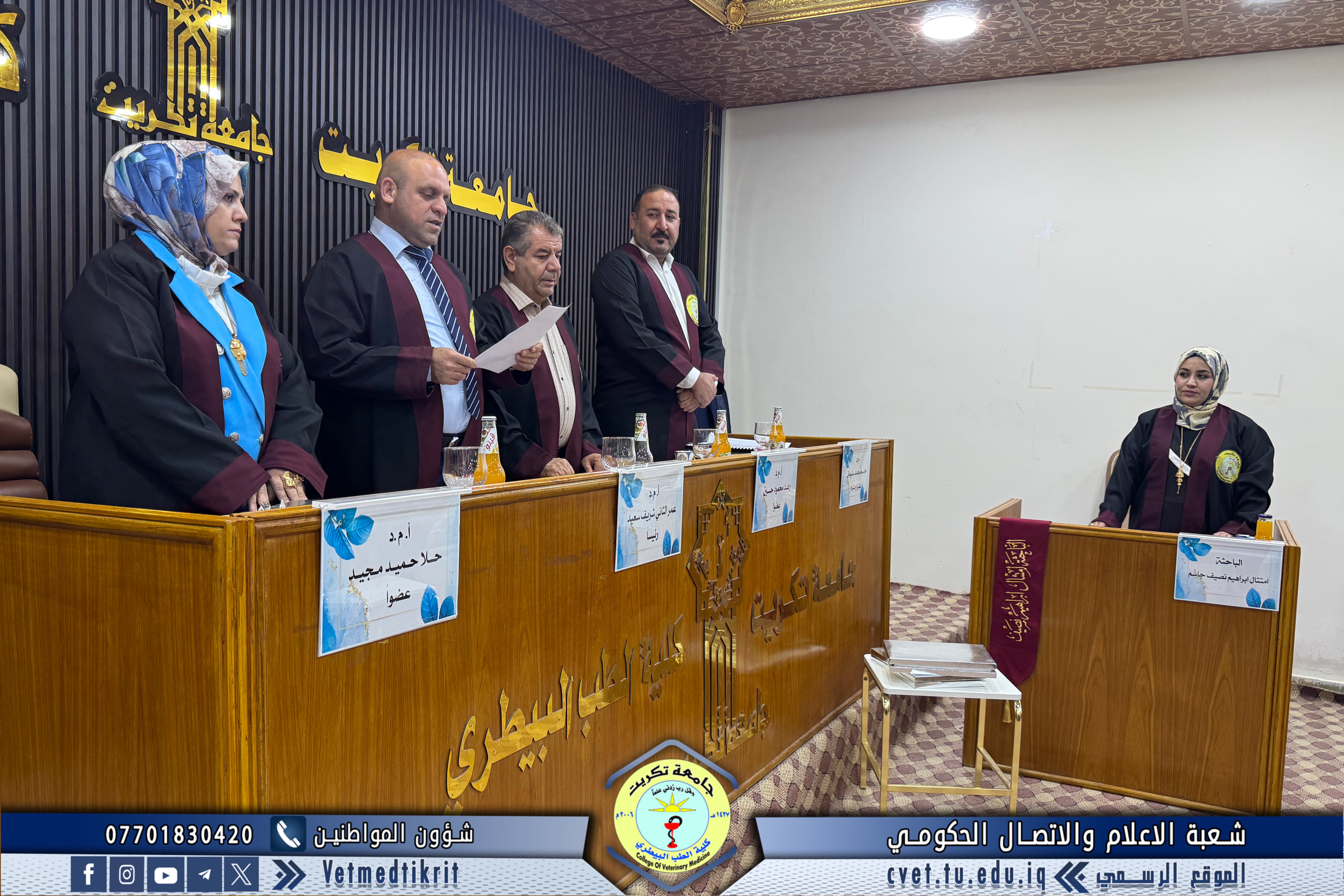 وحضر المناقشة التي اقيمت على قاعة د. مهند ماهر في كلية الطب البيطري عدد من السيدات والسادة اعضاء الكادر التدريسي وجمع من الطلبة.