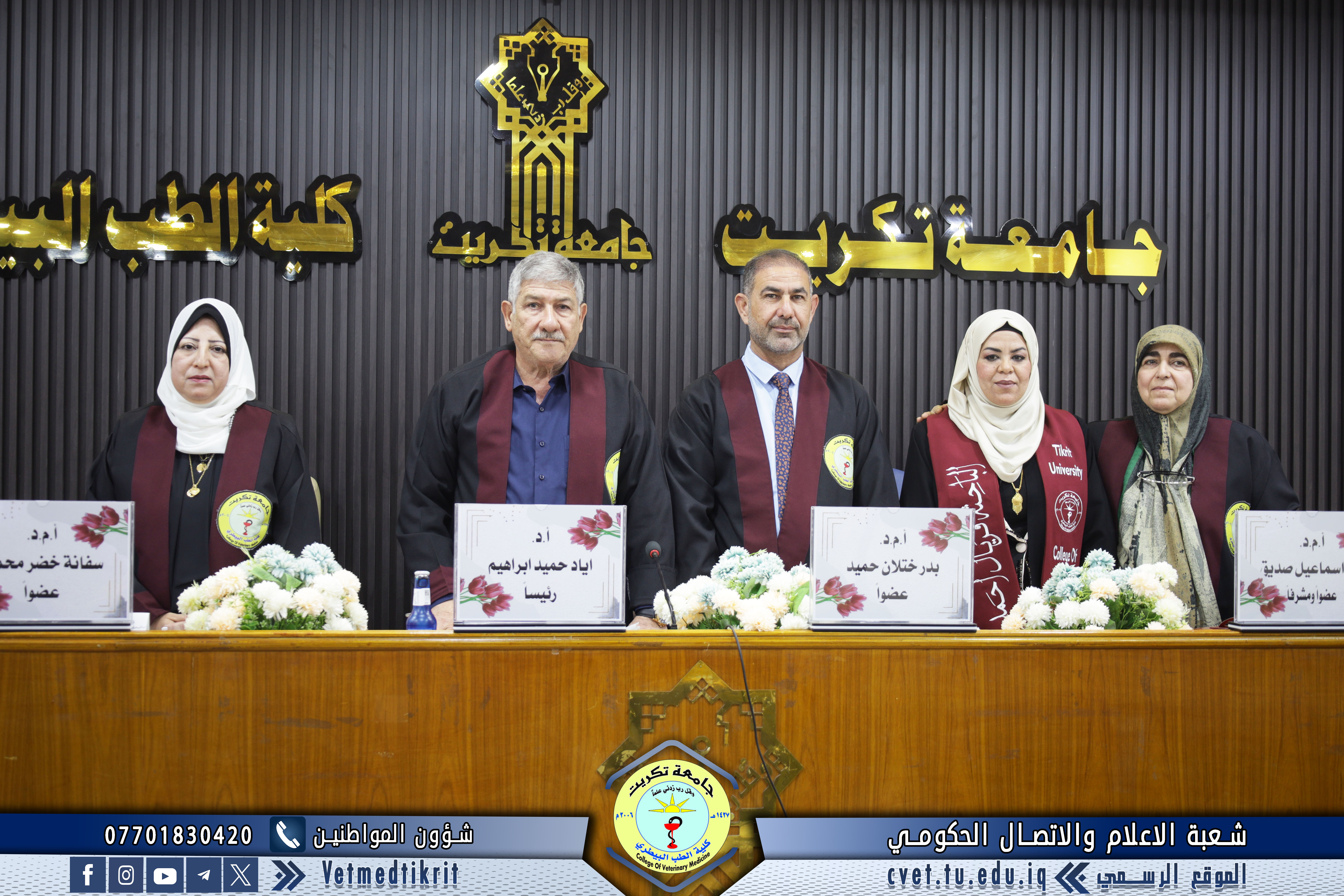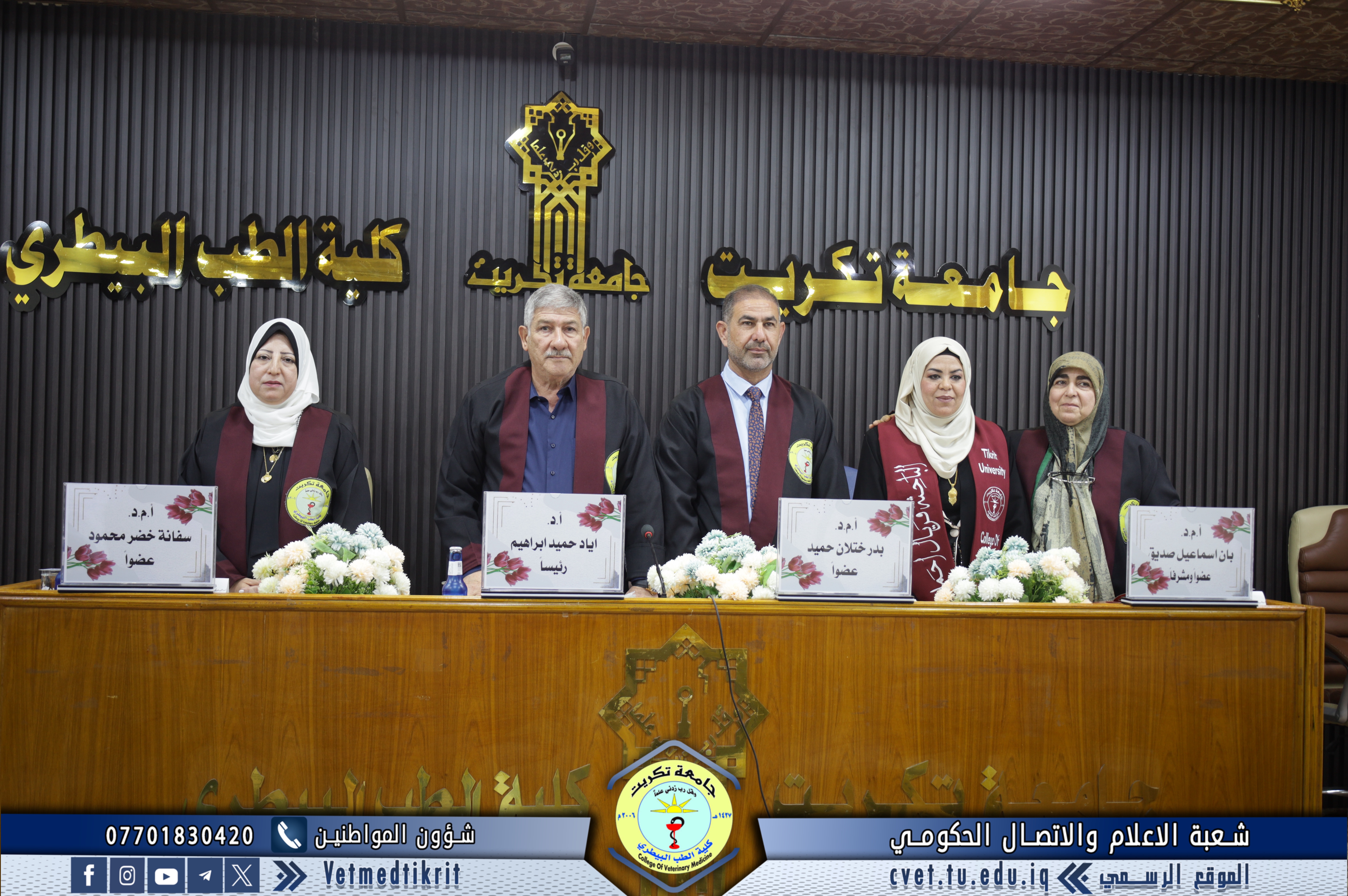 - الاستاذ الدكتور اياد حميد ابراهيم / تخصص تشريح / جامعة تكريت - كلية الطب البيطري / رئيسا