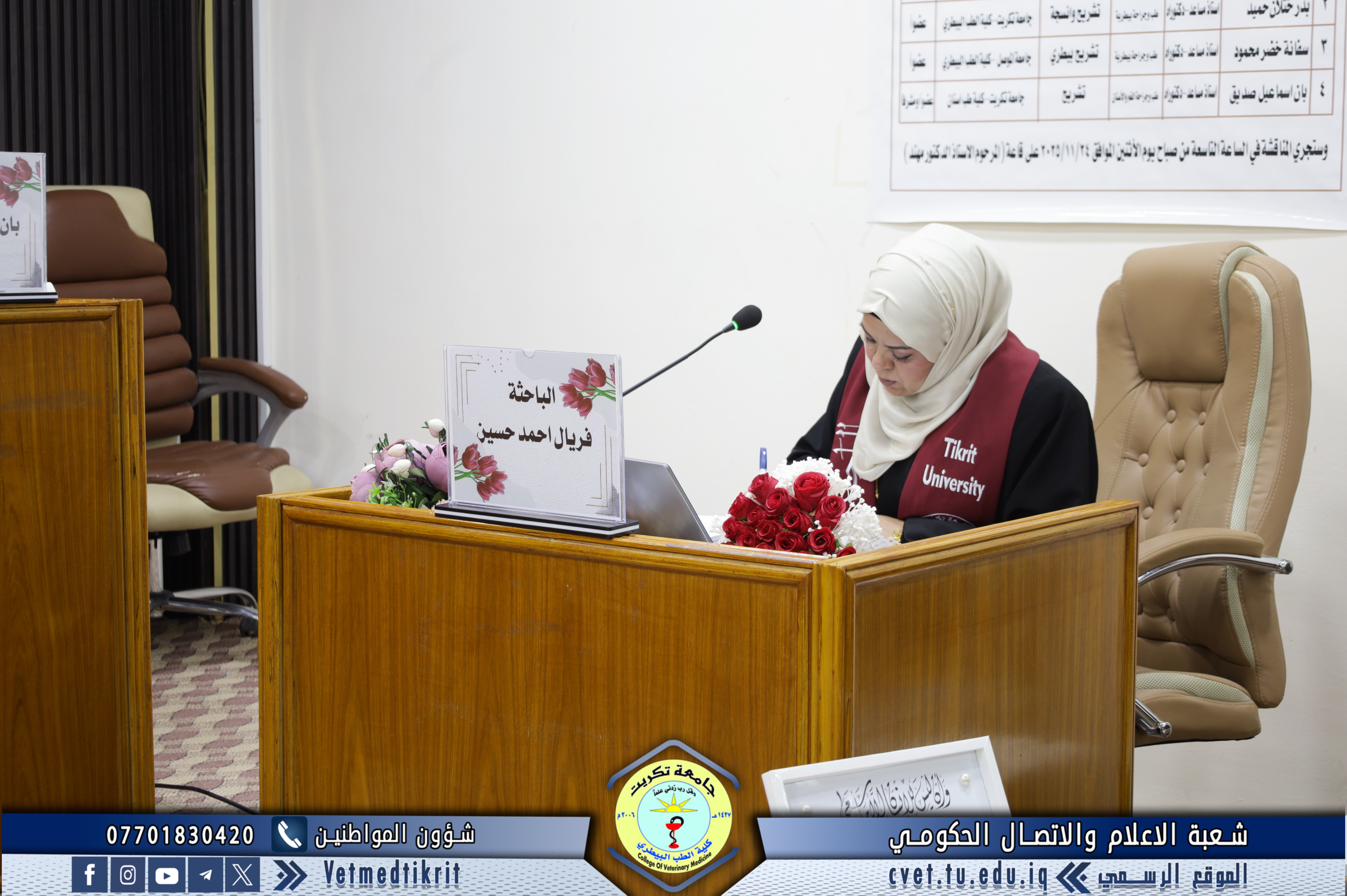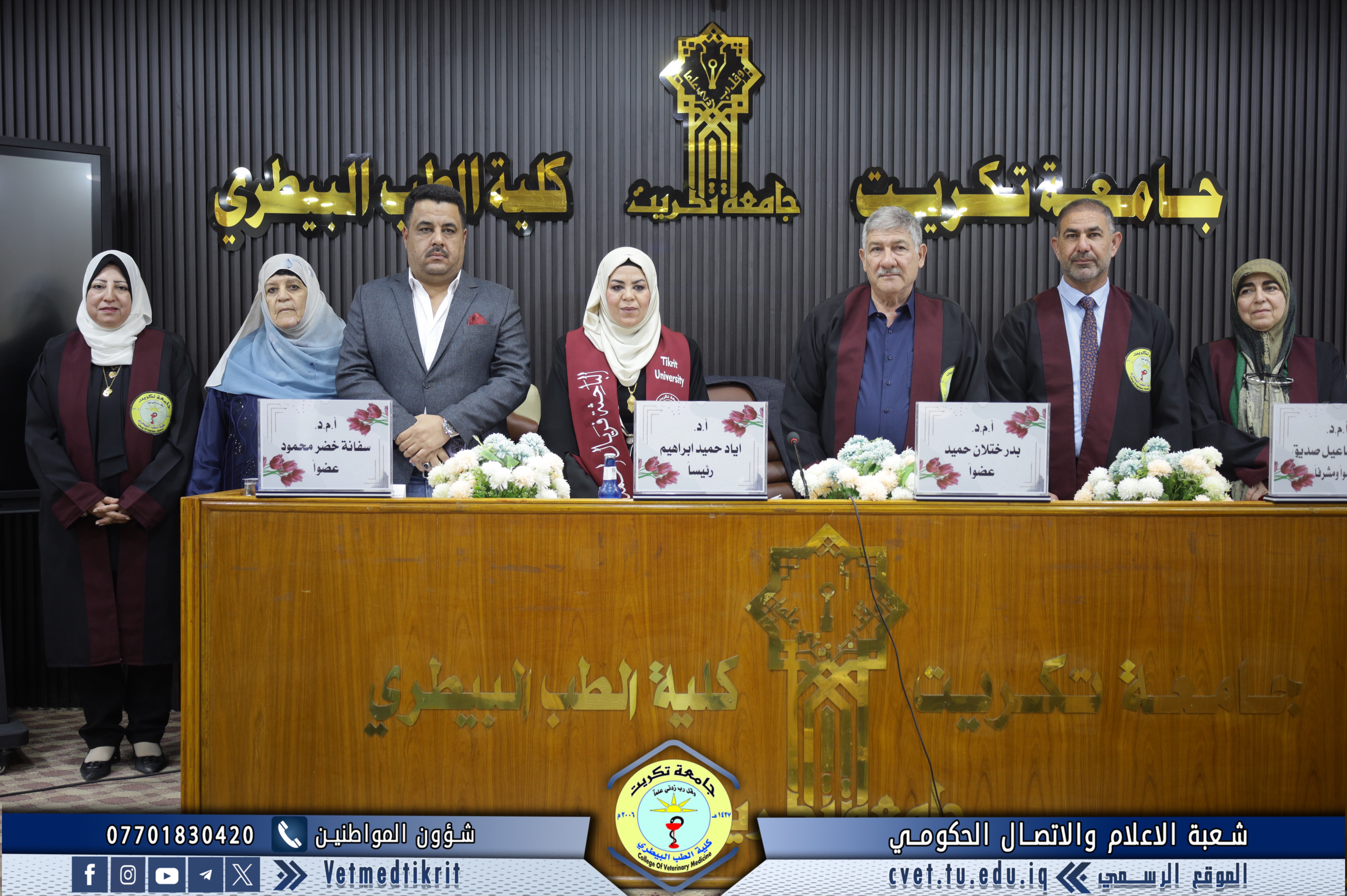 وحضر المناقشة التي اقيمت على قاعة الدكتور مهند ماهر في كلية الطب البيطري عدد من السيدات والسادة اعضاء الكادر التدريسي وجمع من الطلبة.