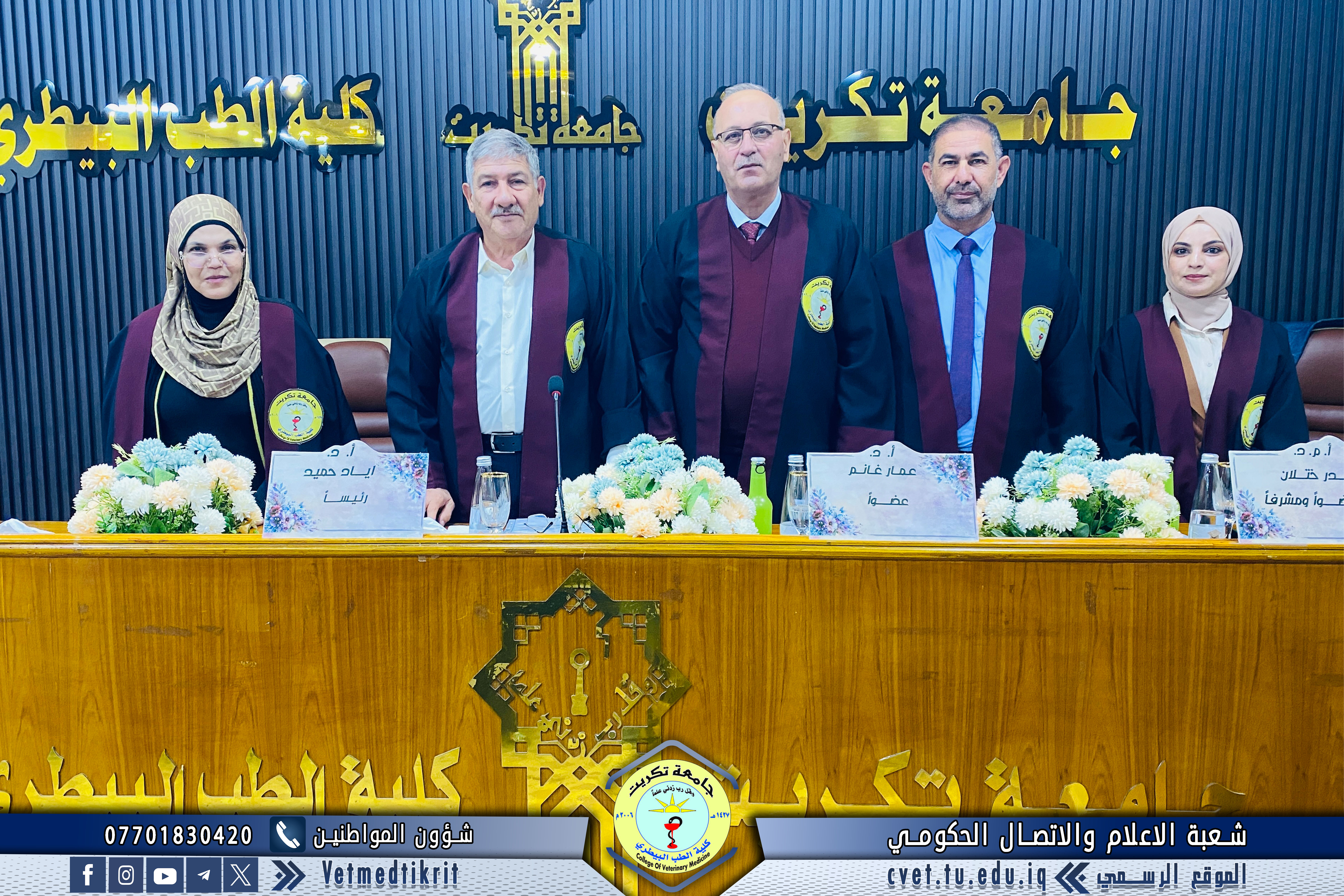 - الاستاذ المساعد الدكتور بدر ختلان حميد / تخصص تشريح وانسجة / جامعة تكريت - كلية الطب البيطري / عضوا ومشرفا