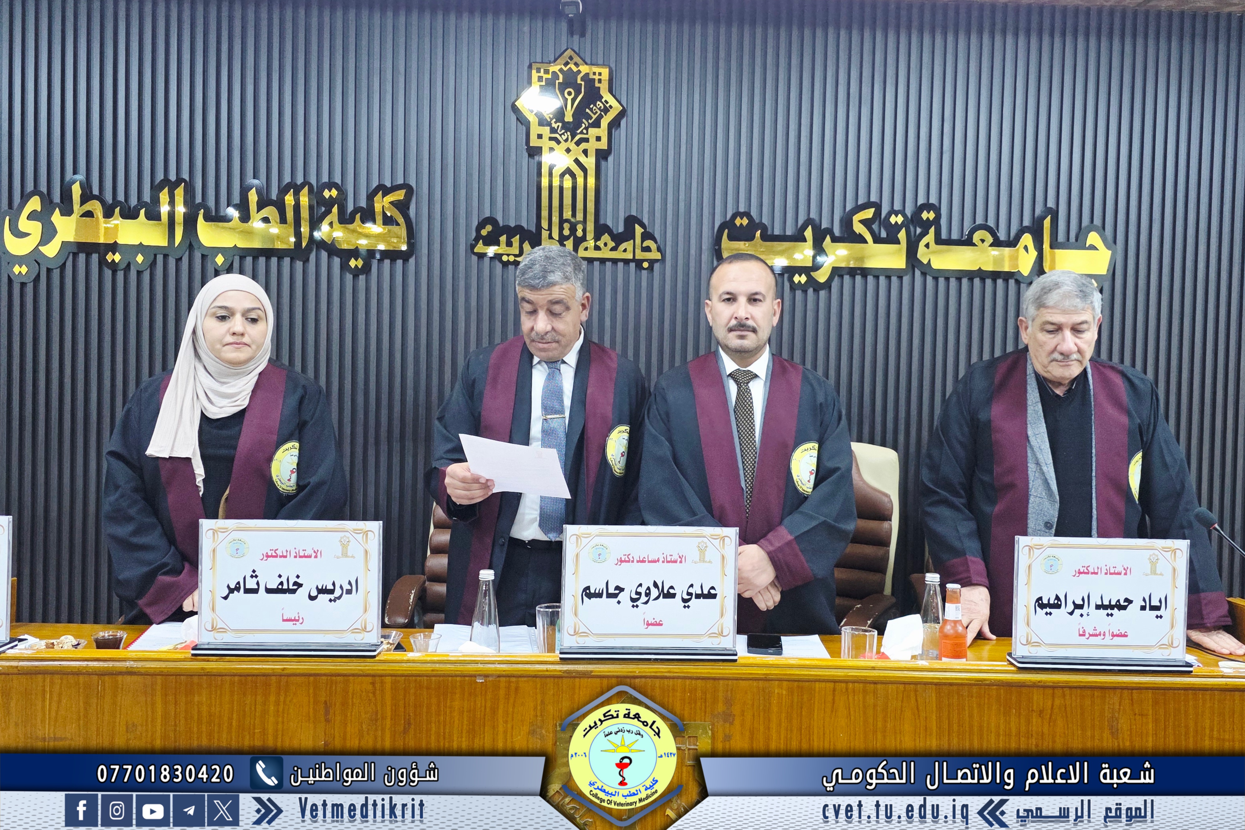 - الاستاذ الدكتور اياد حميد ابراهيم / تخصص تشريح / جامعة تكريت - كلية الطب البيطري / عضوا ومشرفا