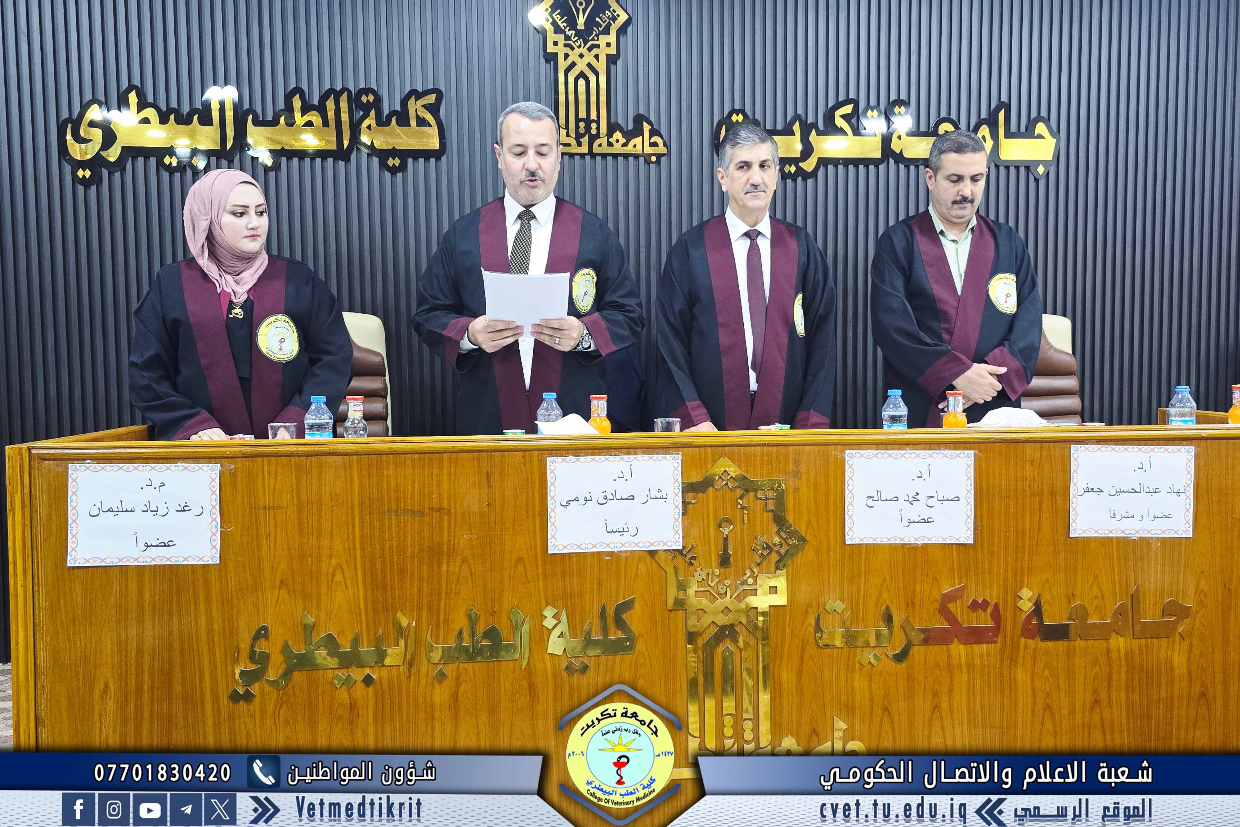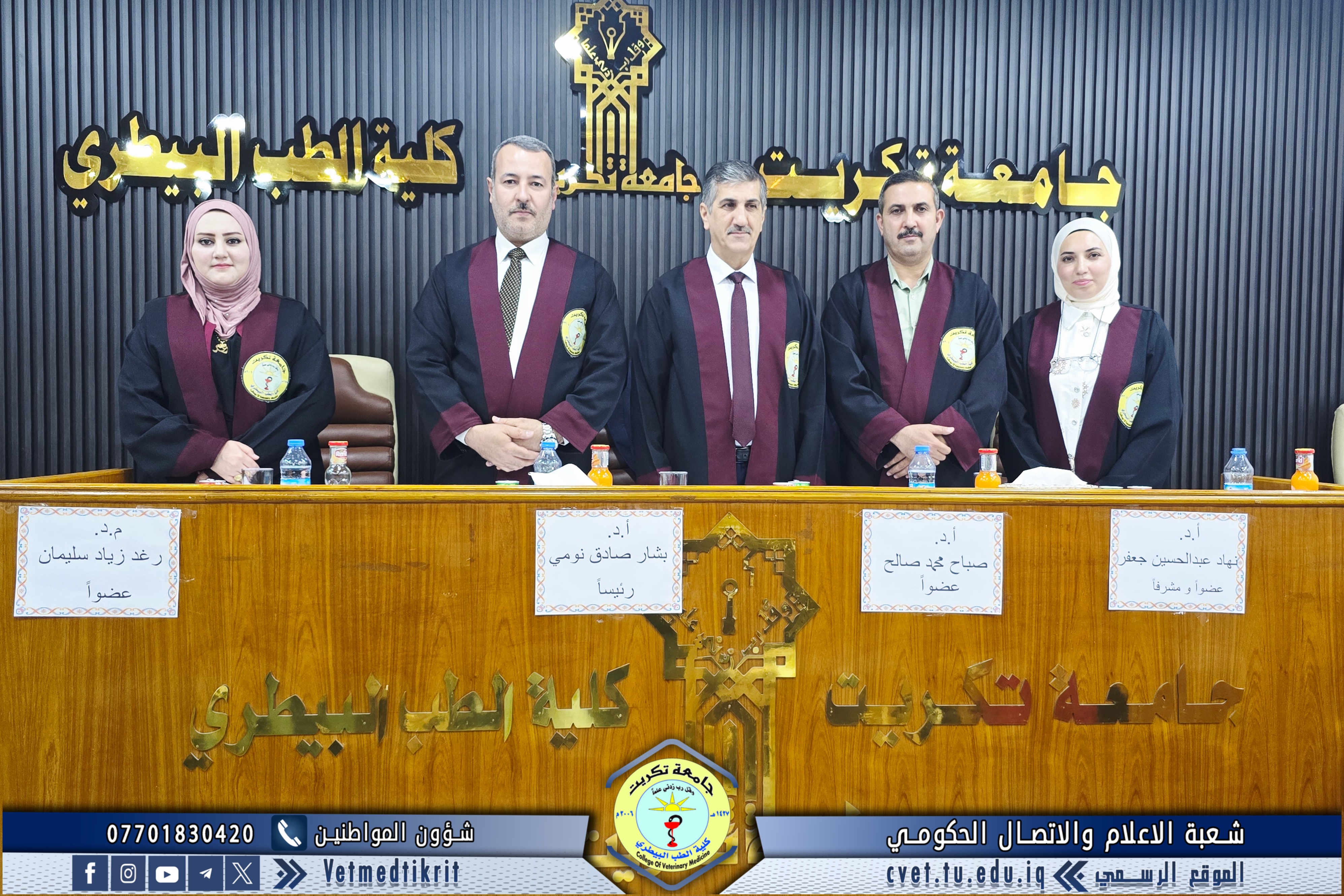 وحضر المناقشة التي اقيمت على قاعة د. مهند ماهر في كلية الطب البيطري عدد من السيدات والسادة اعضاء الكادر التدريسي وجمع من الطلبة.