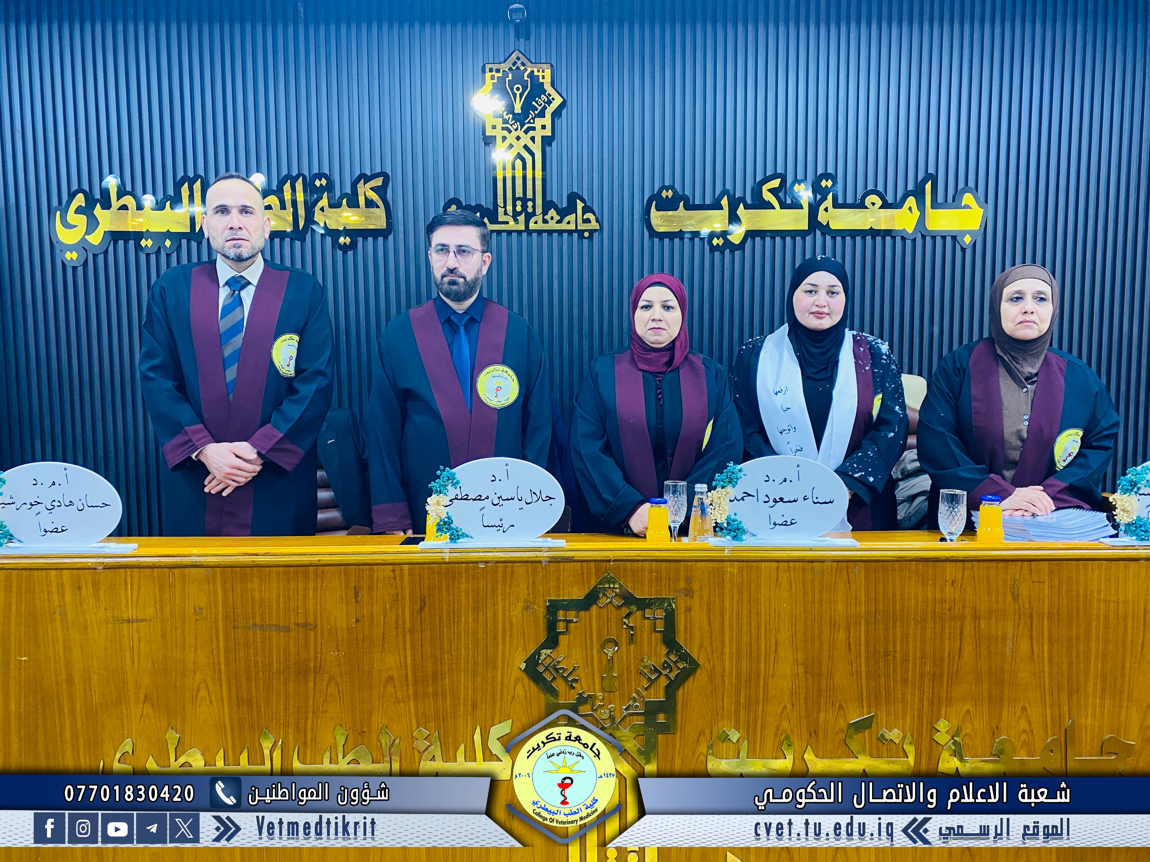 وحضر المناقشة التي اقيمت على قاعة الدكتور مهند ماهر في كلية الطب البيطري عدد من السيدات والسادة اعضاء الكادر التدريسي وجمع من الطلبة.