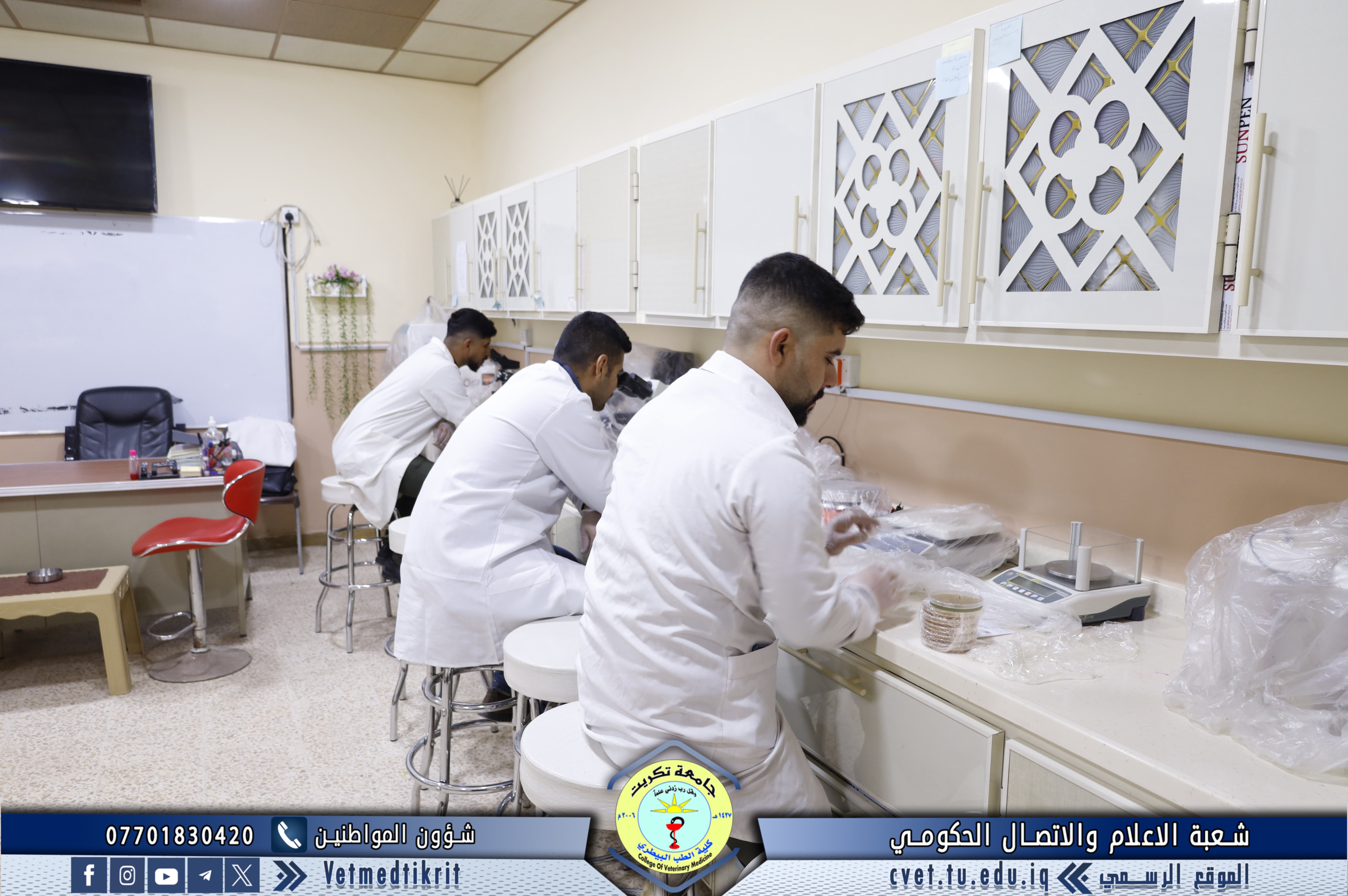 كلية الطب البيطري في جامعة تكريت تستقبل لجنة جامعية لمتابعة عمل المختبرات