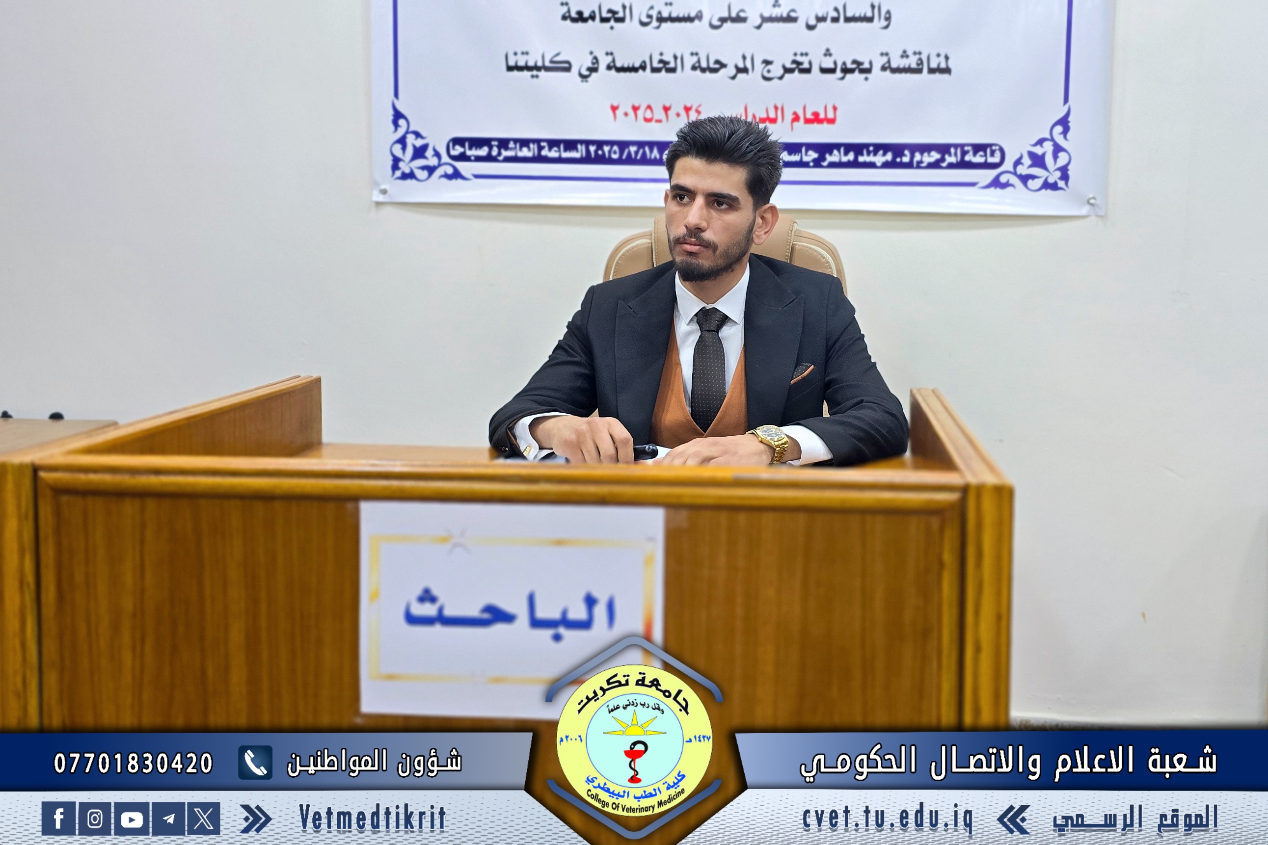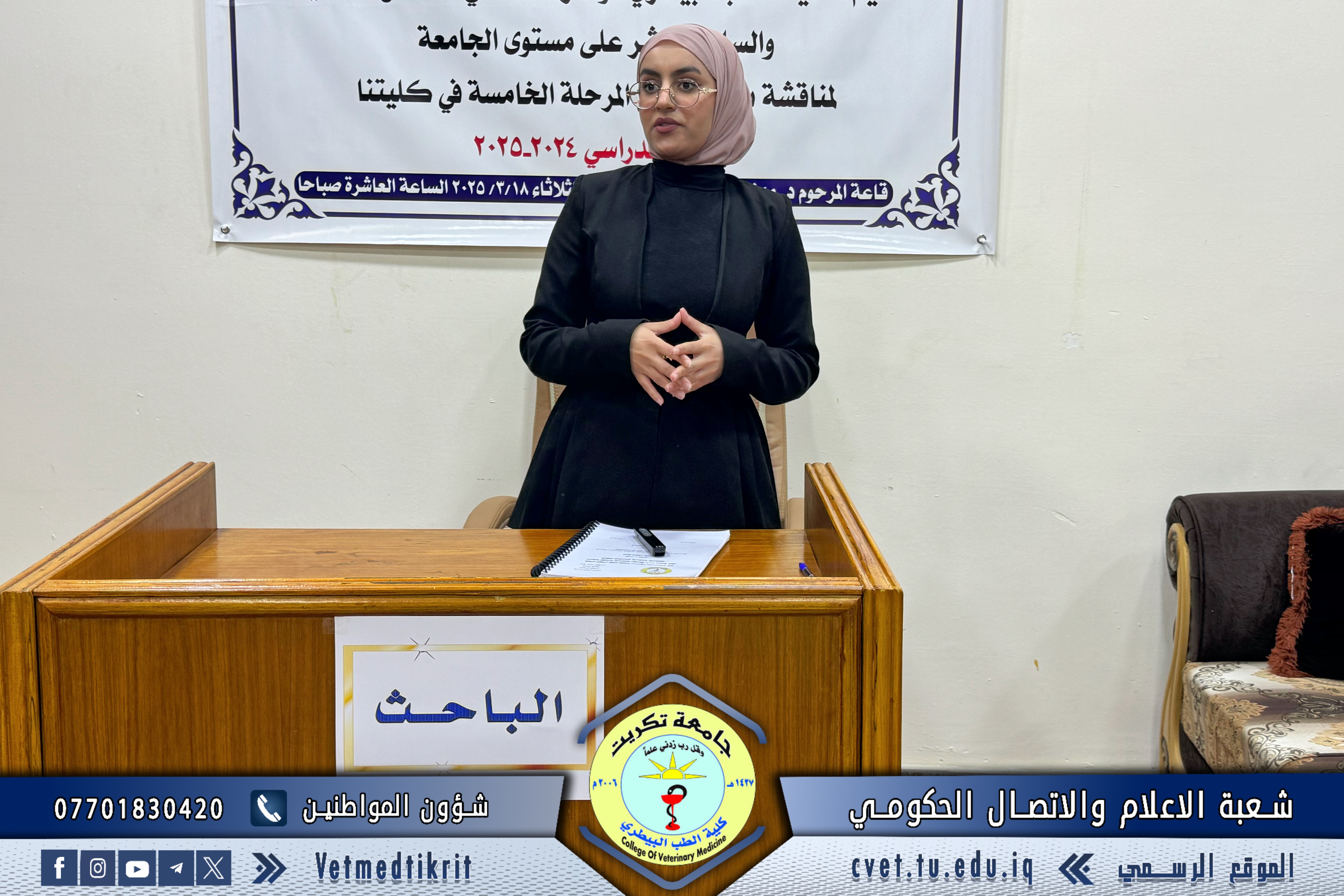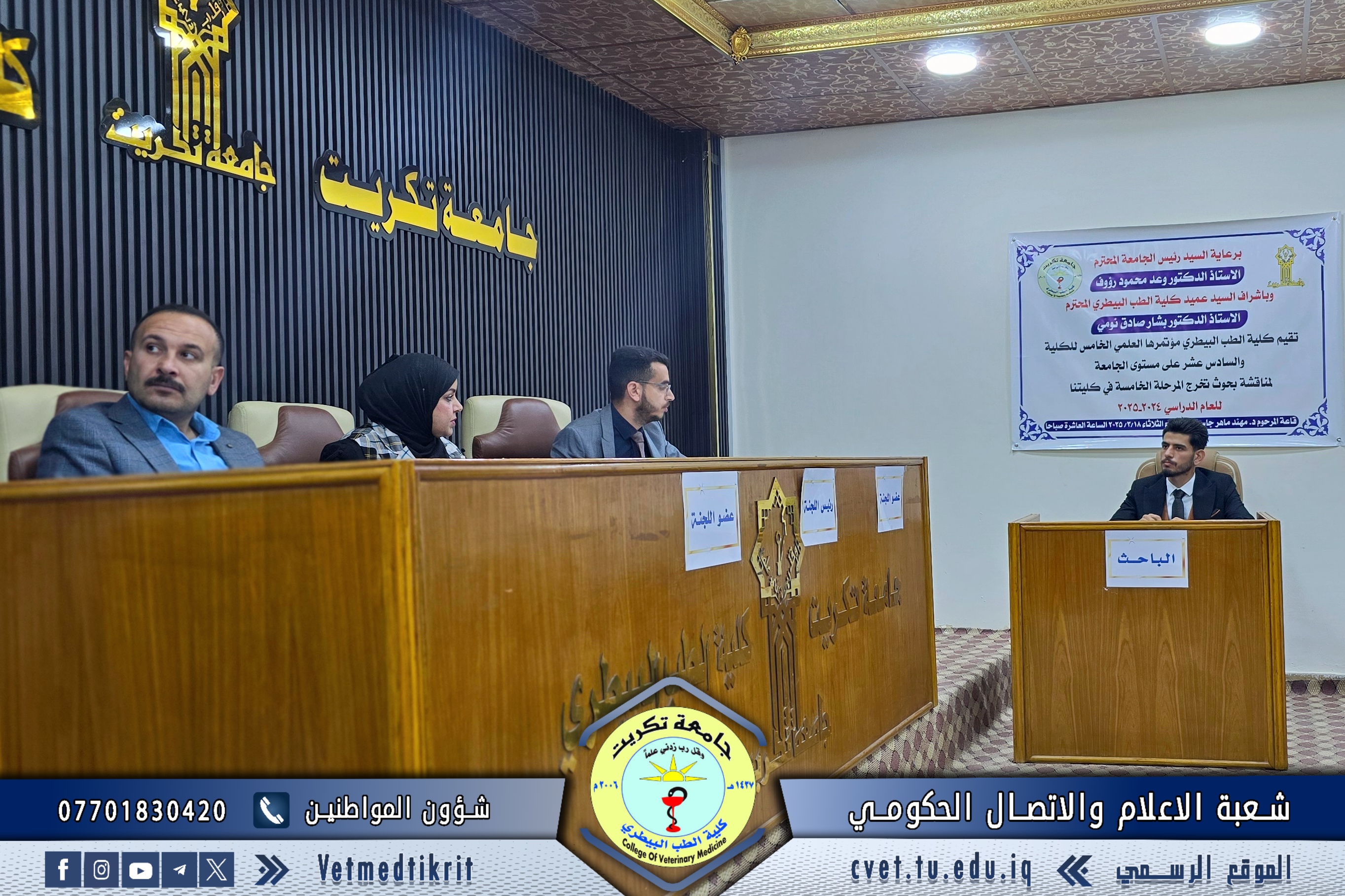 تغطية صورية لاعمال المؤتمر العلمي الخامس لكلية الطب البيطري والسادس عشر على مستوى جامعة تكريت لمناقشة بحوث تخرج الطلبة والذي اقيم على قاعة د. مهند ماهر (رحمه الله) للفترة 18 و 19/3/2025.
