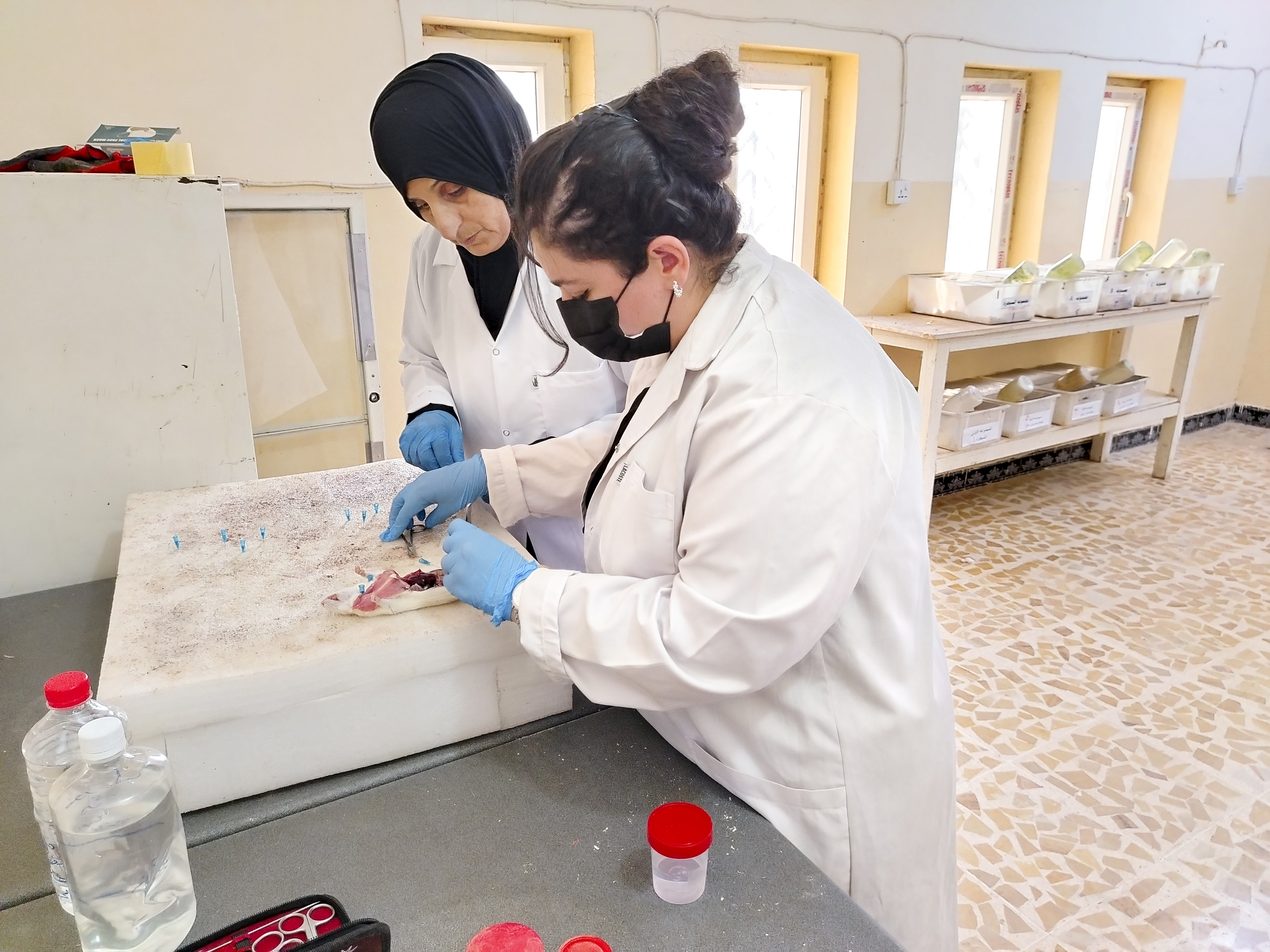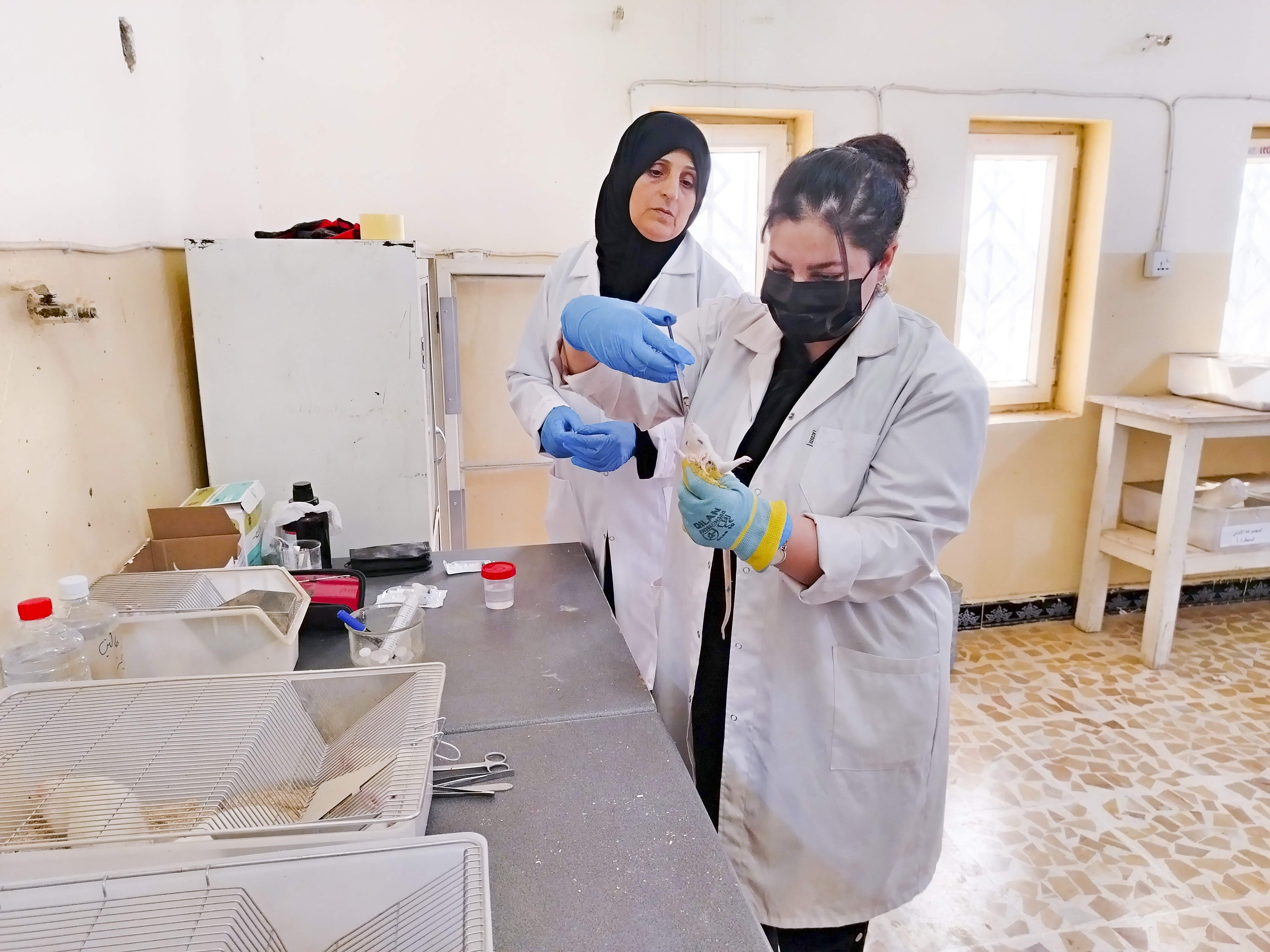 طلبة الدراسات العليا في ماجستير الأدوية البيطرية يجرون تجاربهم العملية في البيت الحيواني التابع للكلية
