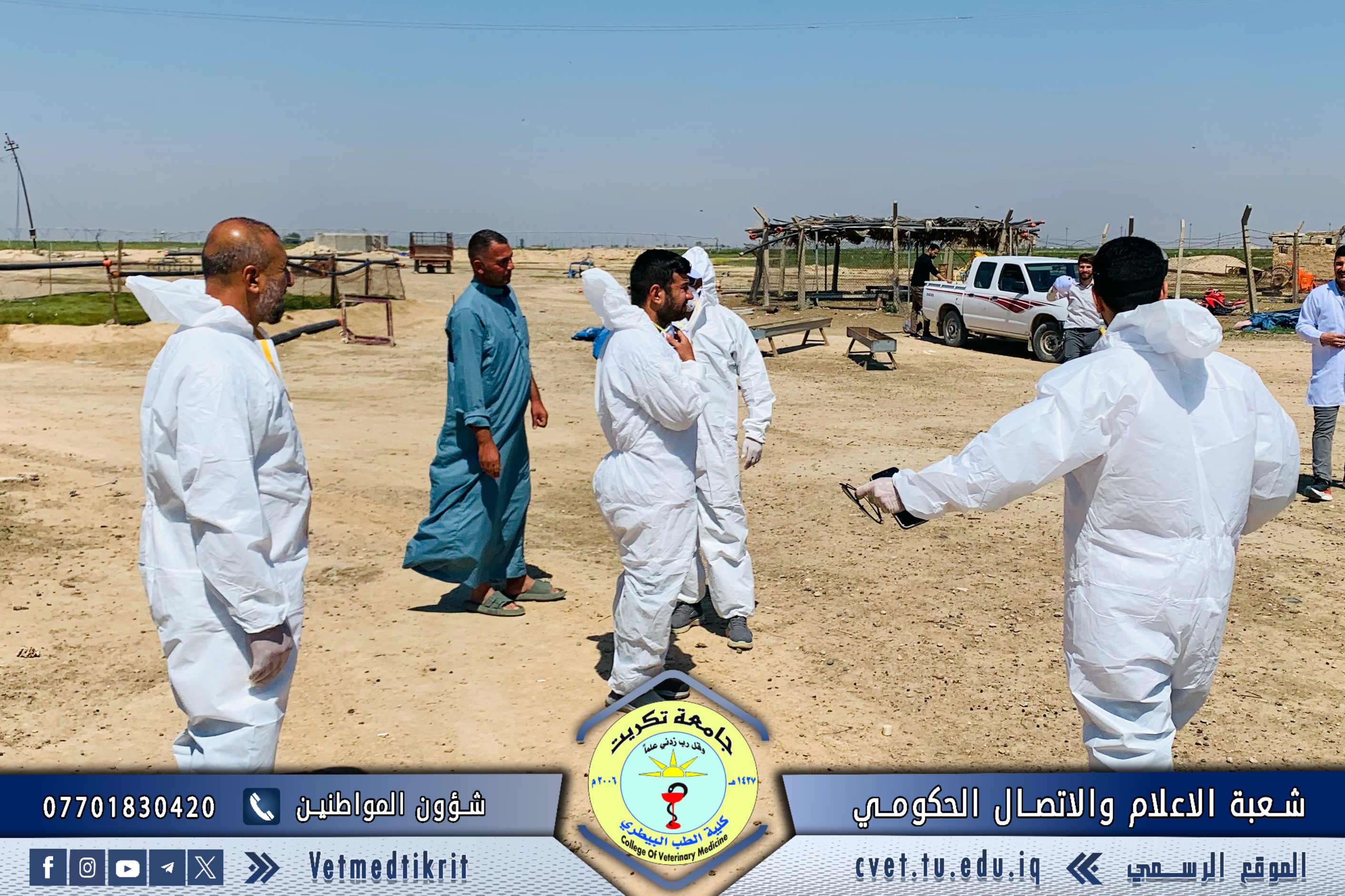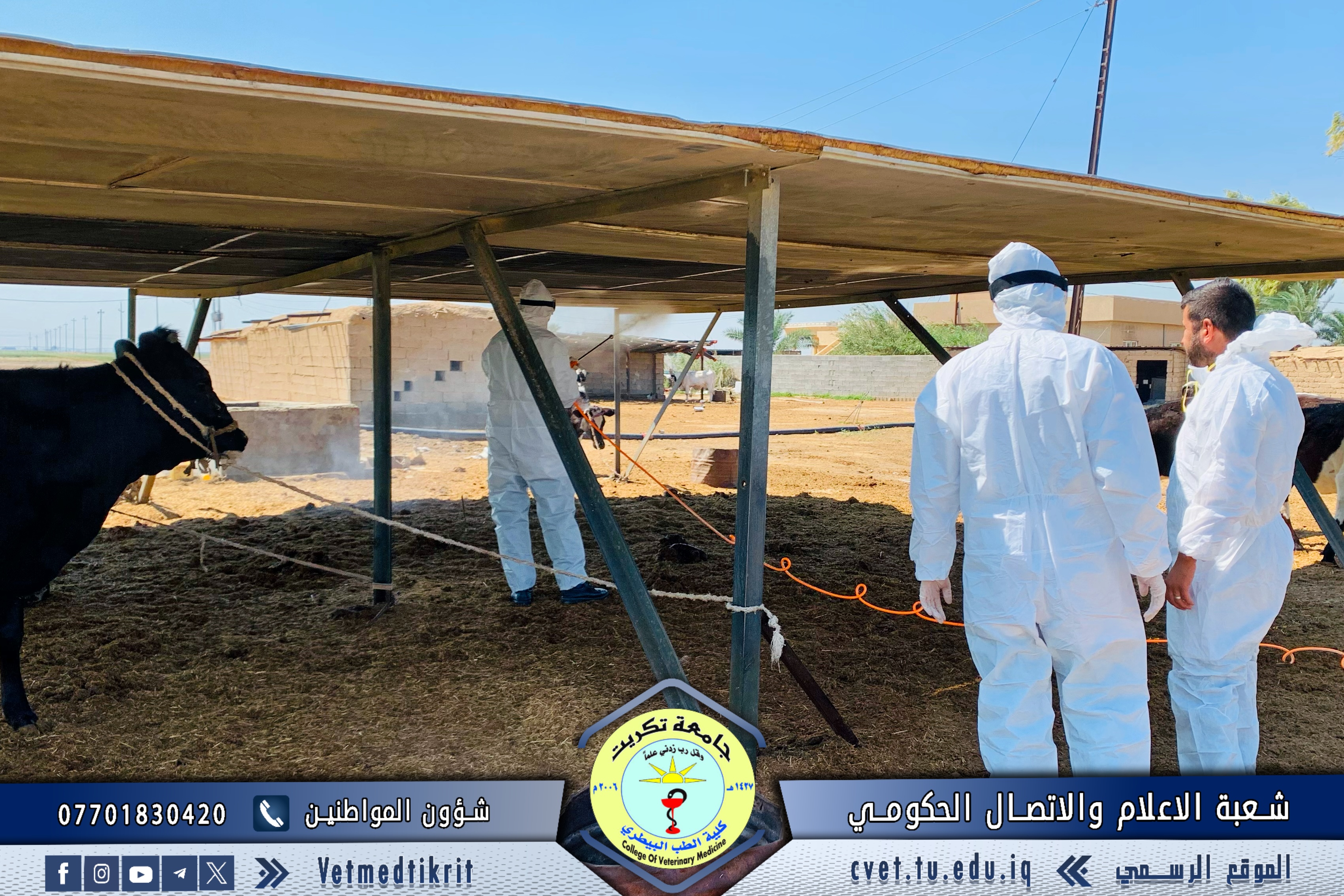 ضمن إطار رؤية كلية الطب البيطري بجامعة تكريت في دعم مؤسسات الدولة كافة، وبالتعاون المشترك مع المستشفى البيطري التعليمي في صلاح الدين، شاركت الكلية في الحملة الوطنية للرش والتغطيس التي تنظمها وزارة الزراعة متمثلة بدائرة البيطرة، ويشرف على تنفيذها المستشفى البيطري التعليمي في صلاح الدين. حيث تم تشكيل فريق مساند من كلية الطب البيطري للمساهمة في دعم وإسناد الفرق الجوالة التابعة للمستشفى البيطري، بهدف تغطية الحملة في جميع مناطق محافظة صلاح الدين للرش والتغطيس والتعفير ضد الامراض بين قطعان الابقار والماشية. علما ان الحملة مستمره لمدة شهر كامل.