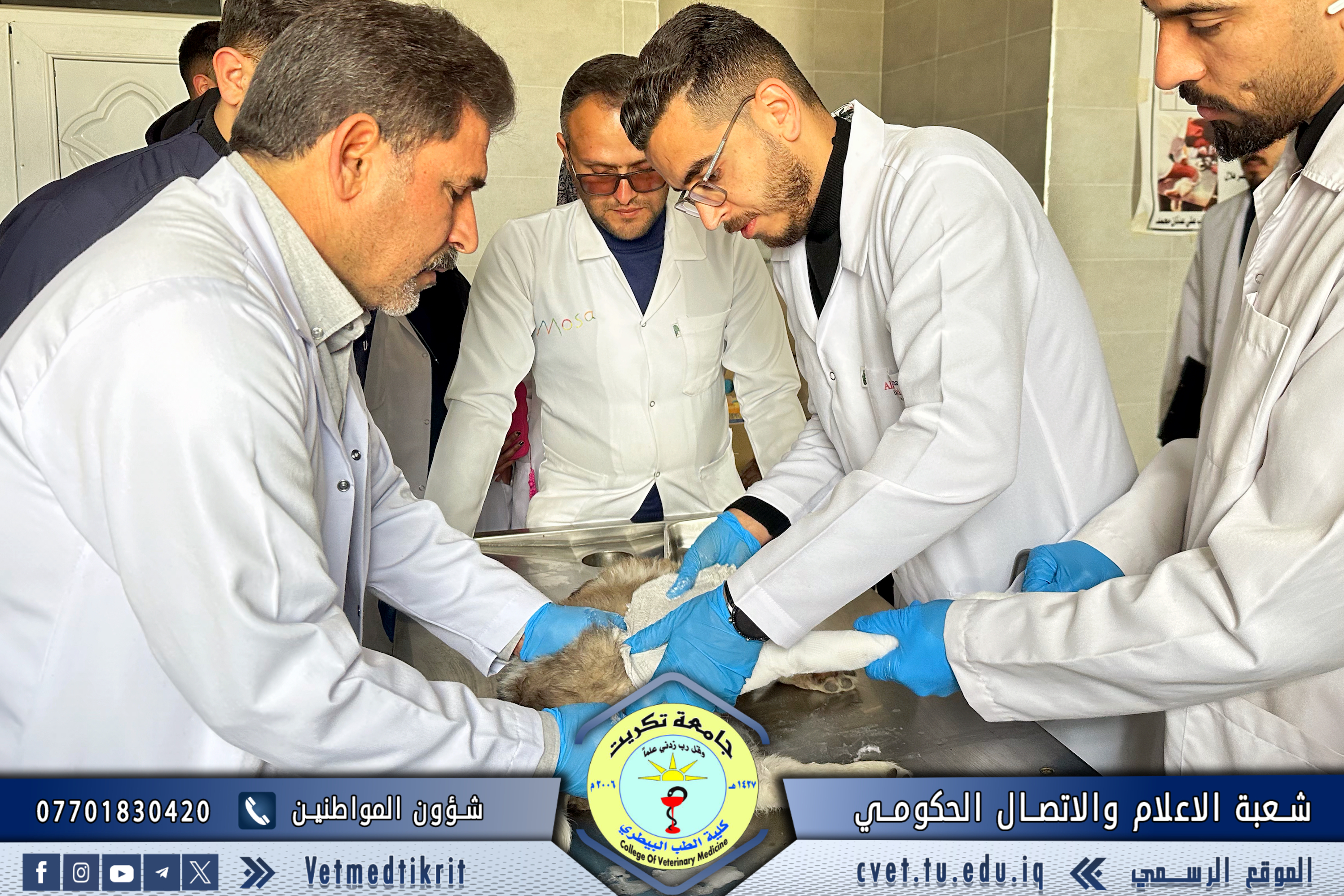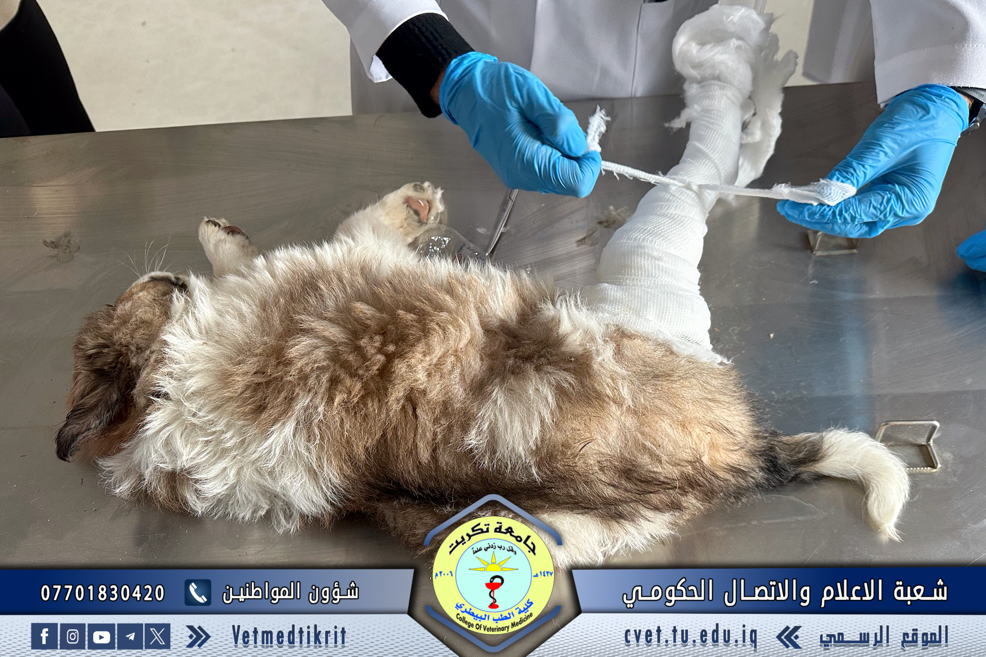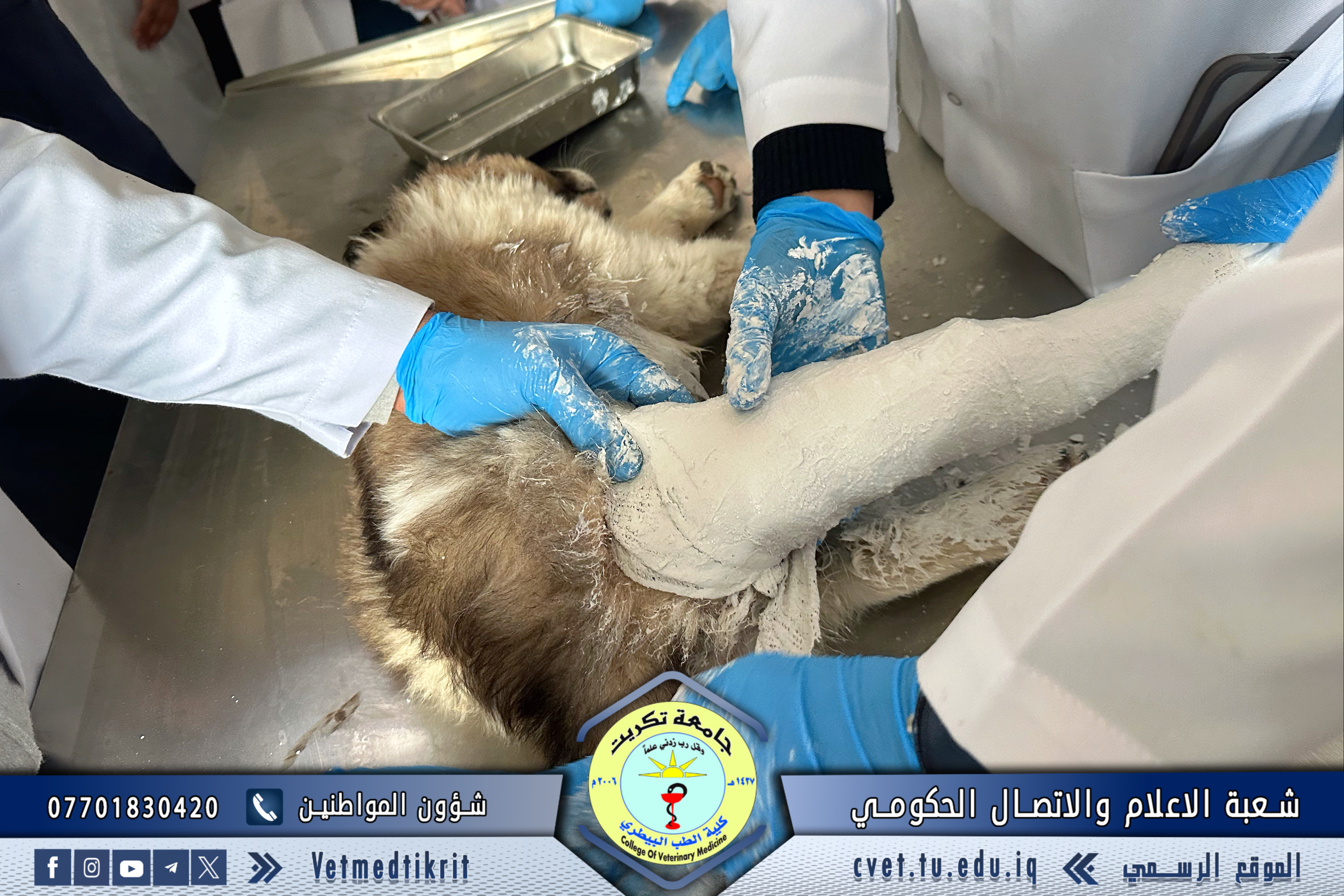 استقبلت وحدة العيادة الخارجية في كلية الطب البيطري بجامعة تكريت حالة كلب صغير تعرض لكسر في الساق الخلفية، حيث تمت معاينة الحالة تحت إشراف الأستاذ المساعد الدكتور نواف نور الدين، والمدرس الدكتور علي غازي عطية ،والطبيب البيطري موسى دخيل بحر والطبيب البيطري ميرفت أمين.