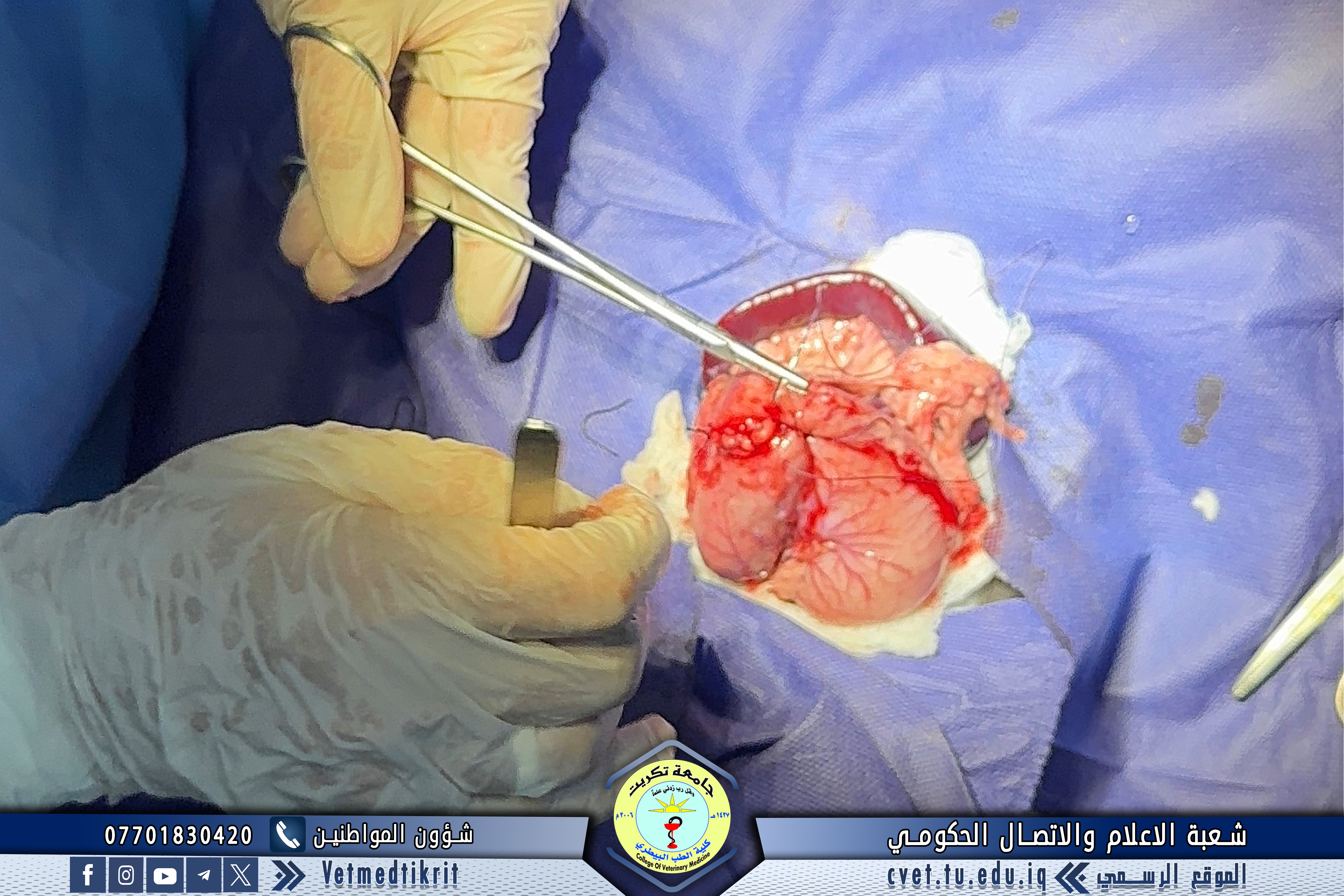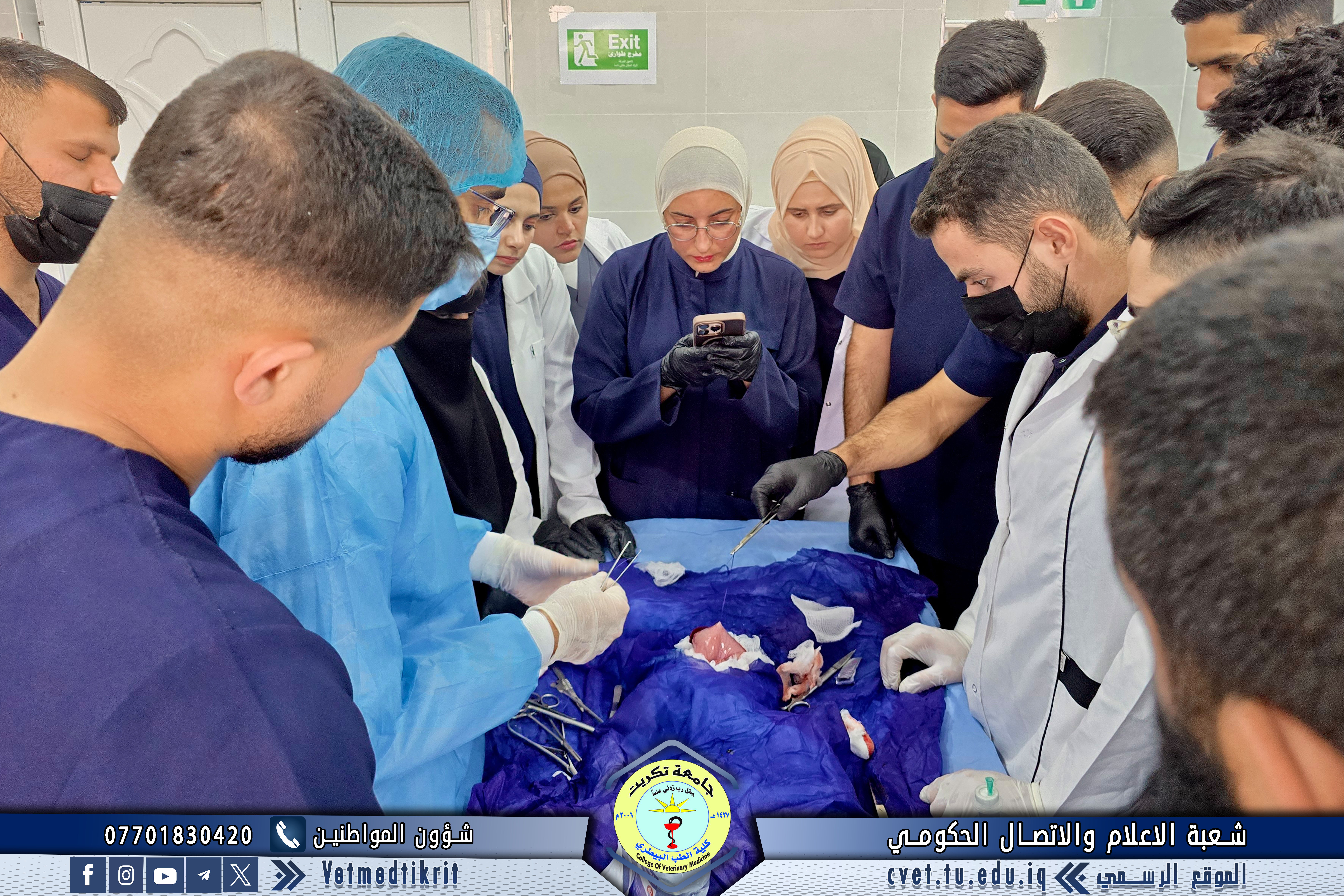 ضمن المنهاج العملي لمادة الجراحة البيطرية، استقبلت وحدة العيادة الخارجية طلبة المرحلة الخامسة للتدريب العملي على العمليات الجراحية، وذلك بإشراف الأستاذ المساعد الدكتور علي غازي عطية.