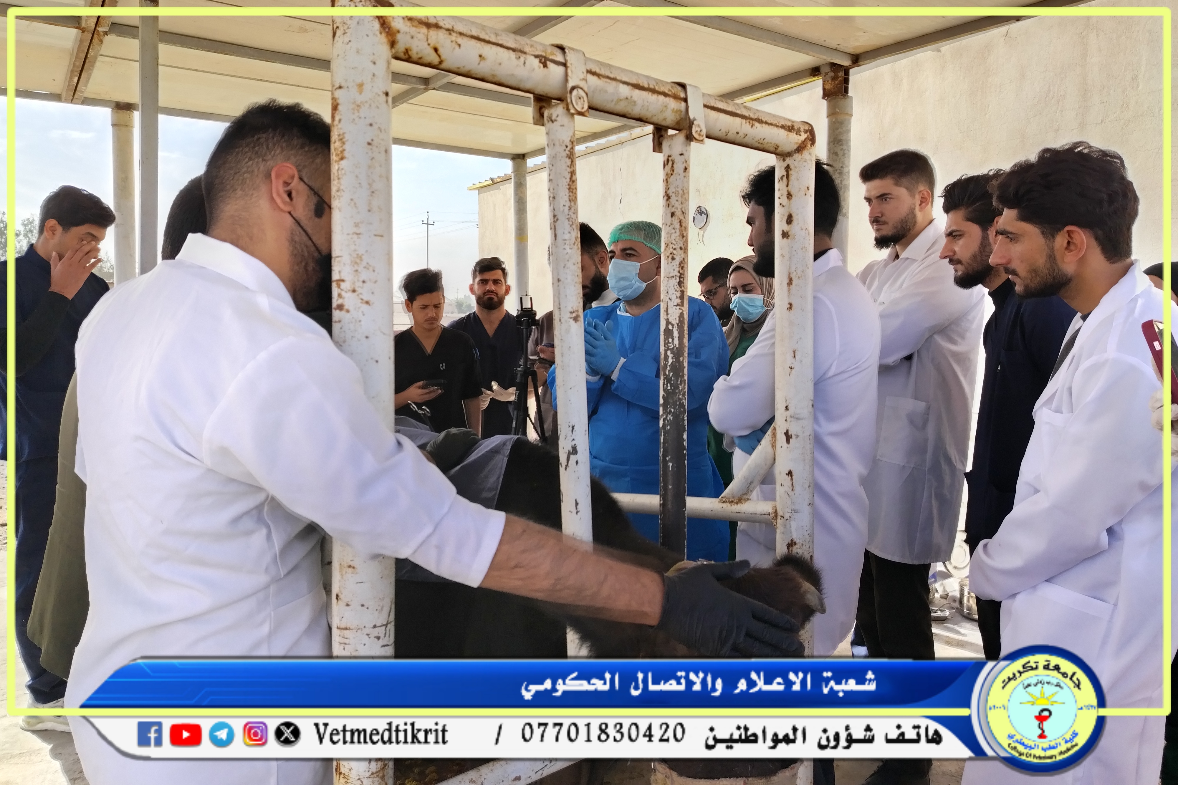 ضمن نشاطات خدمة المجتمع التي تقدمها كلية الطب البيطري بجامعة تكريت لمجتمع محافظة صلاح الدين، استقبلت وحدة العيادة الخارجية حالة بقرة تعاني من انقطاع الشهية، وقلة الحركة، وارتفاع في درجة الحرارة. تم فحص الحيوان بعناية، وبعد التشخيص، قرر الفريق الطبي إجراء عملية فتح الكرش (Rumenotomy) لاستخراج الأجسام الغريبة التي كانت مستقرة داخله وذلك تحت إشراف الدكتور منتصر محمد هلال، وبدعم ومشاركة طلبة المرحلة الخامسة، تمت العملية بنجاح حيث تم استخراج العديد من الأجسام الغريبة، ثم تم اعادة غلق العضلات وخياطة الجلد، كما تم تزويد الحيوان بالعلاجات اللازمة بعد العملية لضمان تعافيه التام.