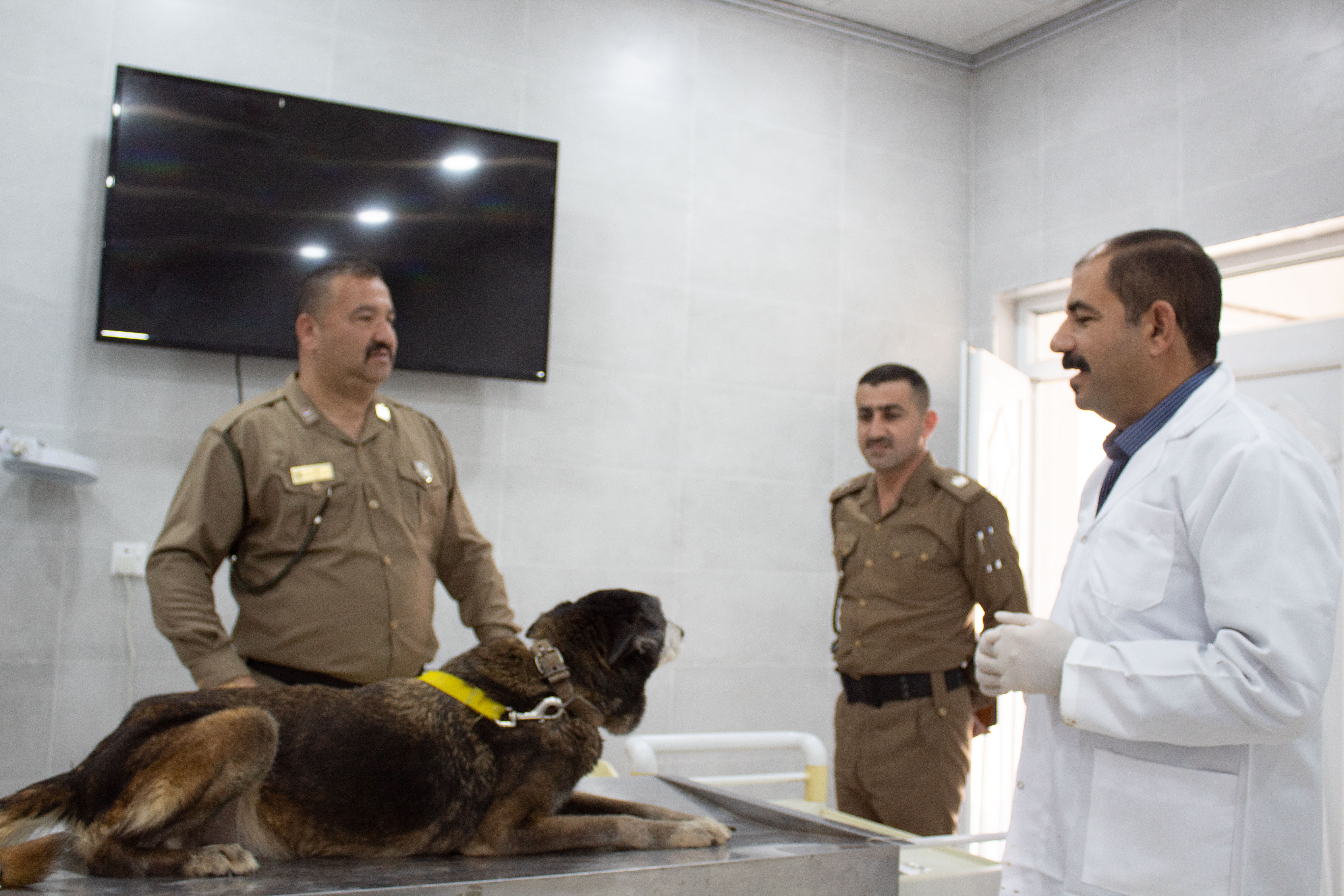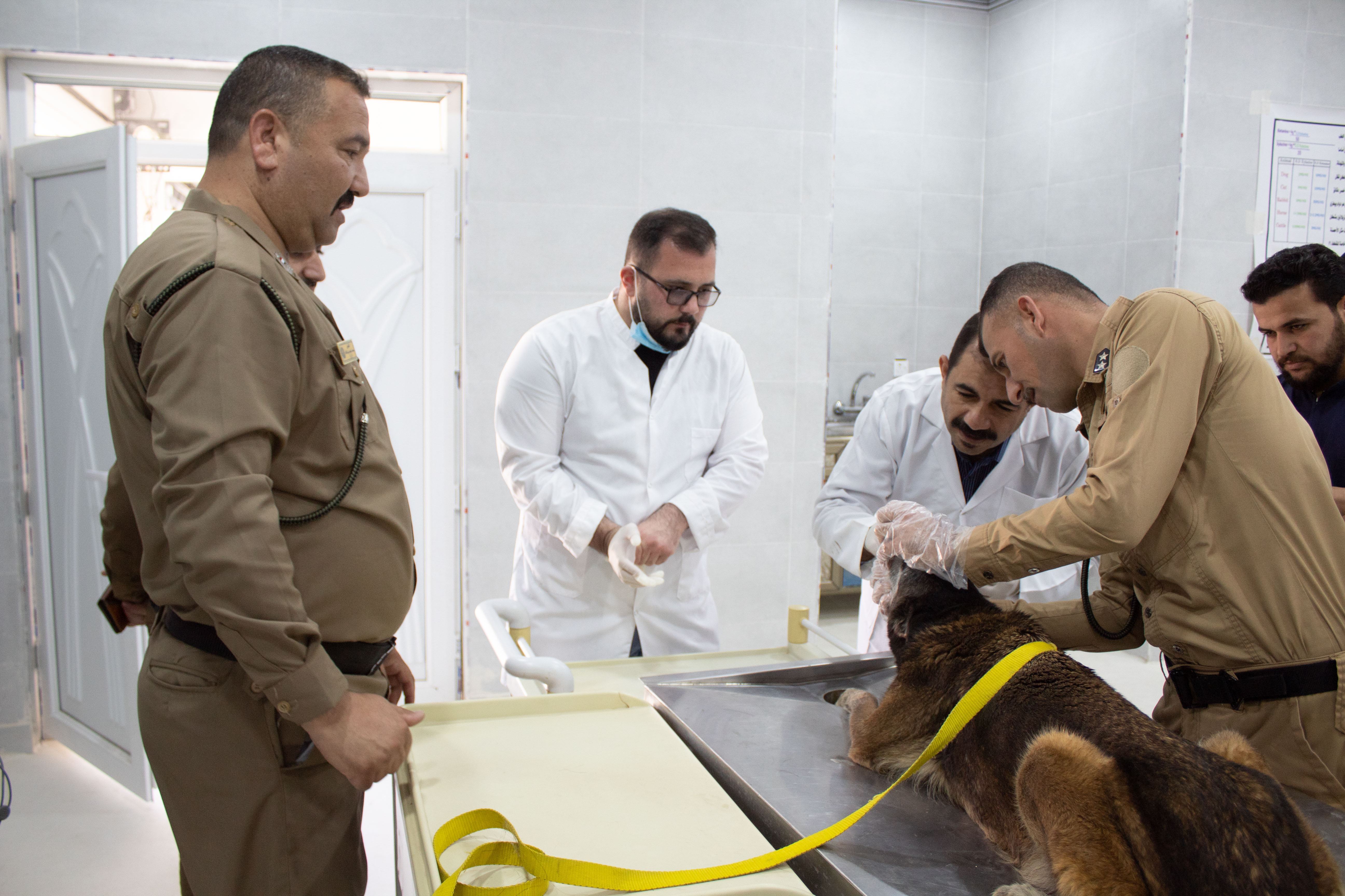 ضمن نشاطات كلية الطب البيطري بجامعة تكريت لخدمة مجتمع محافظة صلاح الدين بشكل عام والقوات الامنية بصورة خاصة، استقبلت وحدة العيادة البيطرية الخارجية حالة بيطرية تابعة لمديرية ادارة وشؤون الكلاب البوليسية K-9 التابعة لقيادة شرطة صلاح الدين تعاني من ضعف النظر في العينين والتهاب اللثة وتنخر الاسنان والضعف العام، وتم على الفور تشخيص الحالة ووصف العلاج المناسب لها مع توجيه التعليمات للمدرب. تم تشخيص وعلاج الحالة بواسطة الدكتور منتصر محمد هلال والطبيب البيطري موسى دخيل والطبيب البيطري سيف احمد والطبيب البيطري ميرفت امين بمشاركة طلبة المرحلة الخامسة كجزء من منهج التطبيق البيطري لطلبة المراحل المنتهية في الكلية.