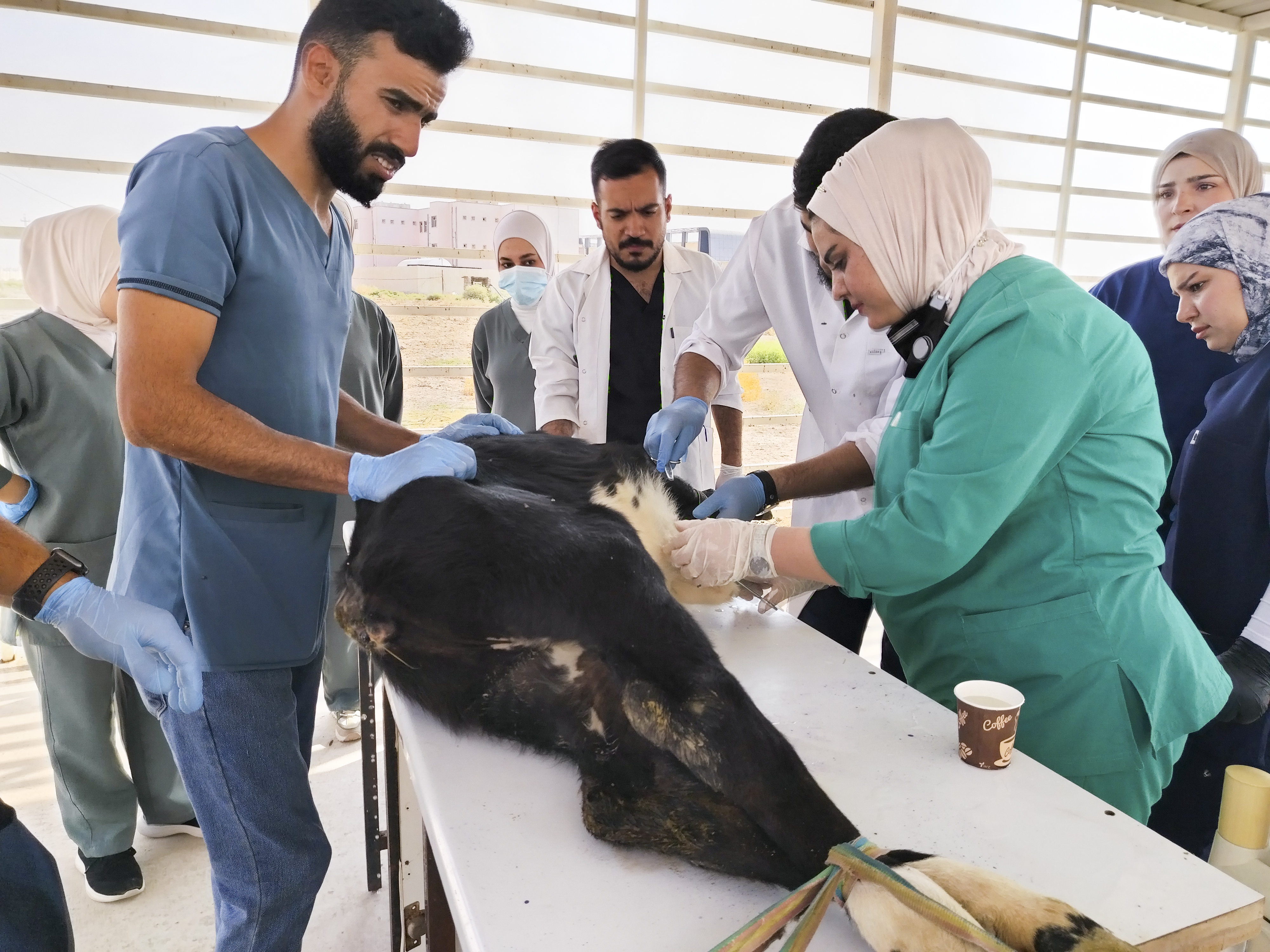 في خطوة تعكس التفاعل بين التعليم والممارسة العملية، وتحت إشراف الدكتور علي غازي عطية والدكتورة هبة عبد العزيز شيخو، وبمشاركة طلبة المرحلة الخامسة قامت وحدة العيادة الخارجية بمعالجة عجل صغير يعاني من فتق في منطقة السرة. وقد أجريت للعجل عملية جراحية تضمنت فتح منطقة الفتق، ومن ثم إعادة تشكيل عضلات البطن باستخدام التقنيات الجراحية اللازمة، تلاها خياطة منطقة العملية. اتاحت هذه الحالة الفرصة القيمة في تعزيز قدرات الطلبة وتعمق فهمهم للتحديات التي تواجهها الحيوانات في مجال الطب البيطري.
