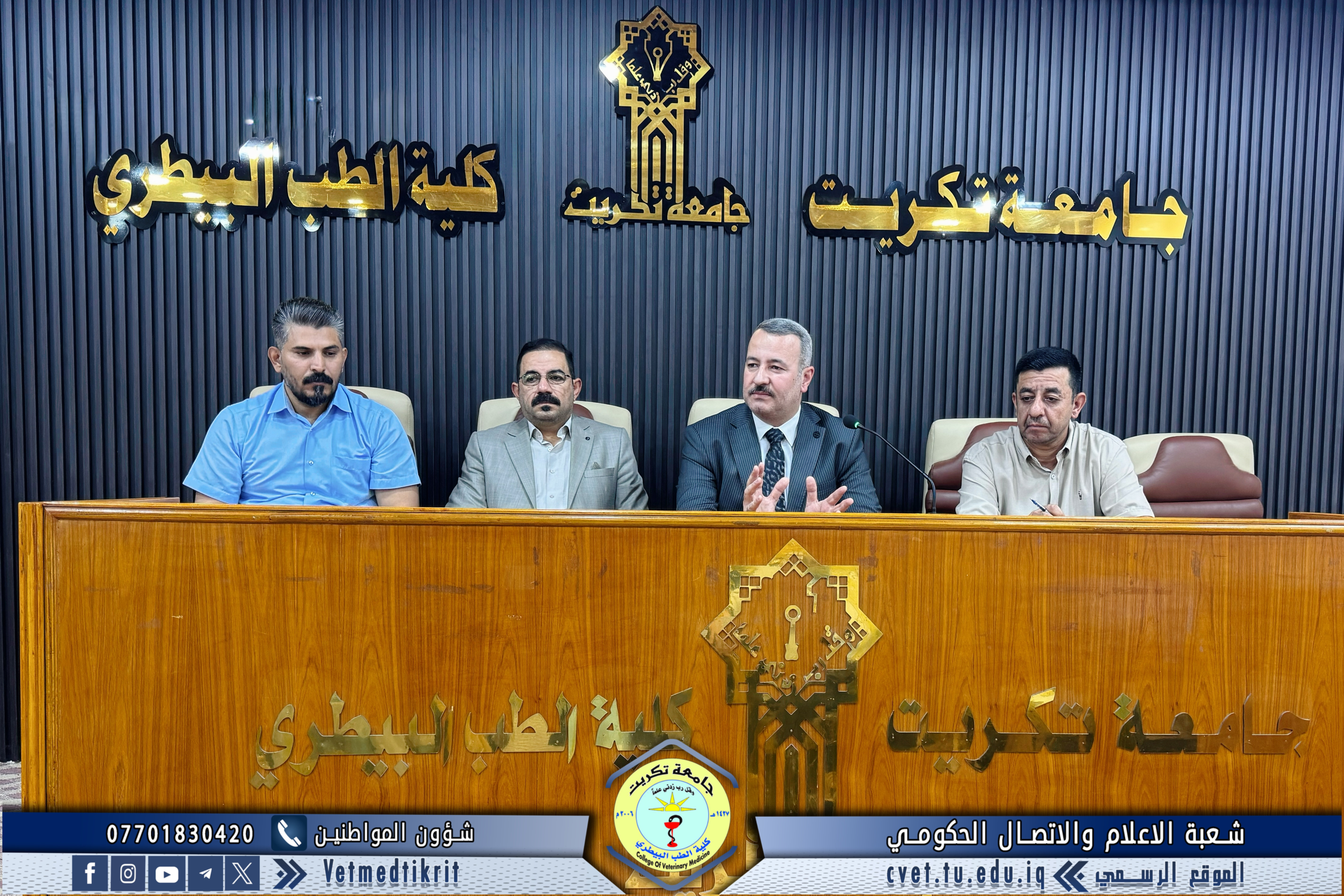 عقدت عمادة كلية الطب البيطري بجامعة تكريت اجتماعاً موسعاً مع أعضاء الهيئة التدريسية بمناسبة انطلاق العام الدراسي الجديد، بحضور الأستاذ الدكتور بشار صادق نومي عميد الكلية، والأستاذ المساعد الدكتور منتصر محمد هلال معاون العميد للشؤون العلمية، والأستاذ المساعد الدكتور أسامة حميد شهاب معاون العميد للشؤون الإدارية، والأستاذ المساعد سعد صبار نصيف أمين مجلس الكلية. واستهل السيد العميد الاجتماع بكلمة رحب فيها بالسادة التدريسيين، متمنياً لهم عاماً دراسياً موفقاً ومليئاً بالعطاء، مؤكداً على أهمية روح التعاون والعمل بروح الفريق الواحد من أجل الارتقاء بالمستوى العلمي والأكاديمي للكلية. وتناول الاجتماع عدداً من المحاور المهمة، أبرزها: تقسيم المحاضرات بما يحقق التوازن بين المتطلبات النظرية والعملية، التأكيد على تعزيز الجانب التطبيقي والعملي في المحاضرات لإكساب الطلبة الخبرات والمهارات اللازمة، مناقشة آليات تطبيق معايير الاعتماد المؤسسي وضمان جودة التعليم، وبحث بعض الجوانب الإدارية والتنظيمية المتعلقة بسير العملية التعليمية. وفي ختام الاجتماع، شدّد السيد العميد على ضرورة مضاعفة الجهود لتحقيق عام دراسي متميز يسهم في رفد المجتمع بكفاءات علمية رصينة قادرة على خدمة قطاع الطب البيطري.