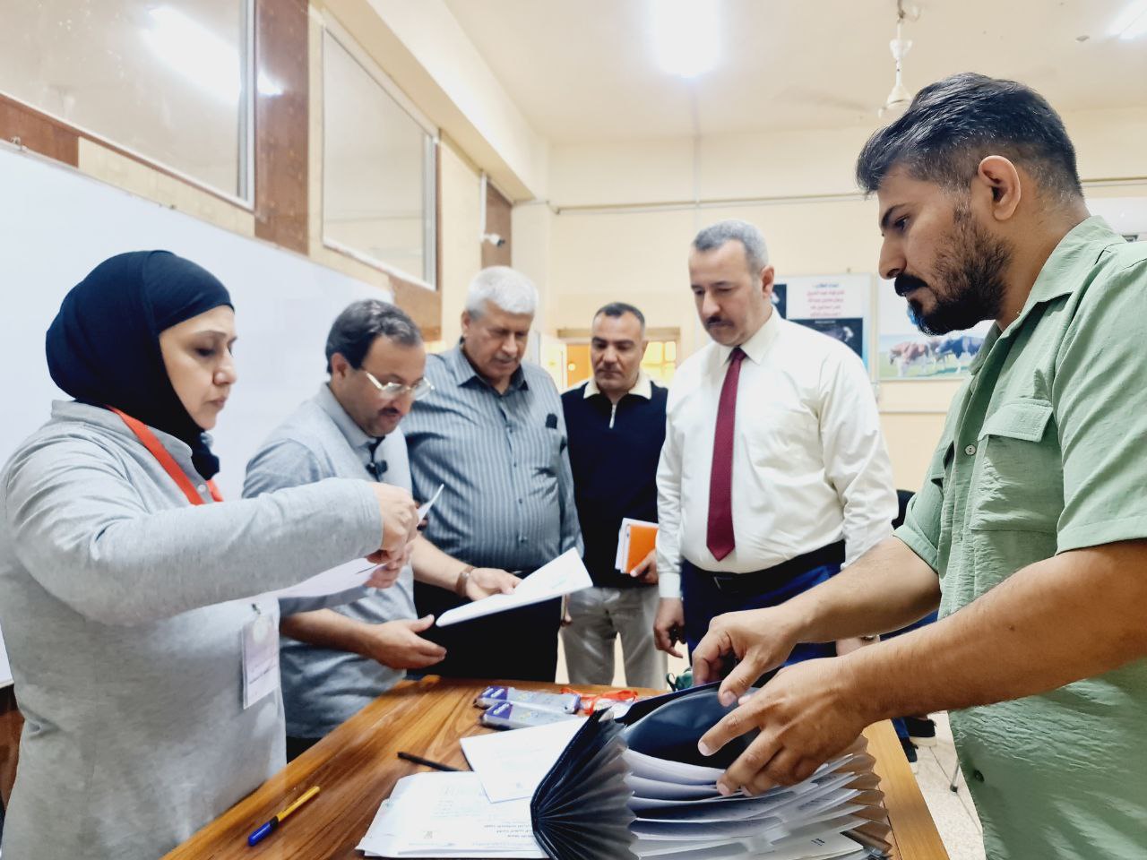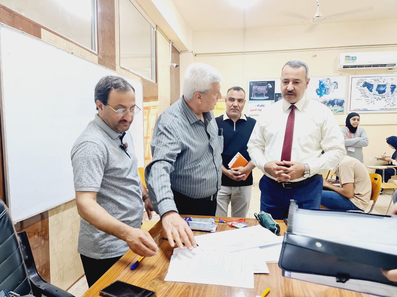 بحضور واشراف الاستاذ الدكتور بشار صادق نومي عميد كلية الطب البيطري بجامعة تكريت، زارت لجنة جامعية مؤلفة من كل من (الدكتور عبد احمد رديني والدكتور احمد سعيد) القاعات الامتحانية للاطلاع على سير الامتحانات النهائية للدور الثاني التي تجري حاليا في الكلية. حيث اطلع السادة اعضاء اللجنة خلال الزيارة على تنظيم القاعات والدفاتر الامتحانية ومستوى الاسئلة وسجلات الحضور والغياب وعدد من الامور الاخرى المتعلقة بالامتحانات. واعرب السادة اعضاء اللجنة خلال الزيارة عن اعجابهم بمدى تنظيم الامتحانات في الكلية متمنين التوفيق لجميع الطلبة. ورافق السيد عميد الكلية والسادة اعضاء اللجنة خلال الزيارة كلا من الاستاذ المساعد دخيل حسين حدري معاون العميد للشؤون العلمية والمدرس الدكتور اسامة حميد شهاب معاون العميد للشؤون الادارية.