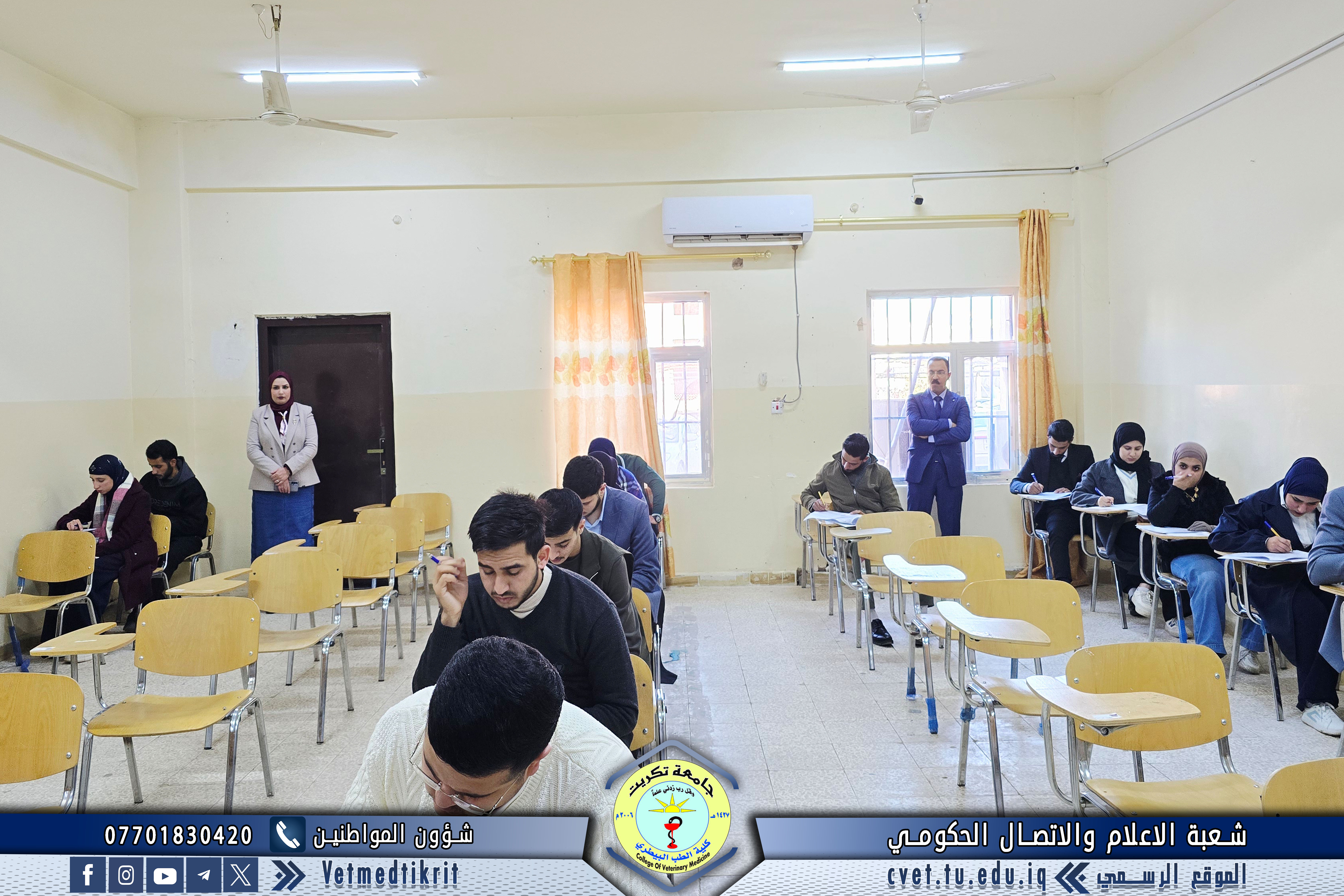 تتابع عمادة كلية الطب البيطري في جامعة تكريت سير الامتحانات النهائية للفصل الدراسي الأول للعام الدراسي 2025–2026 لطلبة الدراسات الأولية للمراحل فوق الأولى، وذلك في إطار حرصها على توفير أجواء امتحانية ملائمة تضمن انسيابية الأداء والالتزام بالتعليمات الجامعية.