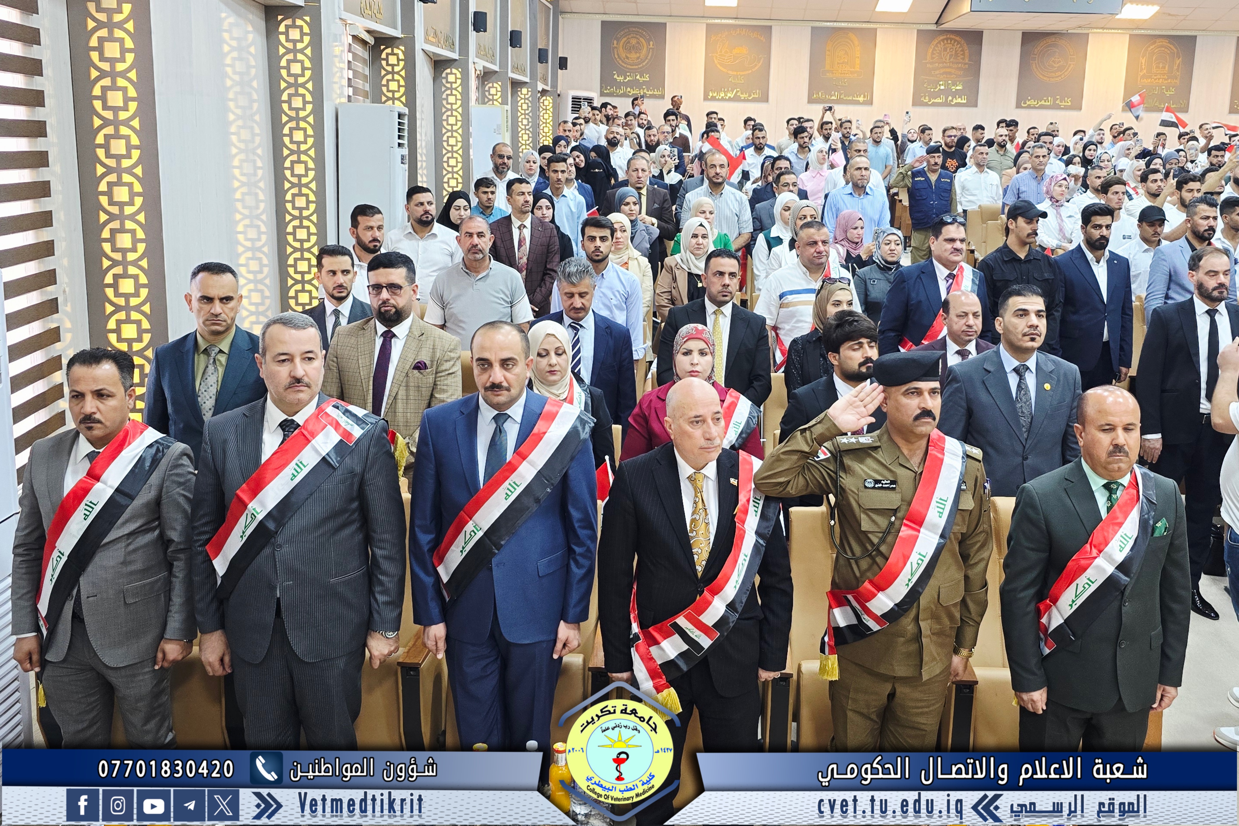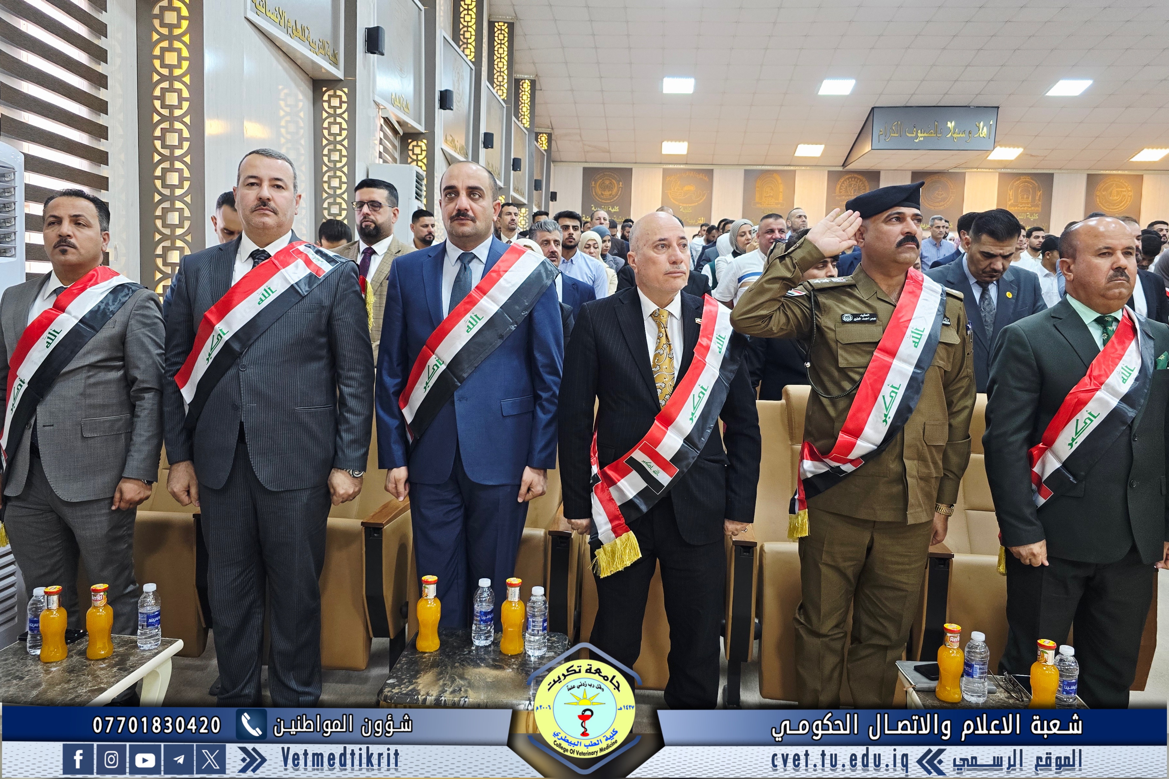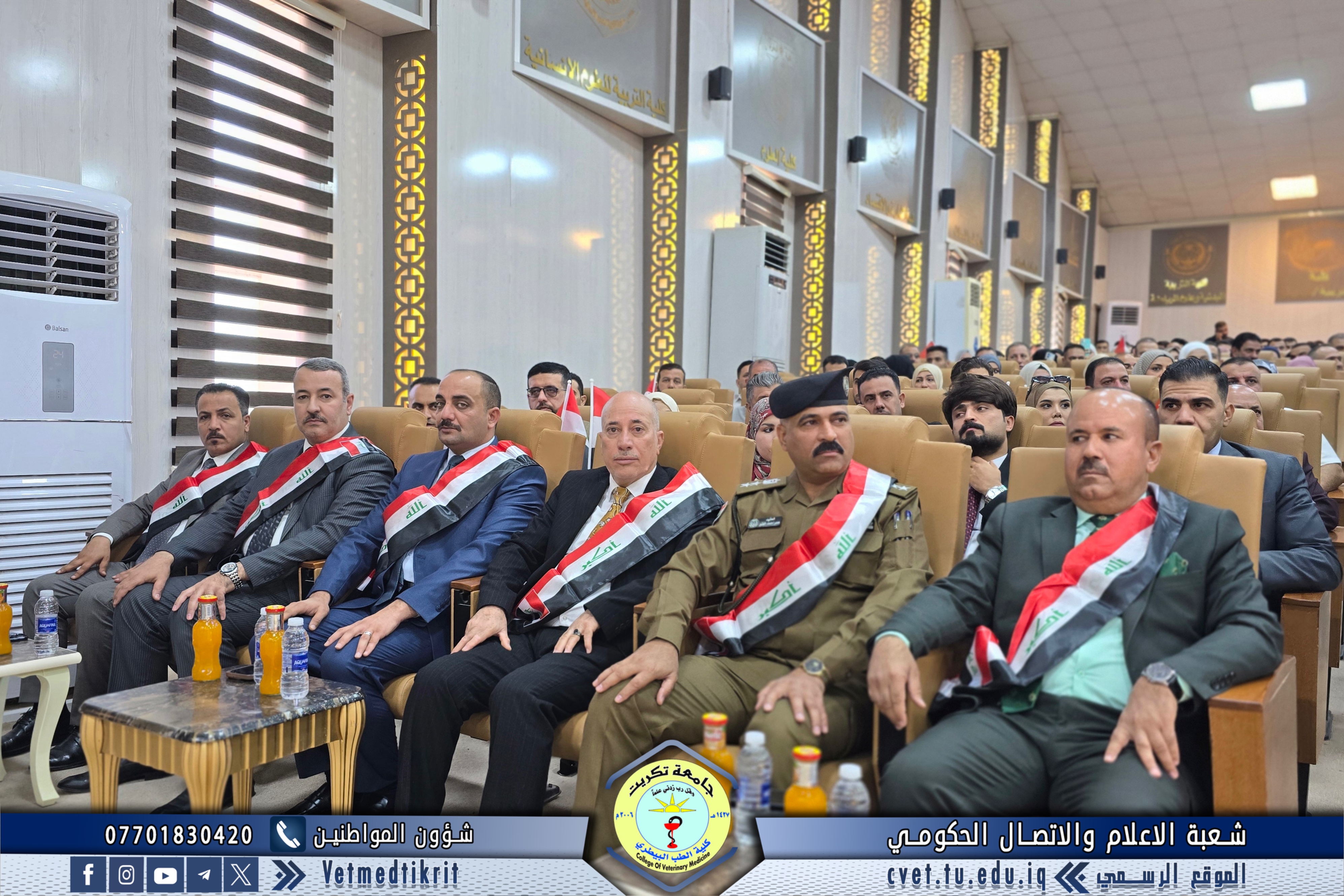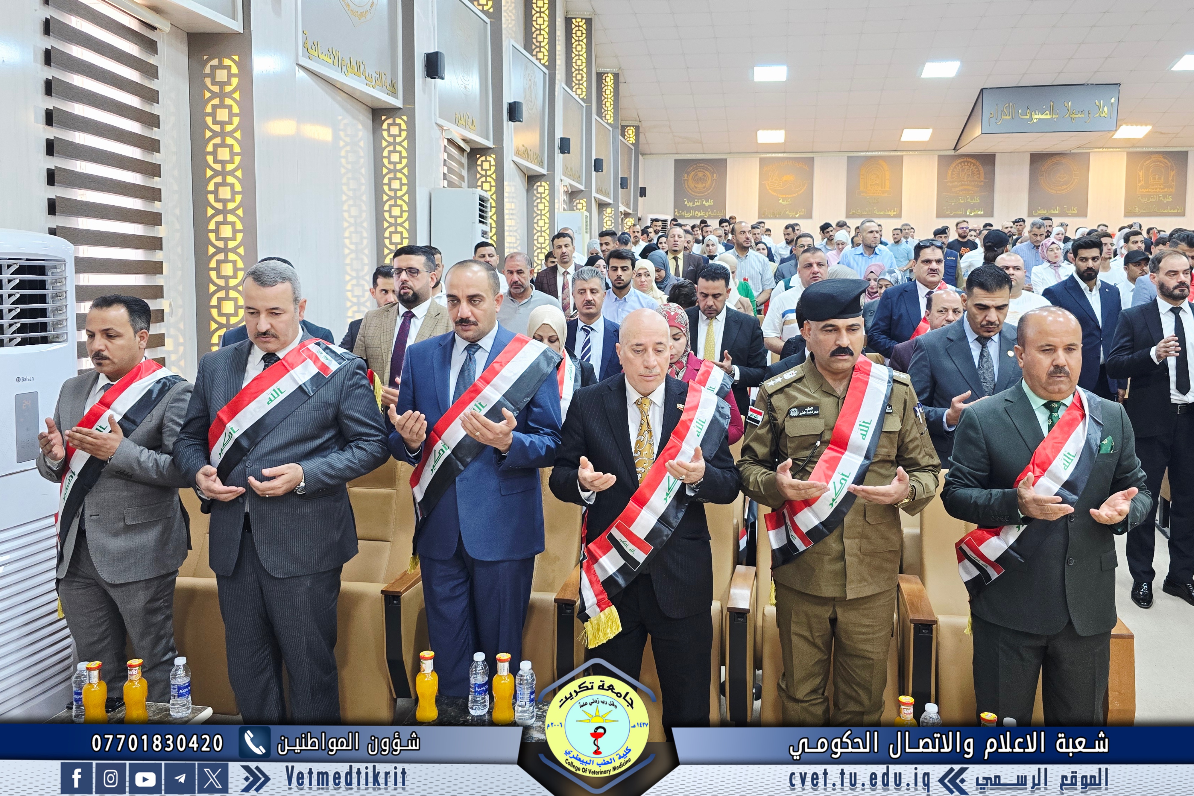 برعاية السيد رئيس جامعة تكريت الأستاذ الدكتور وعد محمود رؤوف، شاركت كلية الطب البيطري في فعاليات الاحتفال المركزي بالعيد الوطني العراقي الذي أقامته الجامعة على قاعة الخوارزمي في كلية الهندسة، وذلك احتفاءً بالمناسبة الوطنية العزيزة التي تجسد وحدة الشعب العراقي واعتزازه بتاريخه المجيد. وحضر الاحتفال الأستاذ الدكتور بشار صادق نومي عميد كلية الطب البيطري، يرافقه السادة معاوني العميد ورؤساء الفروع العلمية، وعدد من أعضاء الهيئة التدريسية والإدارية، فضلاً عن جمع من طلبة الكلية الذين شاركوا بحماس يعكس روح الانتماء والفخر الوطني. تضمن الحفل كلماتٍ وعروضاً احتفالية سلّطت الضوء على مسيرة العراق التاريخية ونهضته العلمية والثقافية، مؤكدين أن هذه المناسبة تمثل فرصة لتعزيز قيم المواطنة والانتماء بين أوساط الطلبة والمنتسبين في جامعة تكريت. وفي ختام الاحتفال، عبّر عميد كلية الطب البيطري عن اعتزازه بالمشاركة في هذه الفعالية الوطنية، مؤكداً أن الكلية ماضية في دعم جميع الأنشطة التي تعزز روح الانتماء للوطن وتغرس القيم الوطنية في نفوس الطلبة.