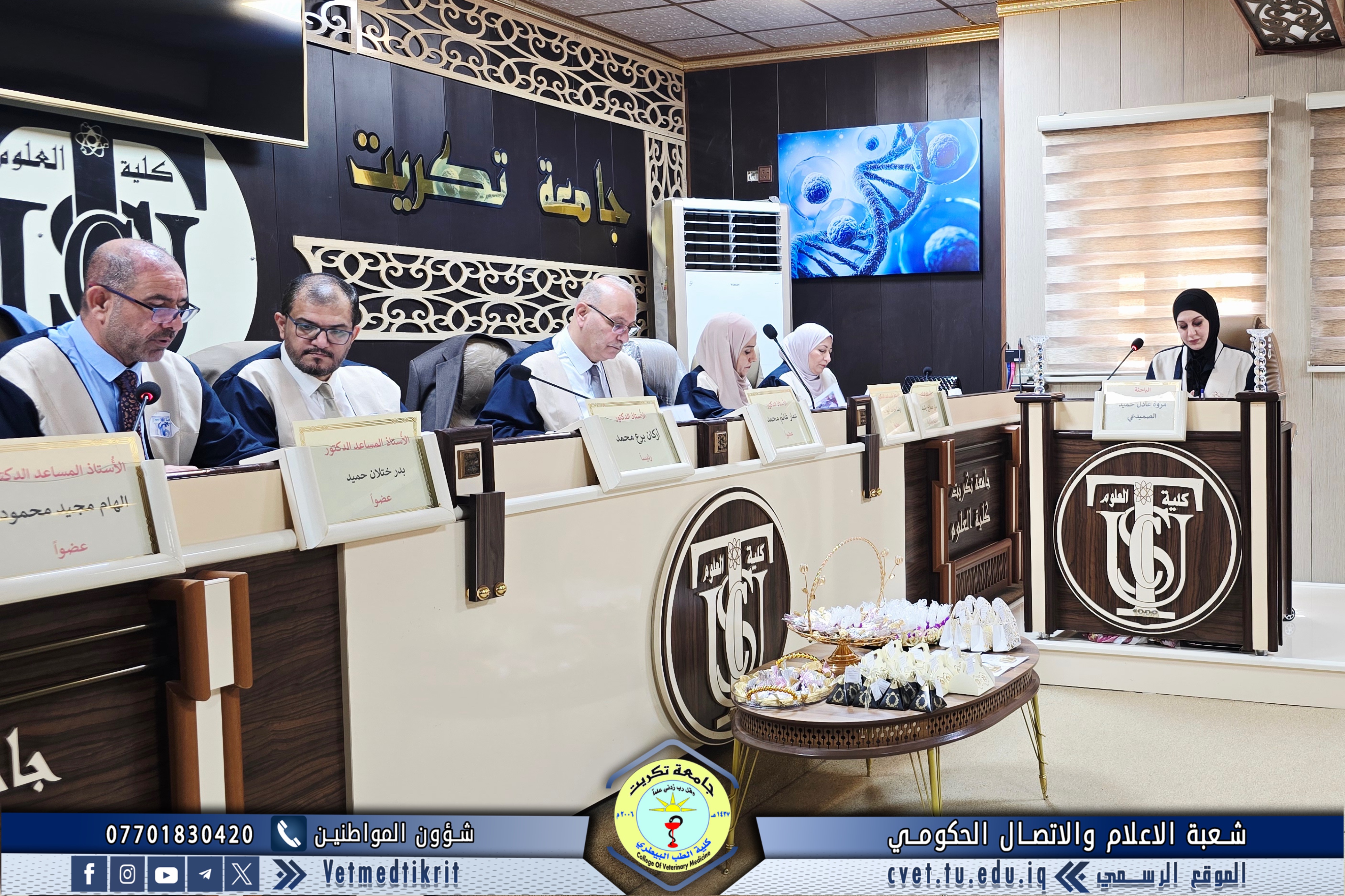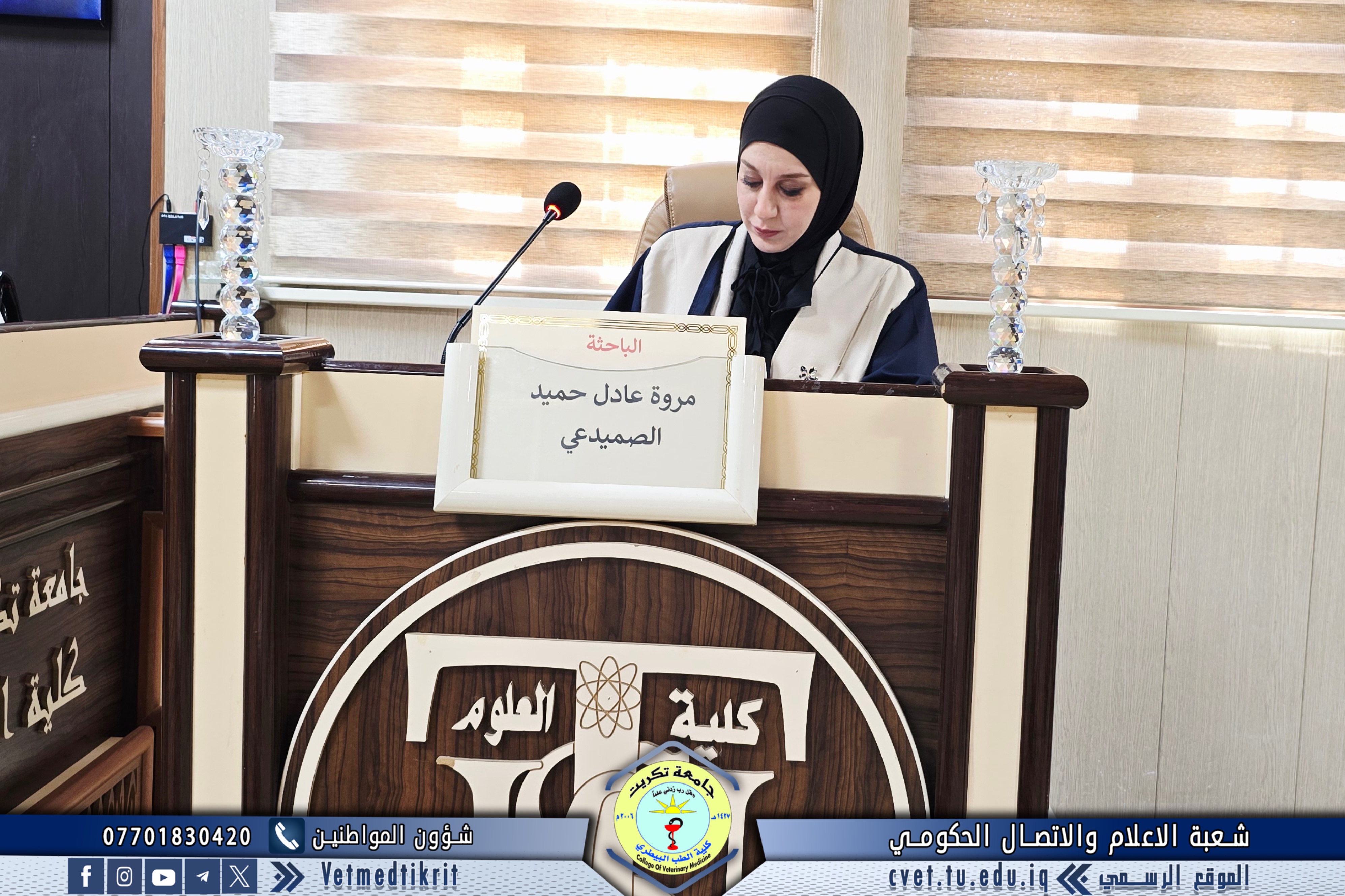 في انجاز علمي اخر يضاف الى سجل كلية الطب البيطري بجامعة تكريت، حصلت المدرس (مروة عادل حميد) التدريسية على ملاك الكلية على شهادة الدكتوراه في تخصص (الانسجة) من كلية العلوم بجامعة تكريت وذلك عن اطروحتها الموسومة (دراسـة تشريحية و نسـجية كيميائية مقارنة للجهاز التناسلي الانثوي للدجاج البياض مع دجاج اللحم وبأعمار مختلفة) وذلك في المناقشة التي اقيمت في كلية العلوم بتاريخ 10/08/2025، وحضرها كل من الاستاذ الدكتور وعد محمود رؤوف رئيس جامعة تكريت، والاستاذ الدكتور بشار صادق نومي عميد كلية الطب البيطري، والسادة معاوني العميد للشؤون العلمية والادارية وعدد من السيدات والسادة اعضاء الكادر التدريسي، وبمشاركة الاستاذ المساعد الدكتور بدر ختلان حميد كعضو في لجنة المناقشة، واشرف الاستاذ الدكتور اياد حميد ابراهيم على الاطروحة. حيث تناولت الدراسة مقارنة للجهاز التناسلي الانثوي تشريحيا ًونسجياً وكيمياء نسيجياً بين نوعين من الدجاج (الدجاج البياض Ieghorn egg laying ودجاج اللحم Broilers Rose) كون كلا النوعين من الدجاج المحلي الداجنة ولكن النوع الاول ( الدجاج البياض ) له القدرة على انتاج البيض عند عمر البلوغ الجنسي في حين الدجاج النوع الثاني ( دجاج اللحم ) ليس له القدرة على انتاج البيض رغم وصوله لعمر 6 اشهر من عمر الدجاج، بهدف توسيع المعرفة العلمية وتطوير مجالات البحث في علوم الأحياء،
