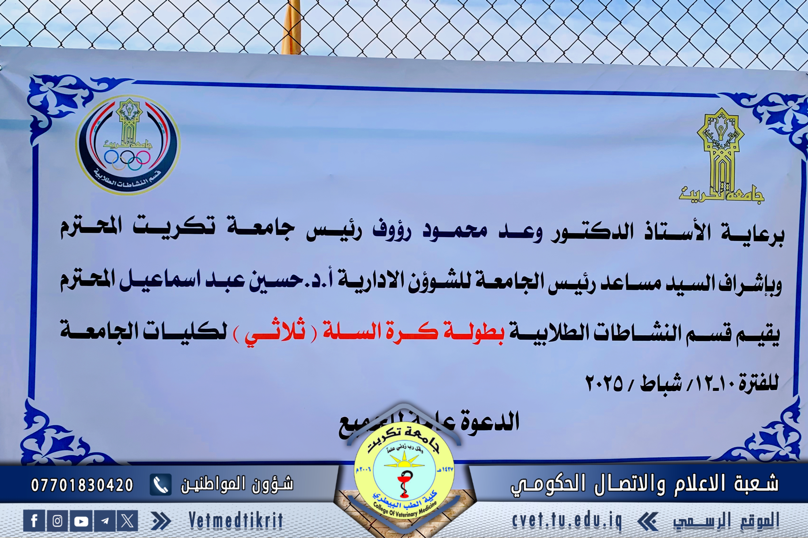 شاركت كليتنا في مسابقة السيد رئيس الجامعة لكرة السلة الثلاثية التي نُظّمت بالتعاون مع قسم النشاطات الطلابية في رئاسة الجامعة وأُقيمت في رحاب كلية التربية البدنية وعلوم الرياضة. مثل الكلية في هذه البطولة السيد محمود رفعت ستار مسؤول شعبة النشاطات الطلابية، بصفته إداريًا ومدربًا للفريق، إلى جانب الطلبة: