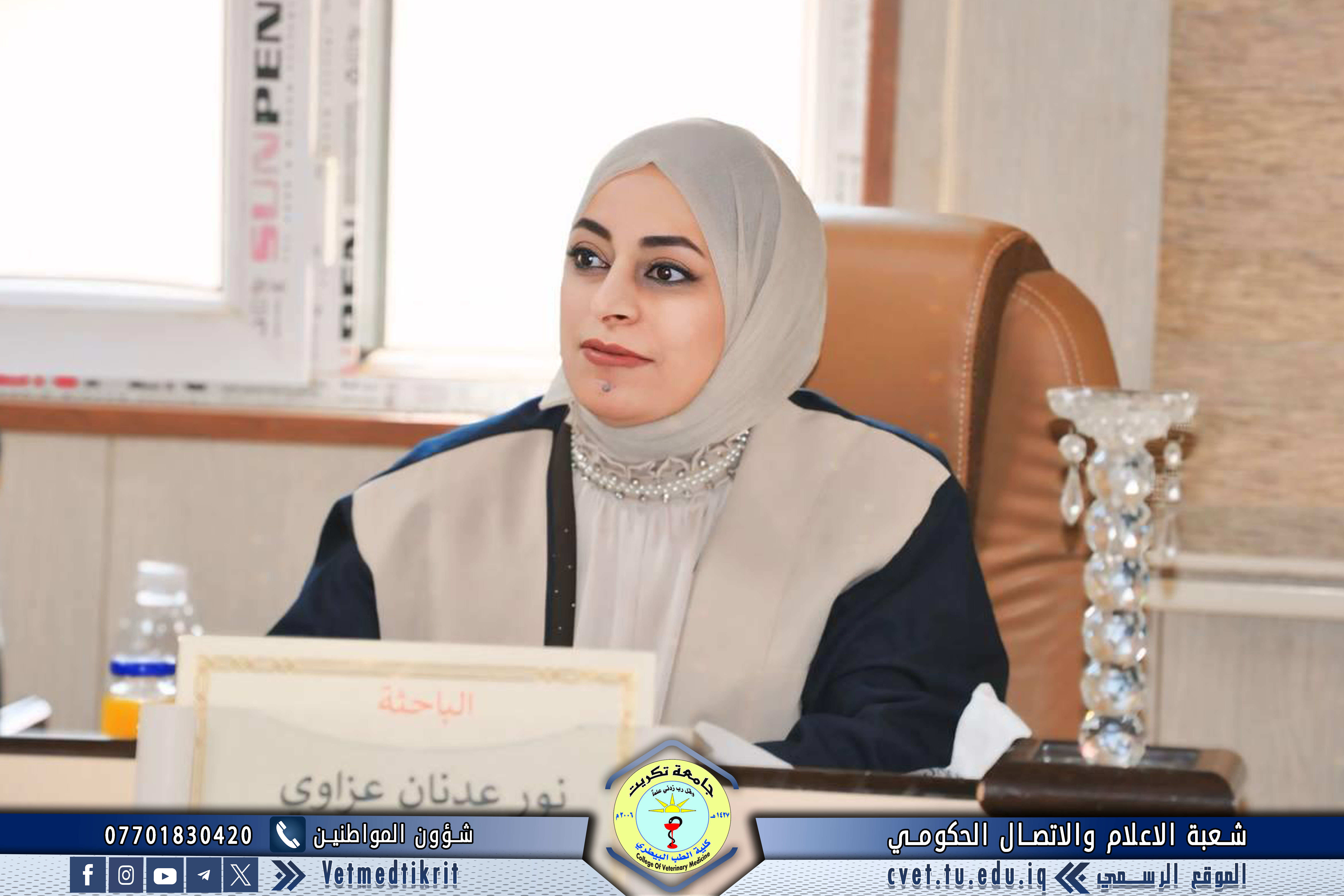 في انجاز علمي اخر يضاف الى سجل كلية الطب البيطري بجامعة تكريت، حصلت المدرس (نور عدنان عزاوي) التدريسية على ملاك الكلية على شهادة الدكتوراه في تخصص (الانسجة والاجنة) من كلية العلوم بجامعة تكريت وذلك عن اطروحتها الموسومة (التقييم النسجي والجنيني والفسلجي للدماغ، الكبد والكلى في اناث الجرذان والجهاز الهيكلي لأجنتها المعاملة بعقار الفلوكستين) وذلك في المناقشة التي اقيمت في كلية العلوم بتاريخ 10/07/2025، حيث تناولت الدراسة معرفة تأثير عقار الفلوكستين Fluoxetine على بعض الأعضاء (دماغ، كبد وكلية) في أناث الجرذان البيض الحوامل وغير الحوامل ومعرفة تأثيره على الهيكل الغضروفي والعيوب الخلقية لأجنتها ومعرفة التغيرات التي تحصل على بعض المعايير الكيموحيوية في مصل اناث الجرذان البيض الحوامل وغير الحوامل.