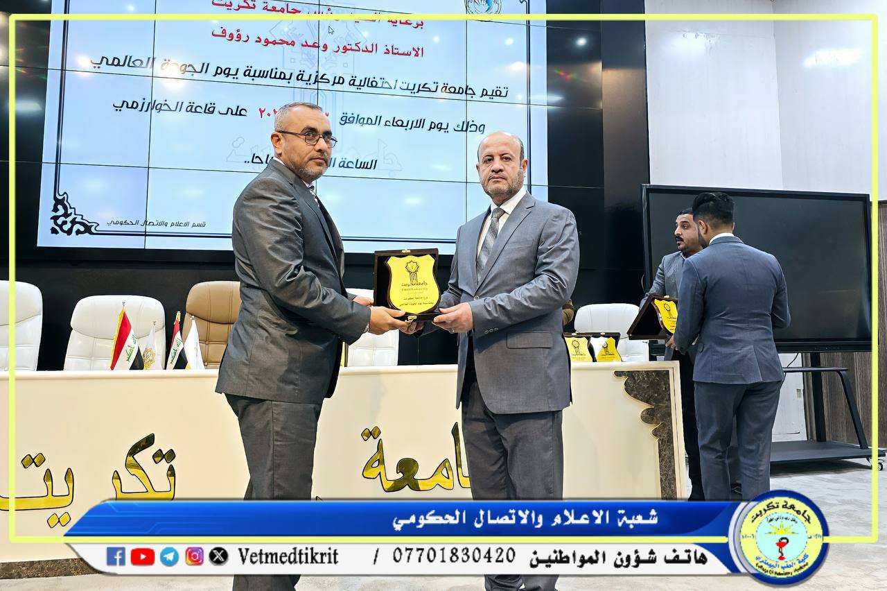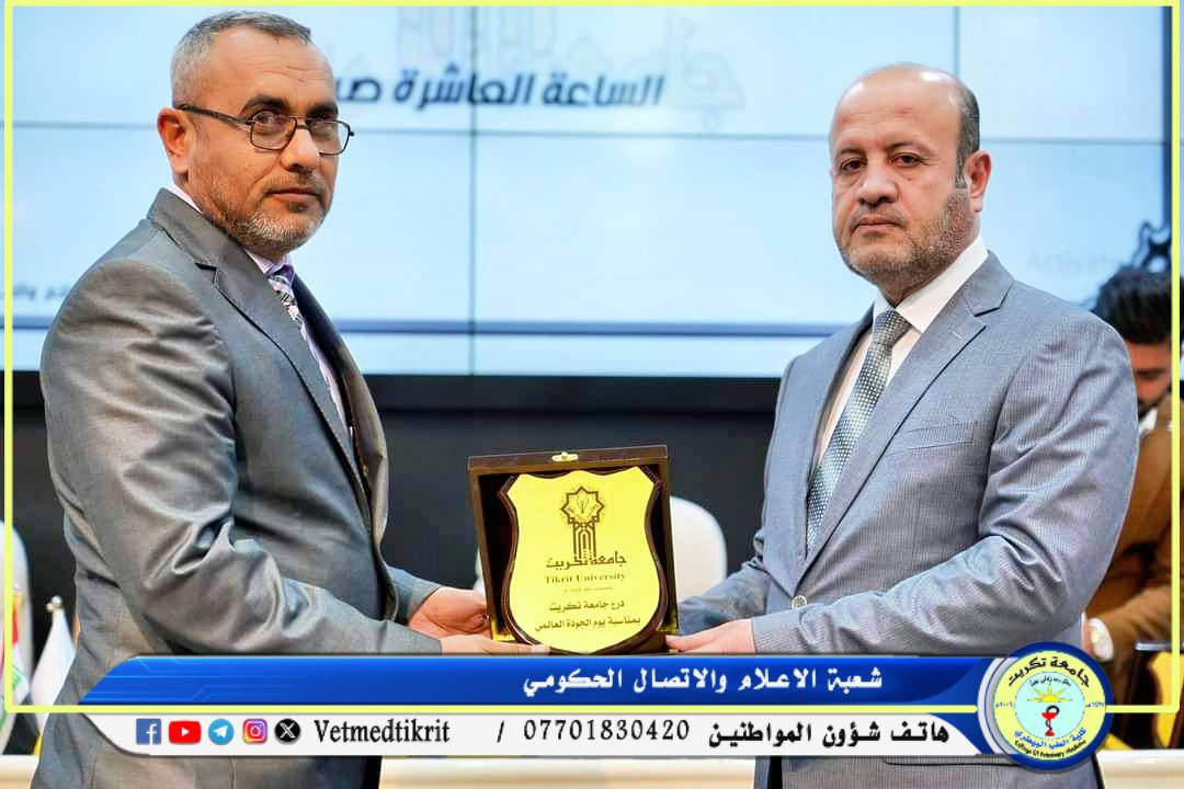 شاركت كلية الطب البيطري في الاحتفالية المركزية التي نظمها قسم ضمان الجودة والأداء الجامعي في رئاسة جامعة تكريت، بمناسبة اليوم العالمي للجودة. وتهدف هذه الفعالية إلى تعزيز ثقافة الجودة في المؤسسات التعليمية والبحثية، وإبراز أهمية الجودة في تحقيق التميز الأكاديمي والإداري.