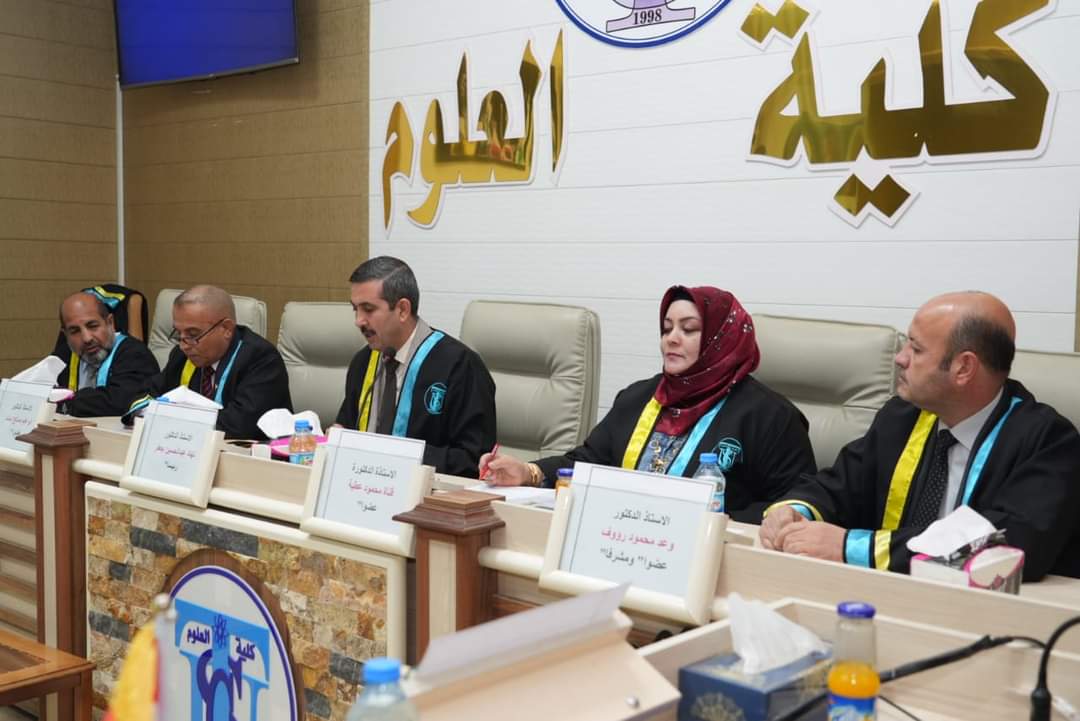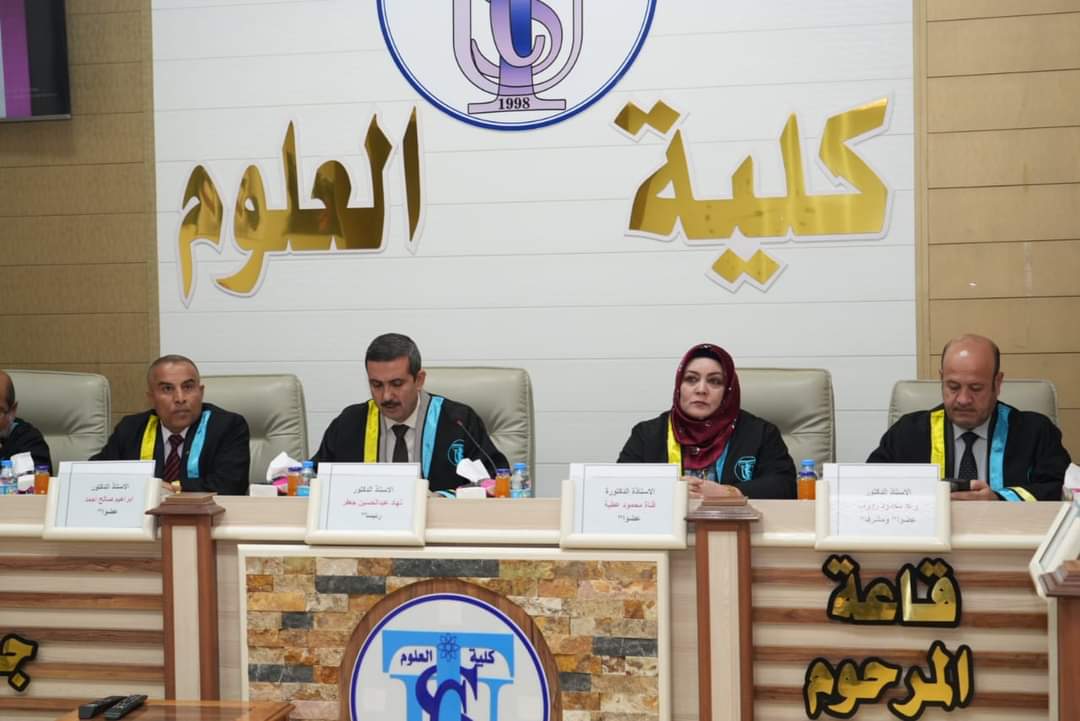بعضوية واشراف الاستاذ الدكتور وعد محمود رؤوف رئيس جامعة تكريت المحترم، شارك الاستاذ الدكتور نهاد عيد الحسين جعفر كرئيس للجنة مناقشة اطروحة الدكتوراه الموسومة (التوصيف الجزيئي للبكتريا السالبة لصبغة كرام المقاومة للكاربابينم والمعزولة من اصابات الحروق والجروح وتقييم الفعالية المضادة لمستخلص اوراق السدر ومسك الغزال ضد هذه العزلات) للطالبة (سارة احمد حسن) من قسم علوم الحياة في كلية العلوم، وذلك في المناقشة التي اقيمت على قاعة الدكتور جابر حميد في كلية العلوم بتاريخ 2024/6/13.
