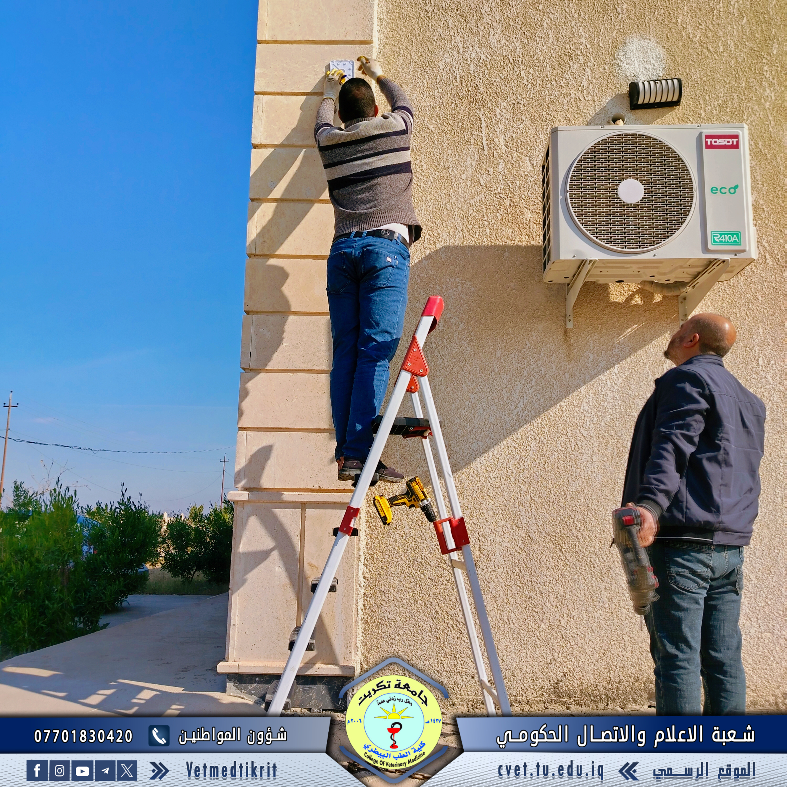 برعاية واشراف كل من الاستاذ الدكتور بشار صادق نومي عميد كلية الطب البيطري بجامعة تكريت والاستاذ المساعد الدكتور اسامة حميد شهاب معاون العميد للشؤون الادارية وضمن جهود دعم العملية التعليمية تواصل شعبة الصيانة في الكلية جهودها في تطوير البنية التحتية، حيث أنجزت مؤخراً تثبيت نظام متكامل لكاميرات المراقبة في مبنى وحدة العيادة الخارجية، بهدف تعزيز الأمن ومتابعة الأنشطة. كما قامت بصيانة عدد من الأجهزة الحقلية المهمة داخل البيت الحيواني لضمان استمرارية العمل وتحقيق الكفاءة المطلوبة. تأتي هذه الخطوات ضمن استراتيجية الكلية للارتقاء بالخدمات المقدمة، بما يسهم في توفير بيئة تعليمية وعملية متكاملة تلبي احتياجات الطلبة والكوادر الأكاديمية.