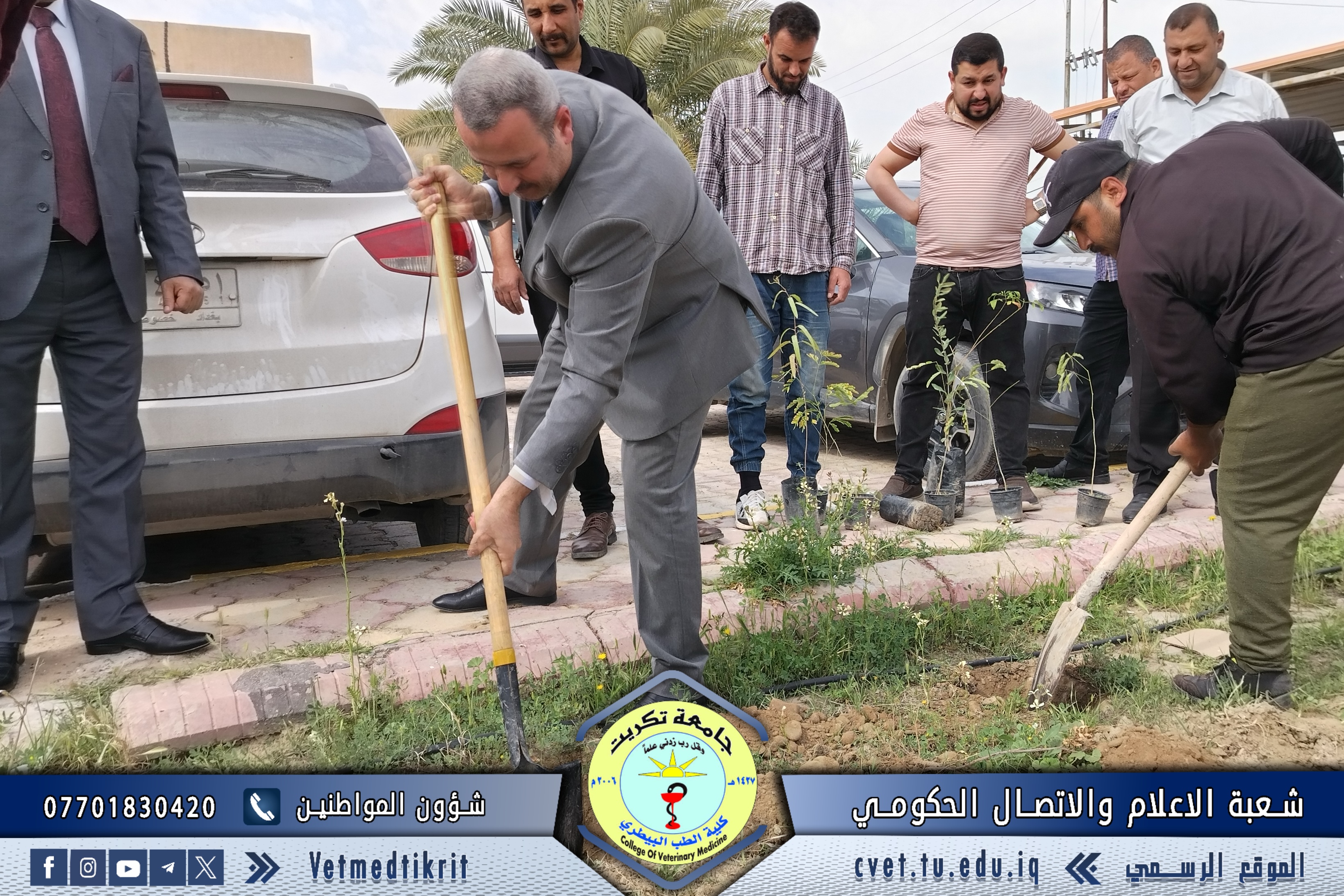 في إطار الجهود المبذولة لتعزيز الاستدامة البيئية وتحسين المشهد الطبيعي داخل الحرم الجامعي، نظّمت كلية الطب البيطري في جامعة تكريت حملة تشجير واسعة شملت أروقة الكلية والبيت الحيواني، بمشاركة نخبة من أساتذتها وكوادرها التدريسية. وقد شهدت الحملة مشاركة كل من الأستاذ الدكتور بشار صادق نومي عميد الكلية، والأستاذ المساعد الدكتور منتصر محمد هلال معاون العميد للشؤون العلمية، والأستاذ المساعد الدكتور أسامة حميد شهاب معاون العميد للشؤون الإدارية، إلى جانب عدد من السادة التدريسيين الذين ساهموا بشكل فاعل في زراعة الشتلات والعناية بها. وتضمنت الحملة غرس أنواع مختلفة من الأشجار، من بينها الأكاسيا والزيتون والأوكالبتوس والقوغ، لما لها من فوائد بيئية وجمالية، فضلًا عن دورها في تحسين جودة الهواء وتوفير بيئة أكثر صحة داخل الحرم الجامعي.