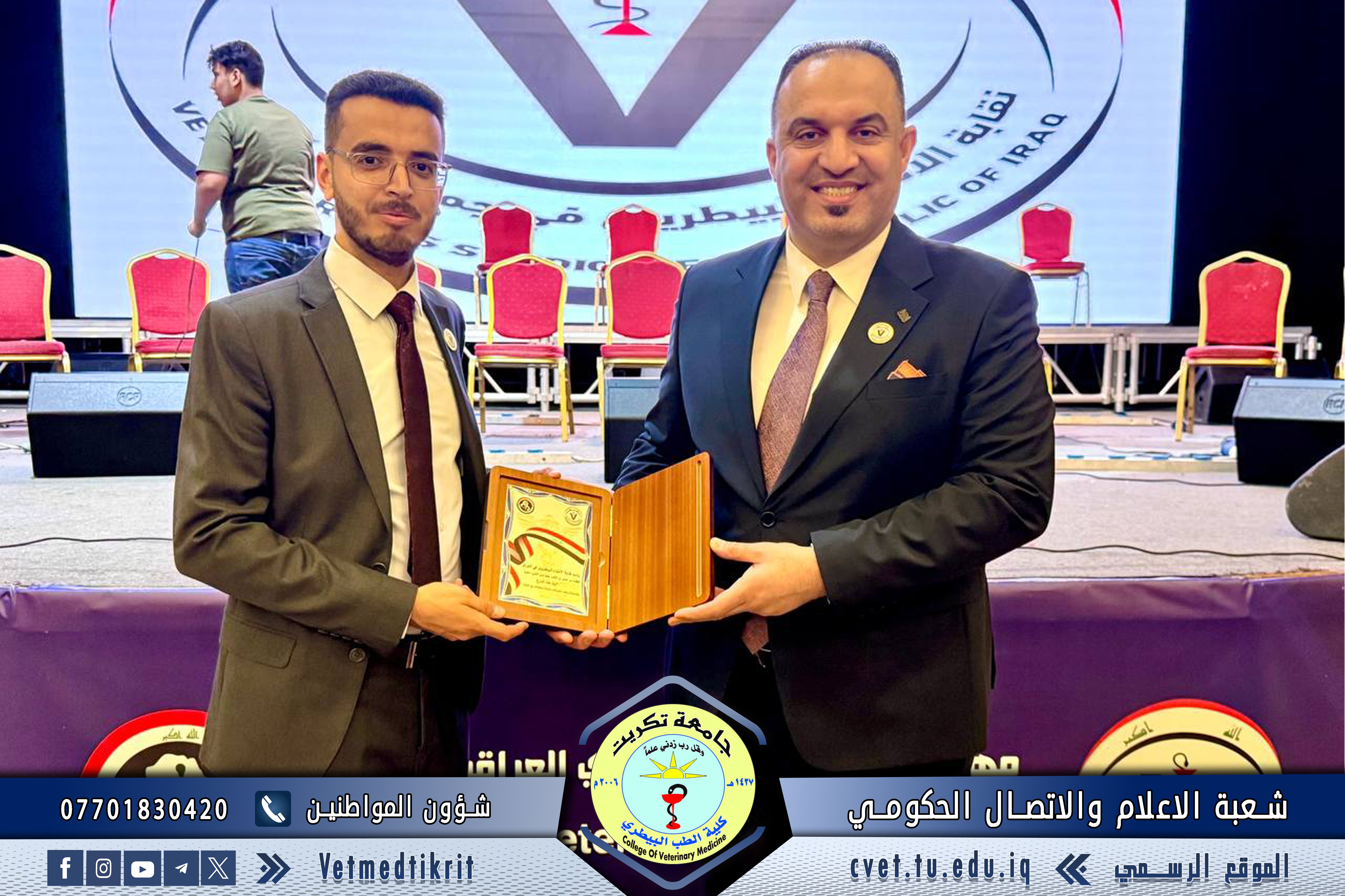 شارك وفد من كلية الطب البيطري بجامعة تكريت في احتفالية يوم الطبيب البيطري، التي أقيمت في نقابة الأكاديميين العراقيين بالعاصمة بغداد، بحضور عدد من الشخصيات الأكاديمية والمهنية في القطاع البيطري. وترأس الوفد الأستاذ الدكتور بشار صادق نومي، عميد الكلية، بحضور الدكتور نصار عبدربه، نقيب الأطباء البيطريين في محافظة صلاح الدين، وعدد من تدريسيي وخريجي الكلية. وقد شهدت الاحتفالية تكريم عدد من المتميزين من أبناء الكلية، حيث قام نقيب الأطباء البيطريين الدكتور علاء الحسناوي بتكريم كل من الدكتور علي غازي عطية والطبيب البيطري أثير إبراهيم مصطفى تقديرًا لجهودهم المتميزة وعطائهم العلمي والمهني في خدمة مهنة الطب البيطري. كما تم خلال الاحتفالية تكريم كل من الطبيبة البيطرية آية خالد إبراهيم، الطبيبة البيطرية هبة بلال كاظم، والطبيبة البيطرية نور الهدى وليد أحمد. وأكدت مشاركة الوفد عمق العلاقة بين الكلية ومؤسسات المهنة، وحرص الكلية على دعم خريجيها وتكريم المبدعين منهم، بما يعزز من مكانة الطبيب البيطري ودوره المحوري في حماية الصحة العامة وتعزيز الأمن الغذائي.