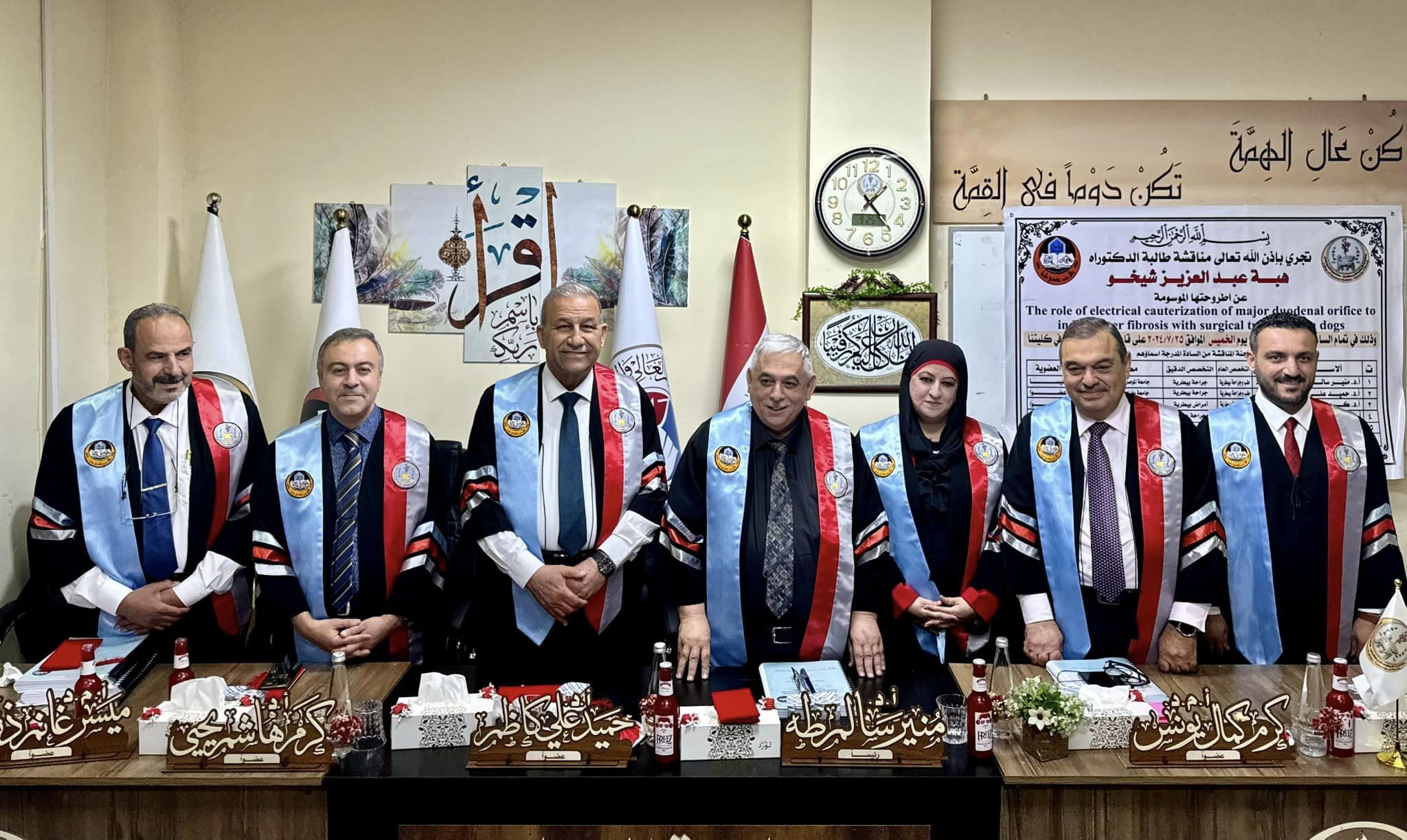 حصلت المدرس هبة عبدالعزيز شيخو التدريسية في كلية الطب البيطري بجامعة تكريت على شهادة الدكتوراه في تخصص (الجراحة البيطرية) من كلية الطب البيطري بجامعة الموصل وذلك عن اطروحتها الموسومة (دور الكّي الكهربائي لفتحة الاثني عشر الرئيسية لإحداث تليف الكبد وعلاجه جراحيا في الكلاب). حيث هدفت هذه الدراسة الى إحداث التليف الكبدي جراحيا عن طريق ربط القناة الصفراوية المشتركة بالمنظار والجراحة التقليدية باستخدام مواد جراحية جديدة وعلاج هذا التليف جراحيا عن طريق زرع وتثبيت المرارة في الصائم. وتم استنتاج ان الجراحة التقليدية باستخدام أسلاك الفولاذ المقاوم للصدأ لربط القناة الصفراوية المشتركة لإحداث تليف الكبد كانت متفوقة من حيث الكفاءة بالمقارنة مع الجراحة بالمنظار، بالاضافة الى ذلك كانت طريقة زرع المرارة في الصائم فعالة وأدت الى علاج التليف واستعادة وظيفة القناة الصفراوية في الكلاب مما يجعلها ذات قيمة لدراسة عملية التعافي من تليف الكبد الركودي خاصة في المراحل المبكرة من التليف.