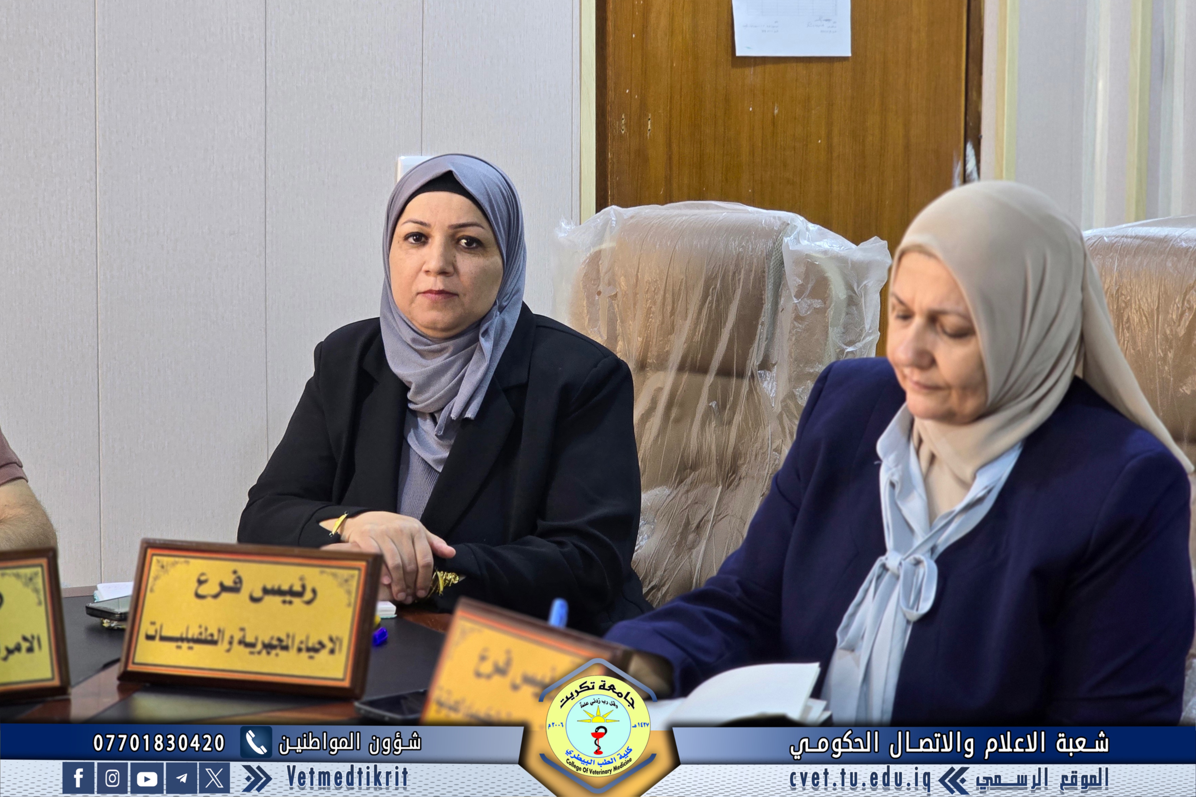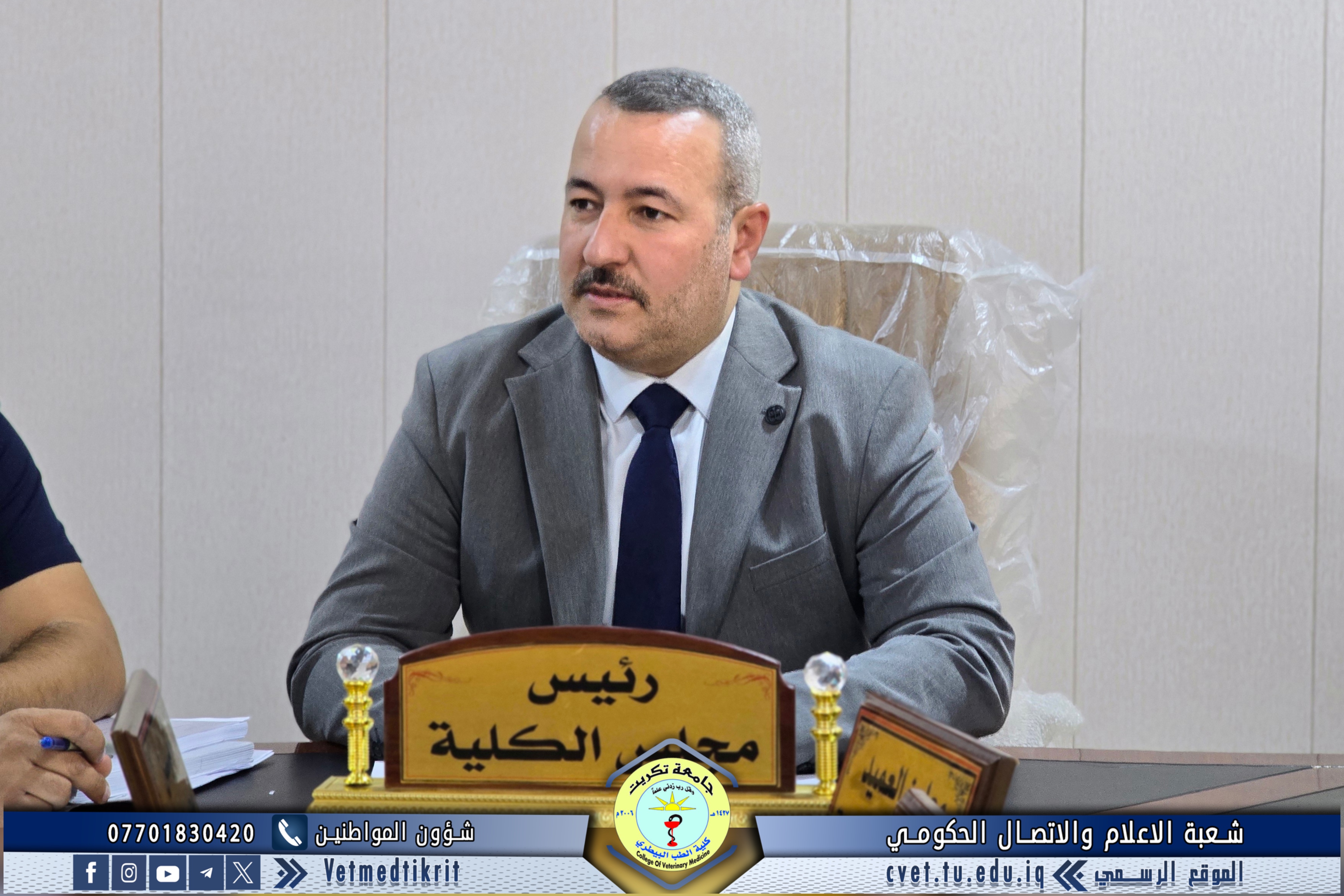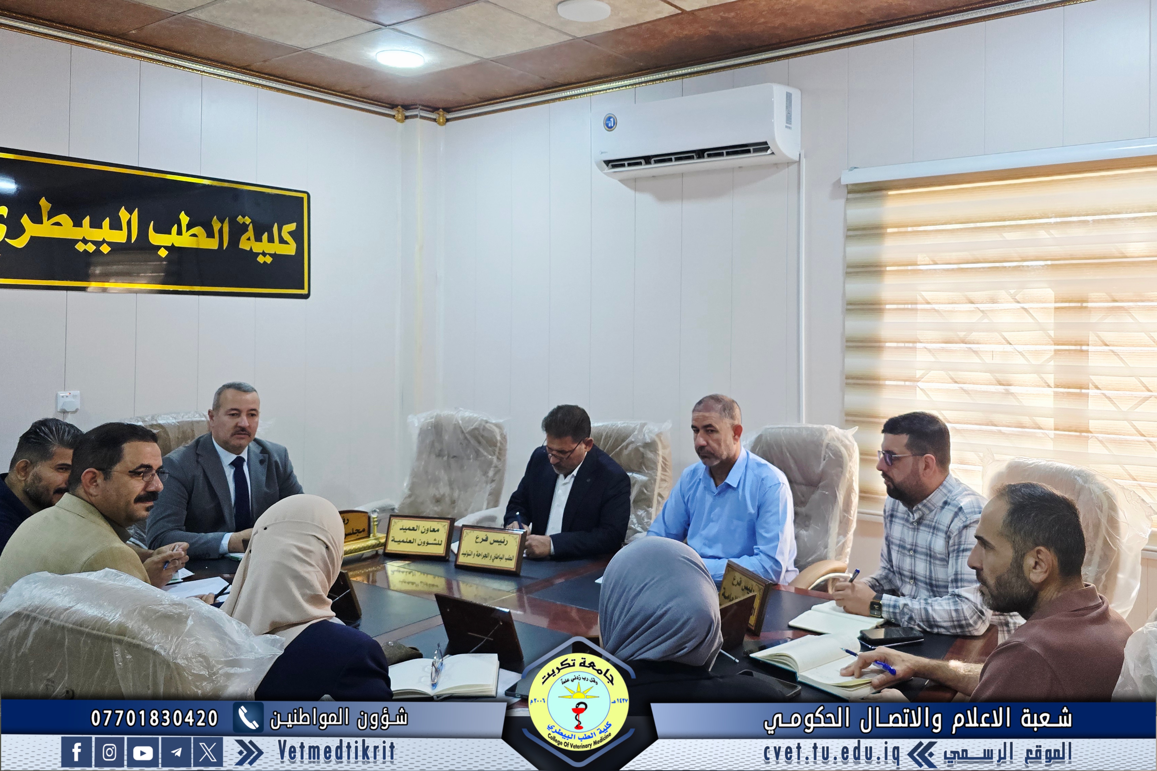 عقد مجلس كلية الطب البيطري في جامعة تكريت جلسته الرابعة للعام الدراسي 2025-2026 برئاسة الأستاذ الدكتور بشار صادق نومي عميد الكلية، وبحضور السادة المعاونين والسيدات والسادة رؤساء الفروع العلمية. في مستهل الاجتماع رحب السيد العميد بالحضور متمنياً لهم التوفيق والنجاح، ثم ناقش المجلس عدداً من القضايا المدرجة على جدول الأعمال، أبرزها استعدادات الكلية لاستقبال الطلبة المقبولين للعام الدراسي الحالي ،ومنح شهادة الماجستير لعدد من الطلبة، وتحديد مناقشة بحوث التخرج لطلبة المرحلة الخامسة، وعدد من الامور الاخرى التي تهم الكلية بشكل عام. ويأتي انعقاد المجلس في إطار سعي الكلية لمواصلة مسيرتها العلمية والأكاديمية بخطوات مدروسة نحو التميز وضمان الجودة في الأداء التعليمي