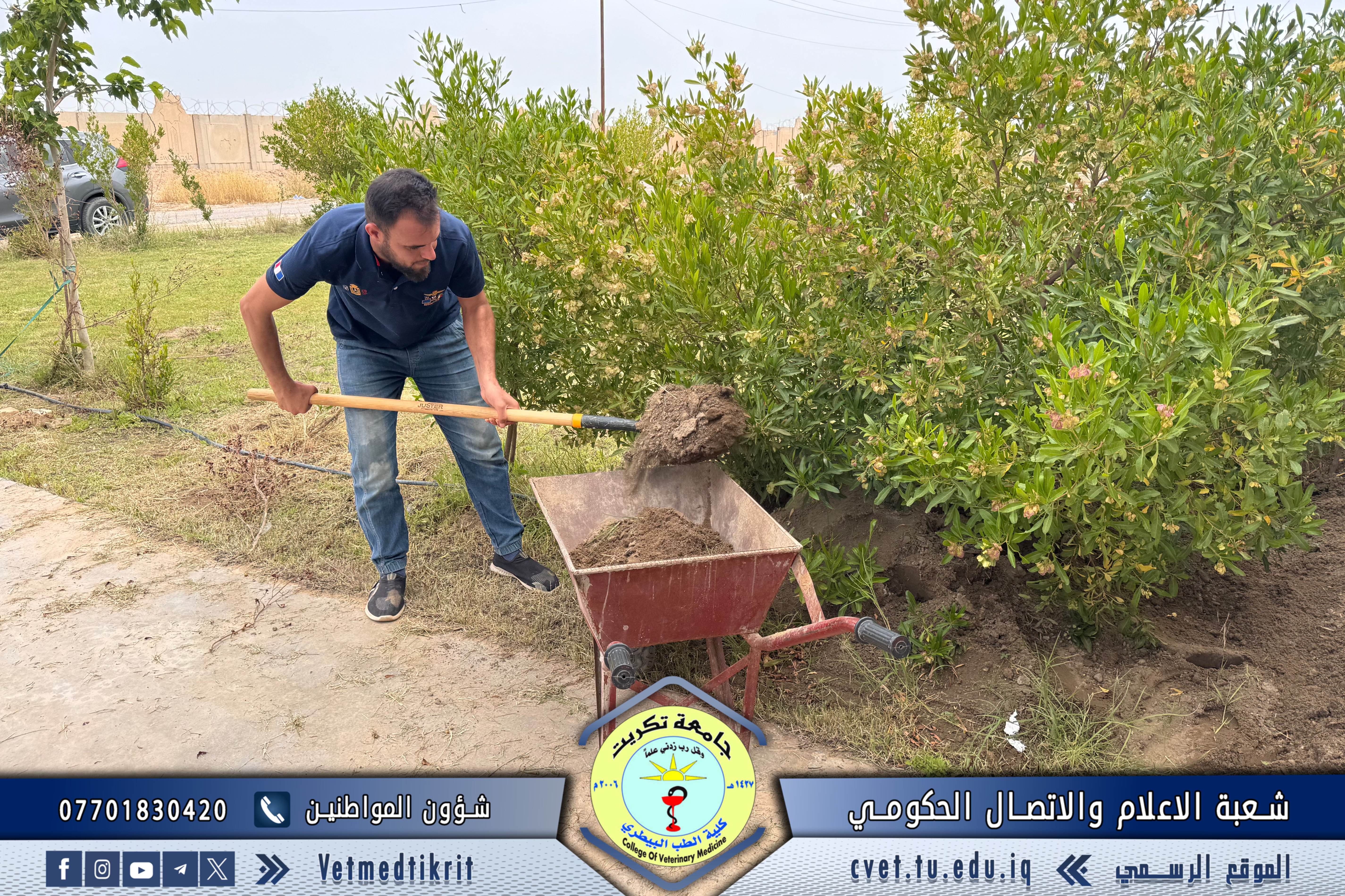 برعاية الأستاذ الدكتور بشار صادق نومي، عميد كلية الطب البيطري في جامعة تكريت، وبإشراف الأستاذ المساعد الدكتور أسامة حميد شهاب، معاون العميد للشؤون الإدارية، نفذت شعبة الحدائق والخدمات في الكلية حملة شاملة لإعادة تأهيل وصيانة حدائق البيت الحيواني ووحدة العيادة الخارجية التابعين للكلية.