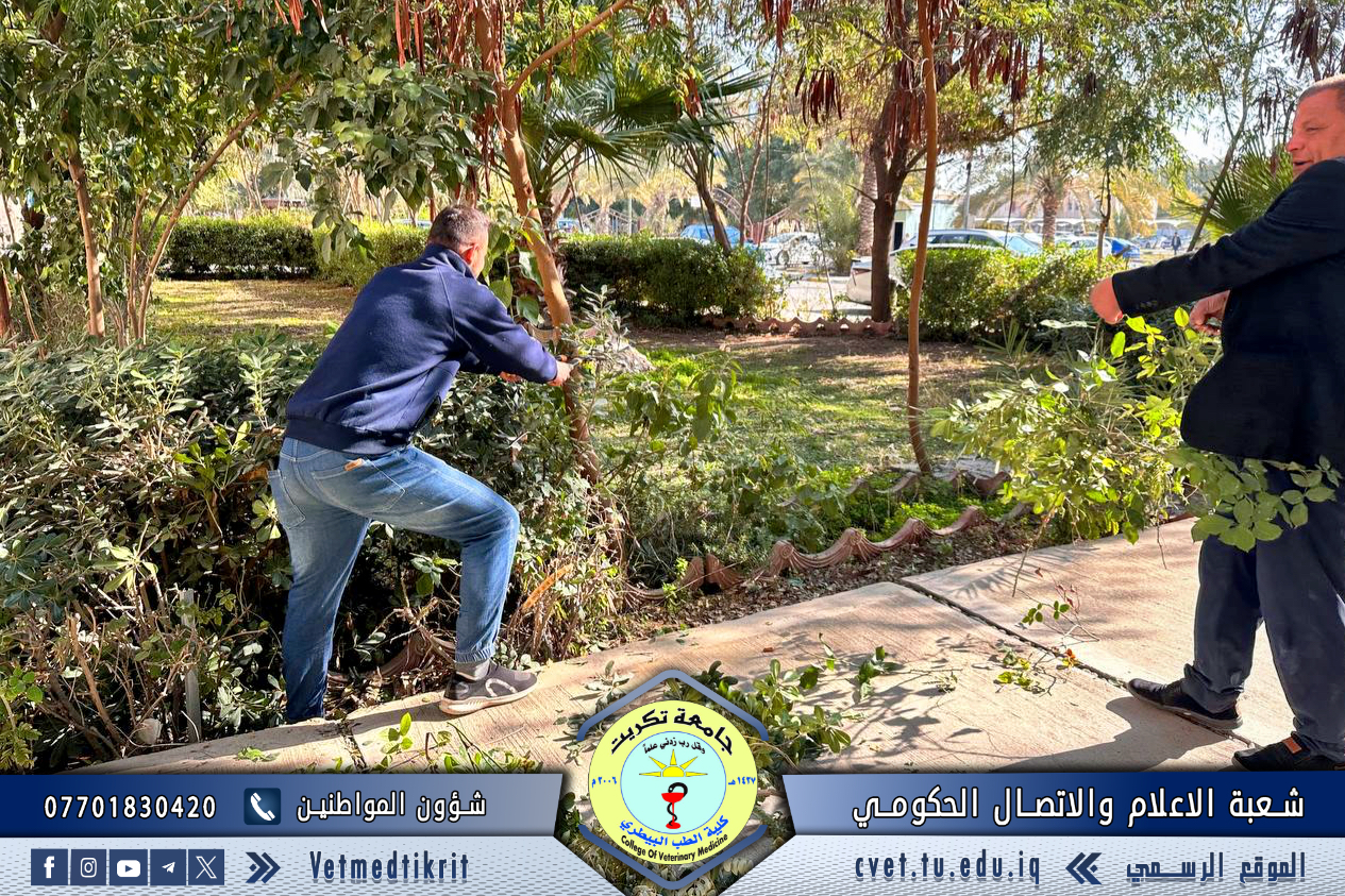 نفذت شعبة الخدمات في كلية الطب البيطري حملة لقص الأشجار وتنظيف الحدائق ضمن جهودها المستمرة للحفاظ على جمالية البيئة الجامعية. شملت الحملة تقليم الأشجار وإزالة الأعشاب الزائدة بهدف تحسين المظهر العام وتوفير بيئة نظيفة ومريحة للطلبة والكادر التدريسي.