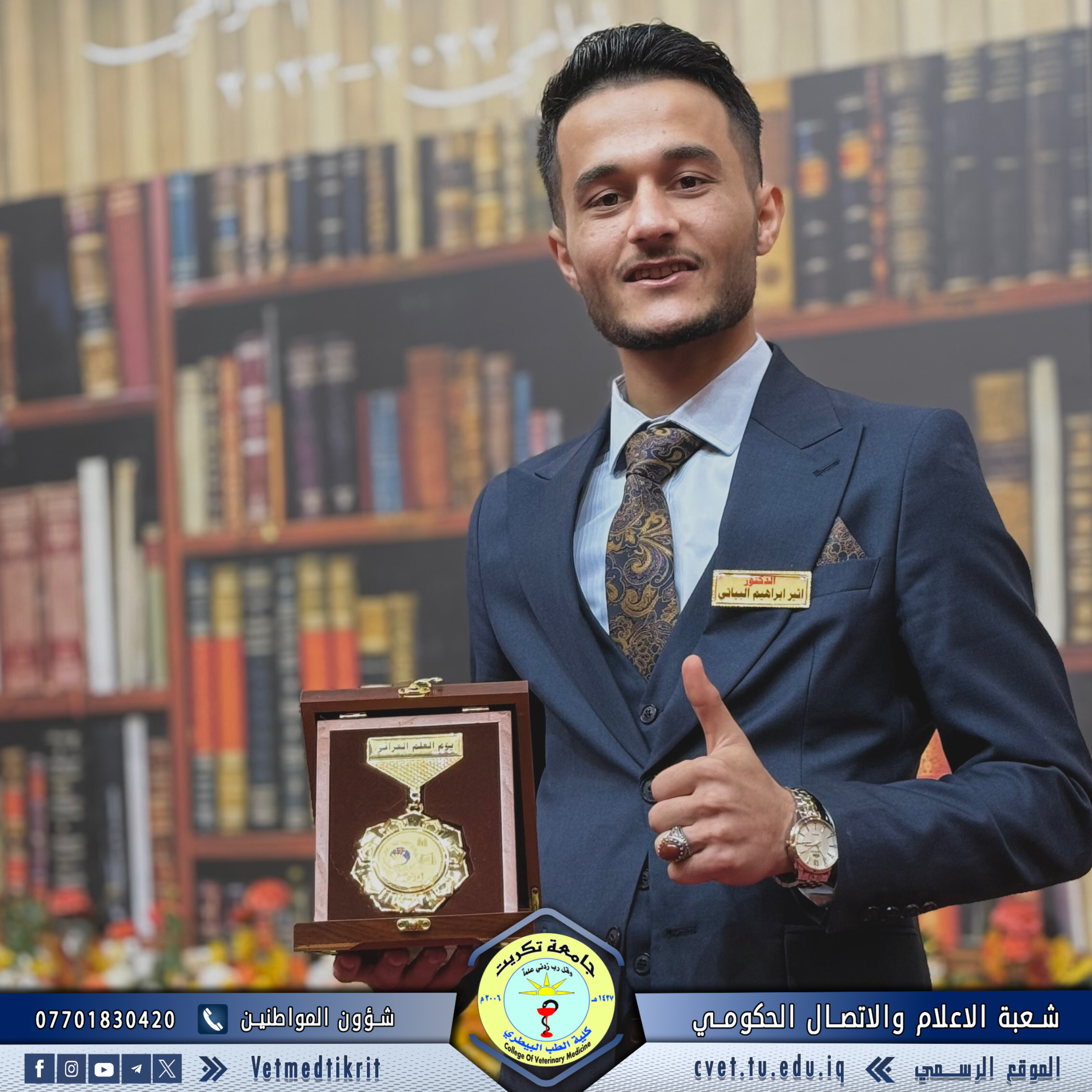تم تكريم كلية الطب البيطري في جامعة تكريت لحصولها على المركز الثالث في جائزة يوم العلم العراقي لعام 2023، وذلك خلال الاحتفالية التي أقيمت في جامعة بغداد يوم 30 كانون الأول ضمن فئة جائزة العمل التشجيعي التطوعي.