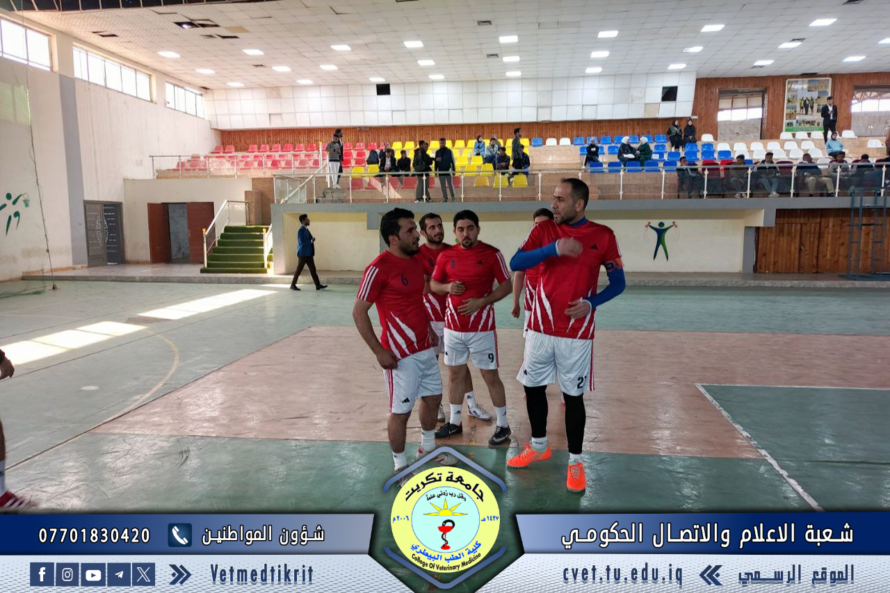تحت أضواء الصالة المغلقة للألعاب الرياضية في مبنى كلية التربية الرياضية بجامعة تكريت، التقى اليوم مجموعة من أساتذة كلية الطب البيطري بنظرائهم من كلية القانون في مباراة استثنائية لكرة الصالات. وتجلت الروح الرياضية في أبهى صورها عندما خلع الأساتذة عباءة المحاضرات الأكاديمية ليرتدوا الزي الرياضي، في مشهد جمع بين الأداء الرياضي المتميز والزمالة المهنية. وشكلت المباراة، التي تأتي ضمن منافسات البطولة الداخلية لأساتذة الجامعة، حلقة جديدة في سلسلة النشاطات الرياضية التي تعزز أواصر العلاقات بين الكوادر التدريسية في مختلف كليات الجامعة.