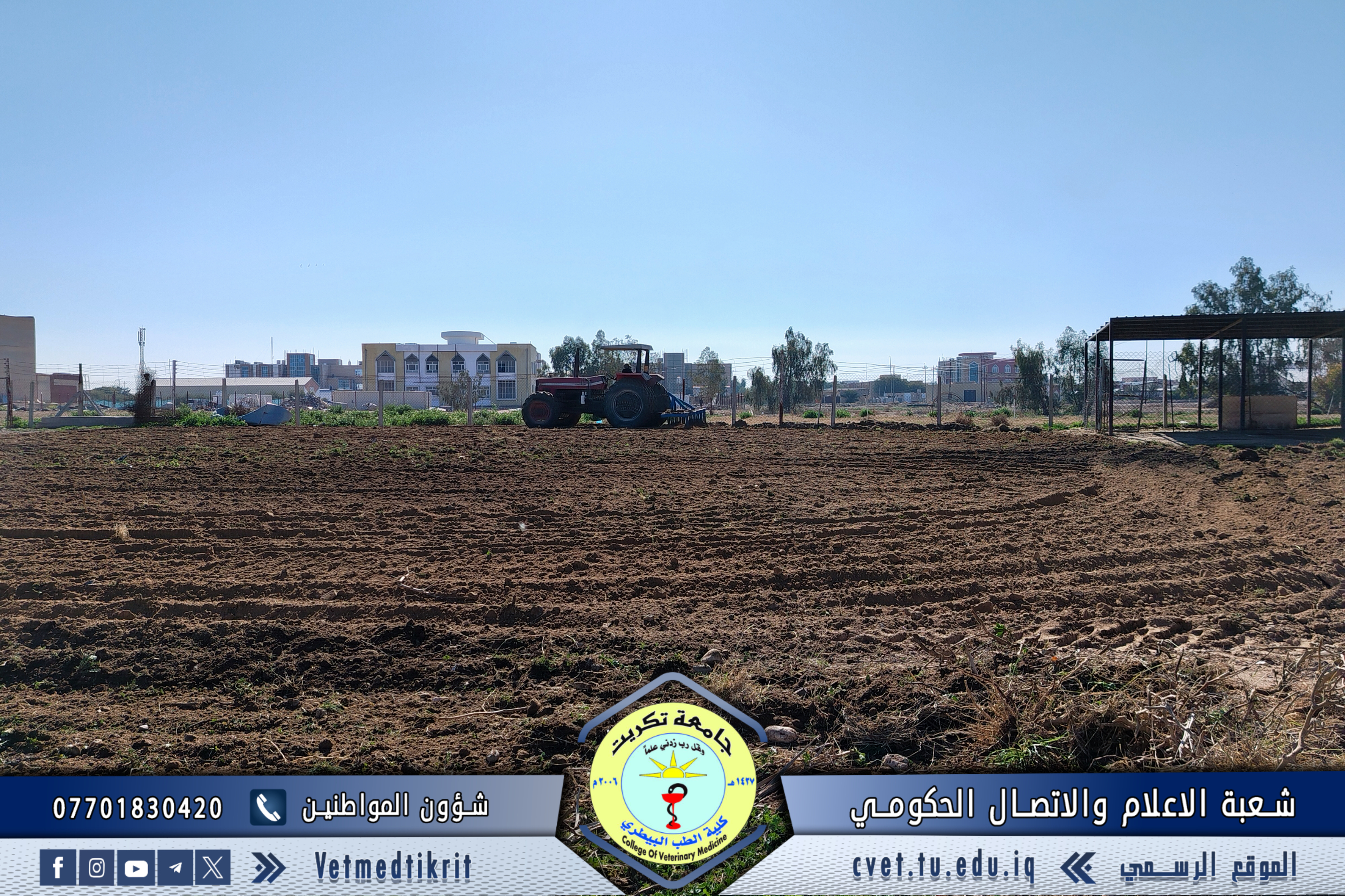 وشملت الأعمال حراثة وتهيئة الأرض في البيت الحيواني، إضافة إلى إجراء أعمال صيانة شاملة لشبكة الكهرباء، ضمن خطة الكلية لتحسين مرافقها وضمان جاهزيتها.