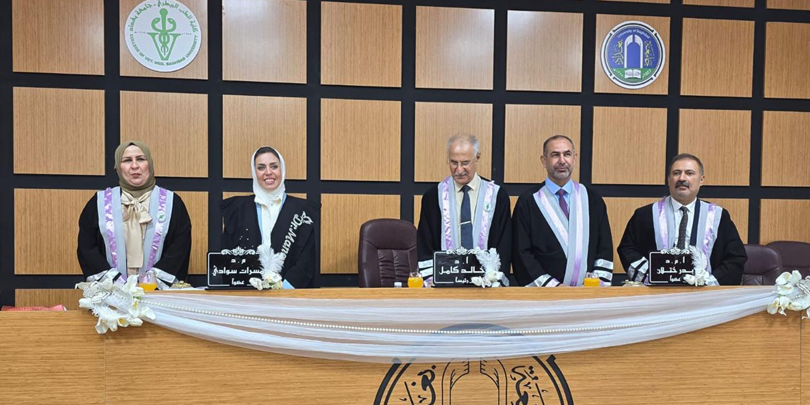 شارك الاستاذ المساعد الدكتور بدر ختلان حميد من كلية الطب البيطري بجامعة تكريت في مناقشة رسالة الماجستير الموسومة (Histomorphological and histochemical study of esophagus and stomach in Guinea pigs (Cavia porcellus) during suckling and post suckling periods) للطالبة (منار نعمة رشيد) من كلية الطب البيطري بجامعة بغداد وذلك في المناقشة التي اقيمت على قاعة الفرات بتاريخ 2024/7/2.