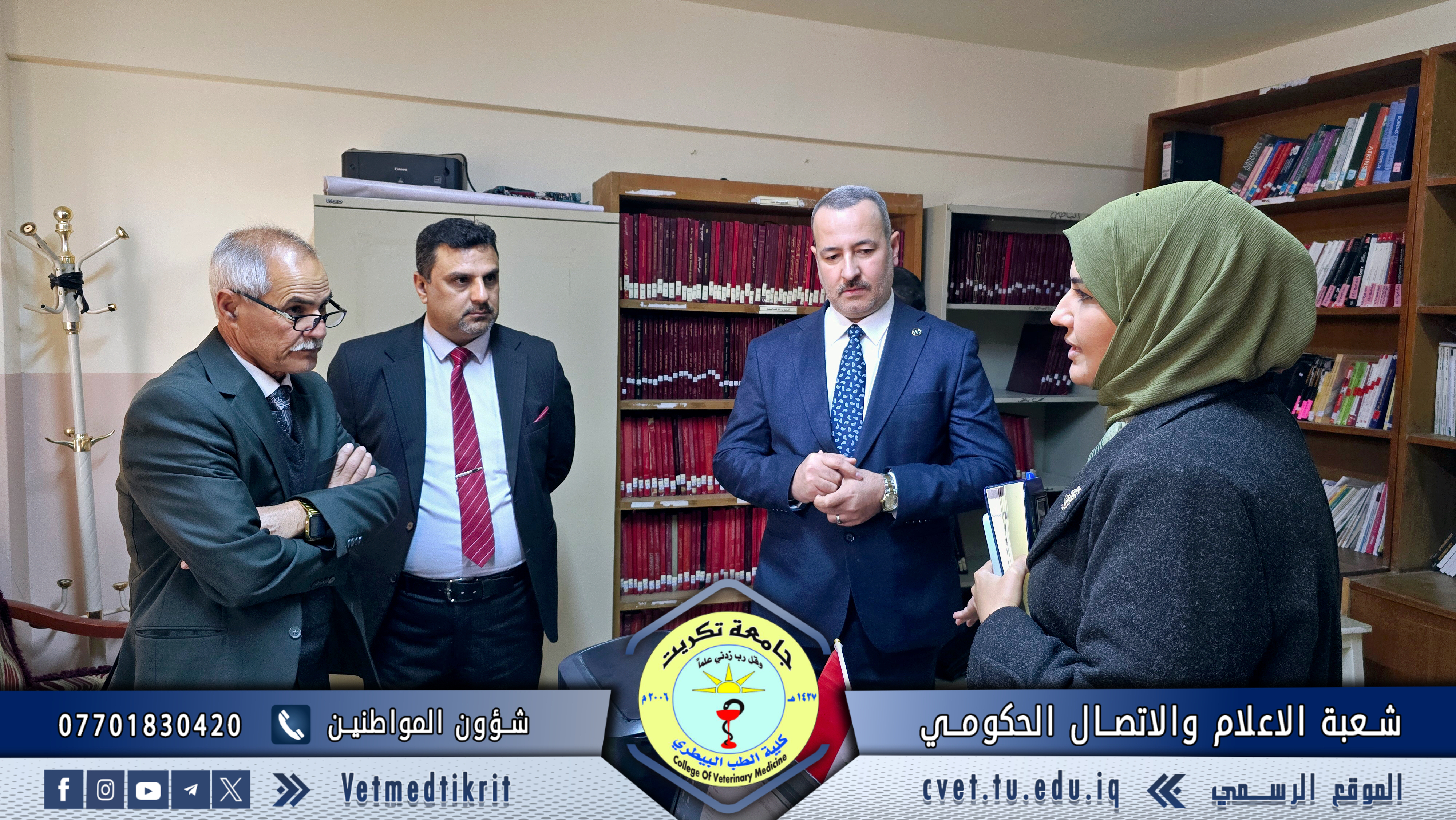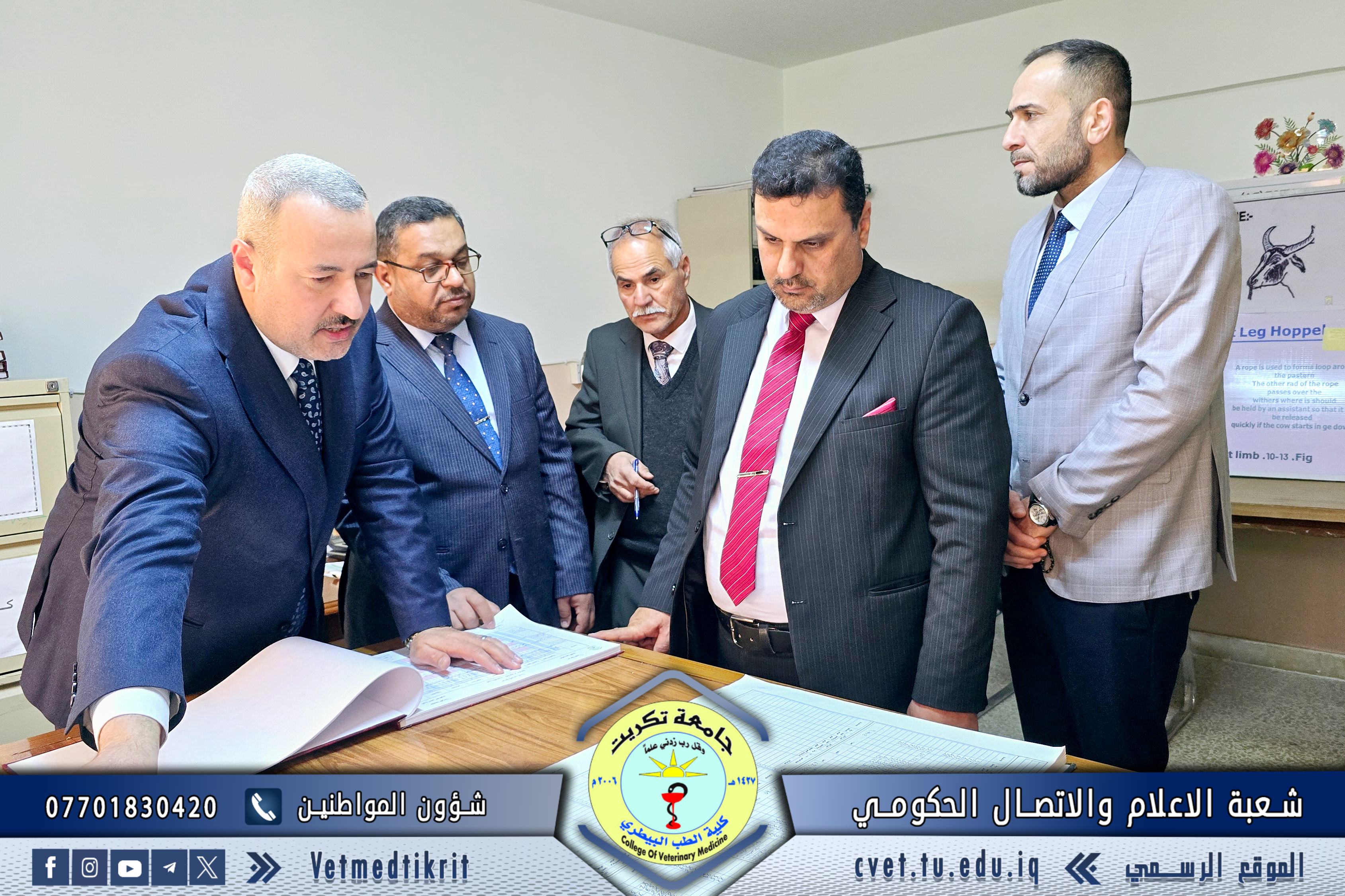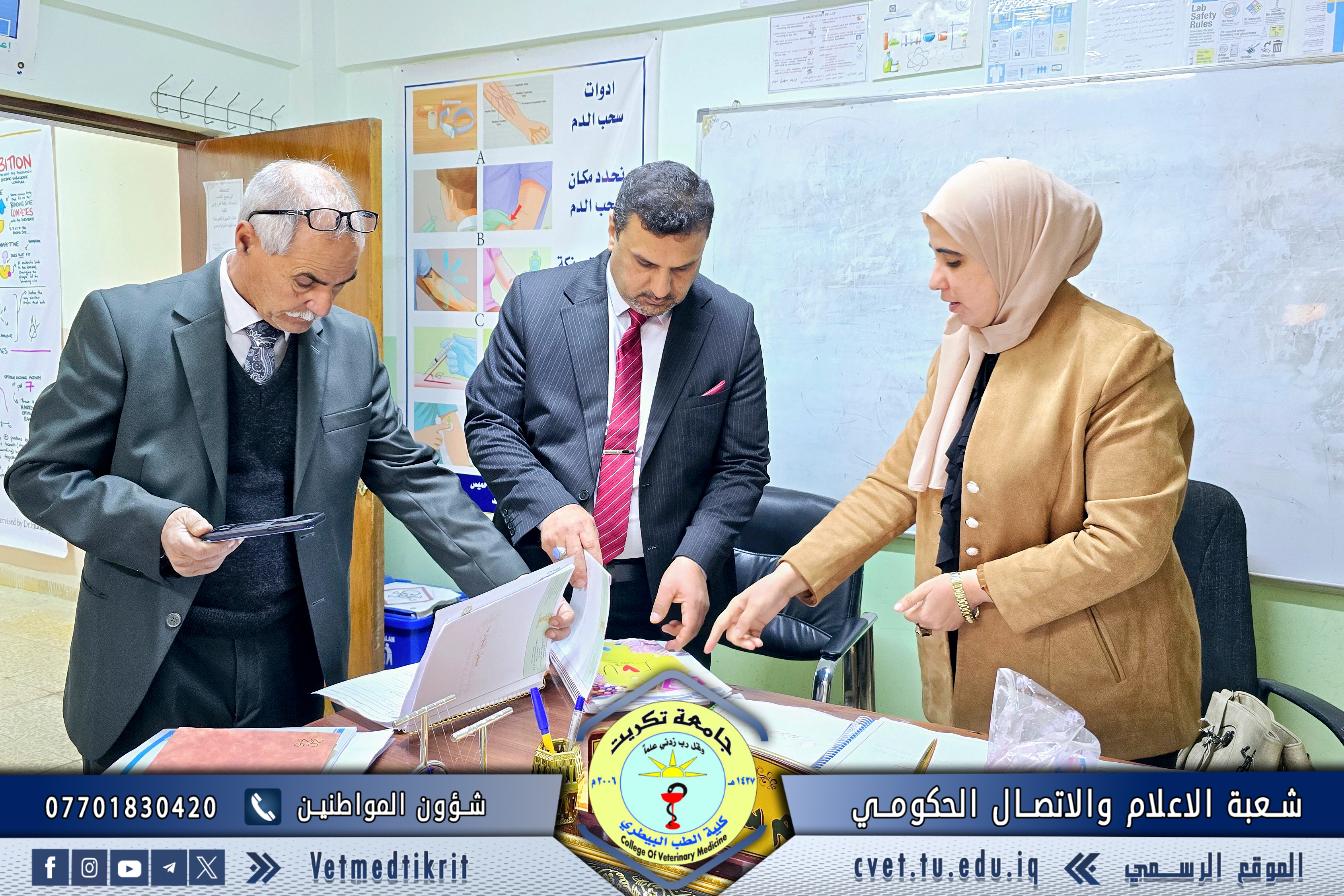 أجرى فريق المُقيم الوطني الخاص باعتماد برامج كليات الطب البيطري في العراق جولة تفقدية داخل أروقة كلية الطب البيطري بجامعة تكريت، للاطلاع على المرافق الأكاديمية والتدريبية ومدى تلبيتها لمتطلبات الجودة والاعتماد.