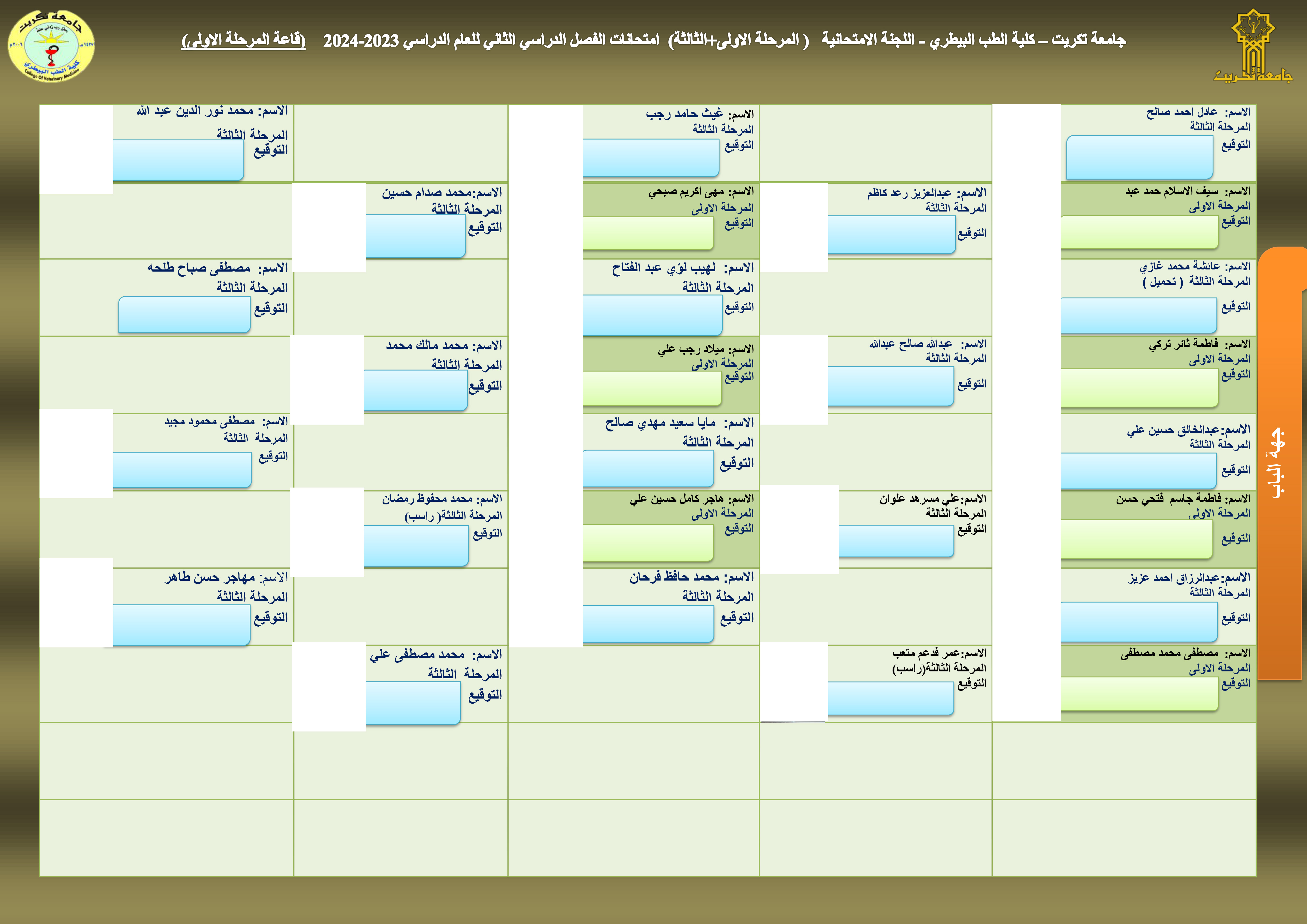 خارطة جلوس المرحلة الاولى + المرحلة الثالثة - قاعة رقم (1) - بناية الكلية