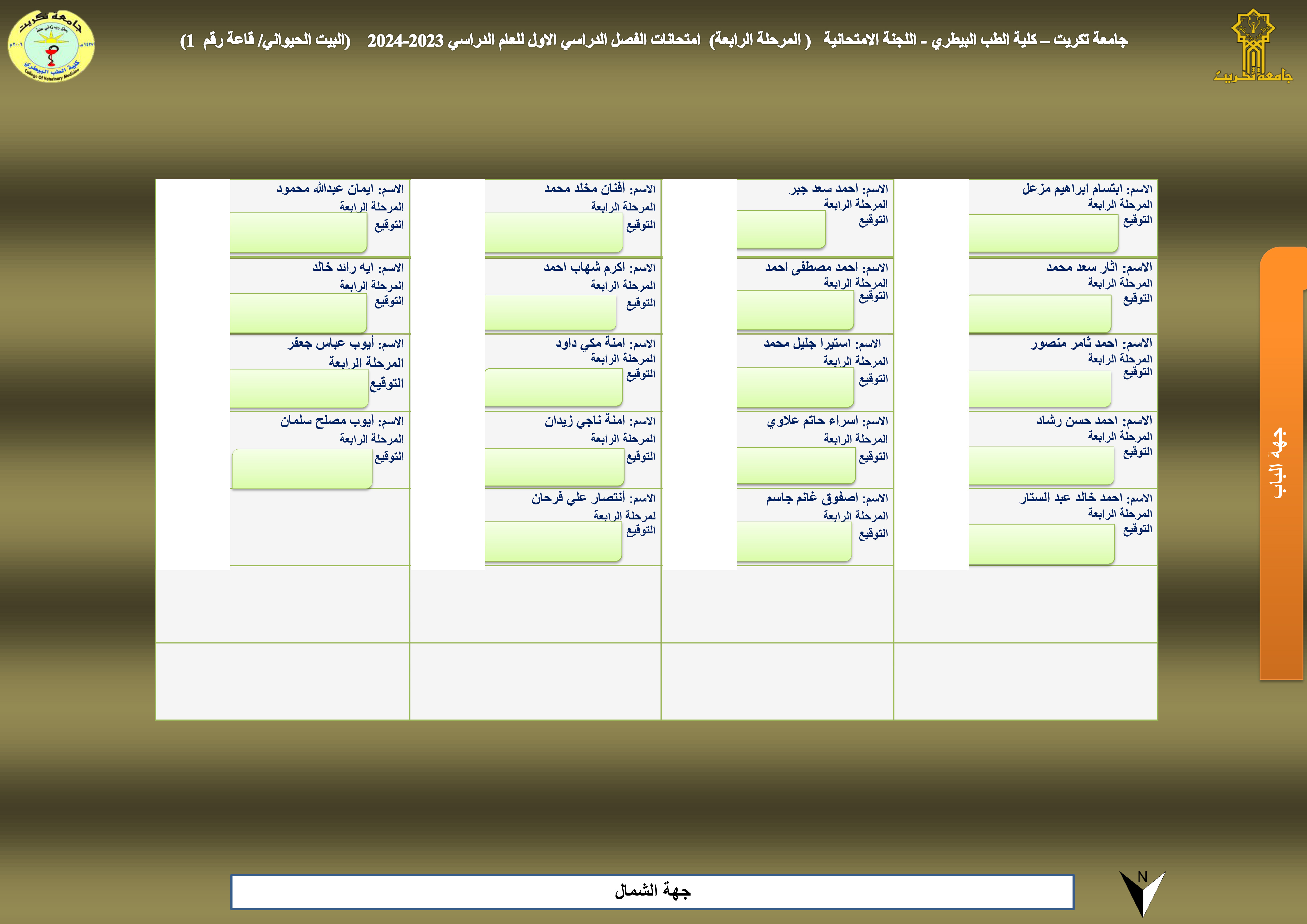 خارطة جلوس المرحلة الرابعة - قاعة رقم (1) - البيت الحيواني
