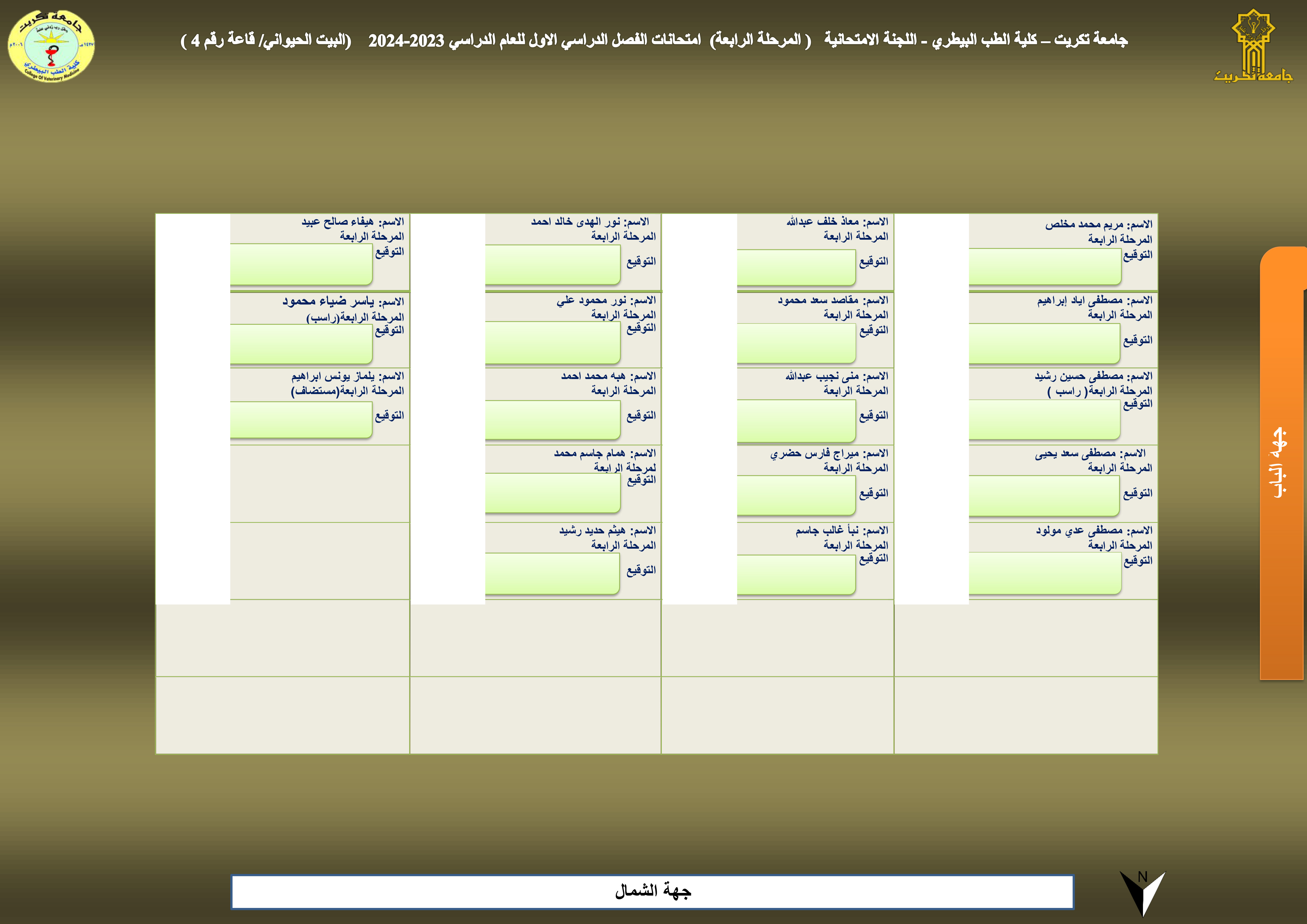 خارطة جلوس المرحلة الرابعة - قاعة رقم (4) - البيت الحيواني