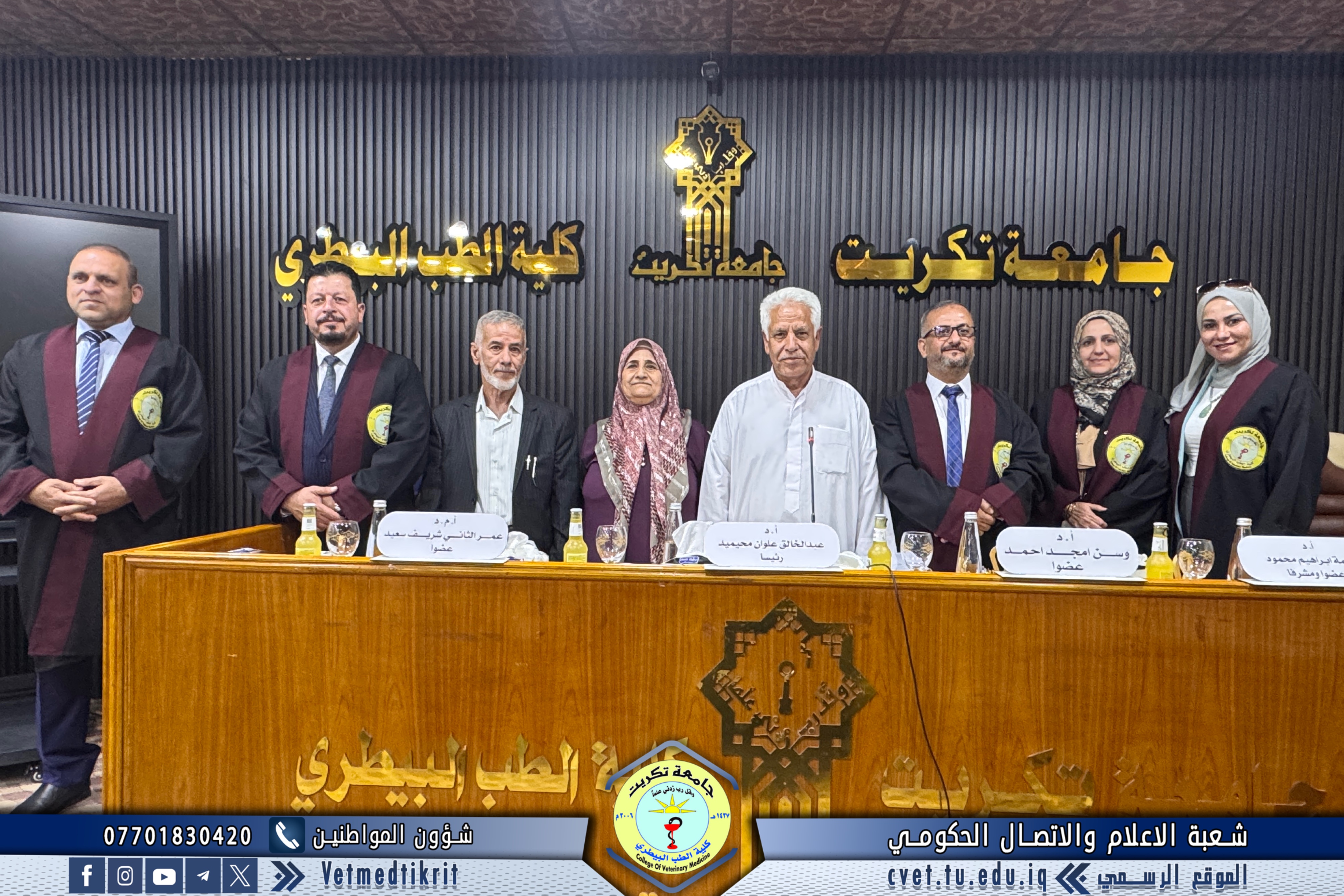 وحضر المناقشة التي اقيمت على قاعة الدكتور مهند ماهر في كلية الطب البيطري عدد من السيدات والسادة اعضاء الكادر التدريسي وجمع من الطلبة.
