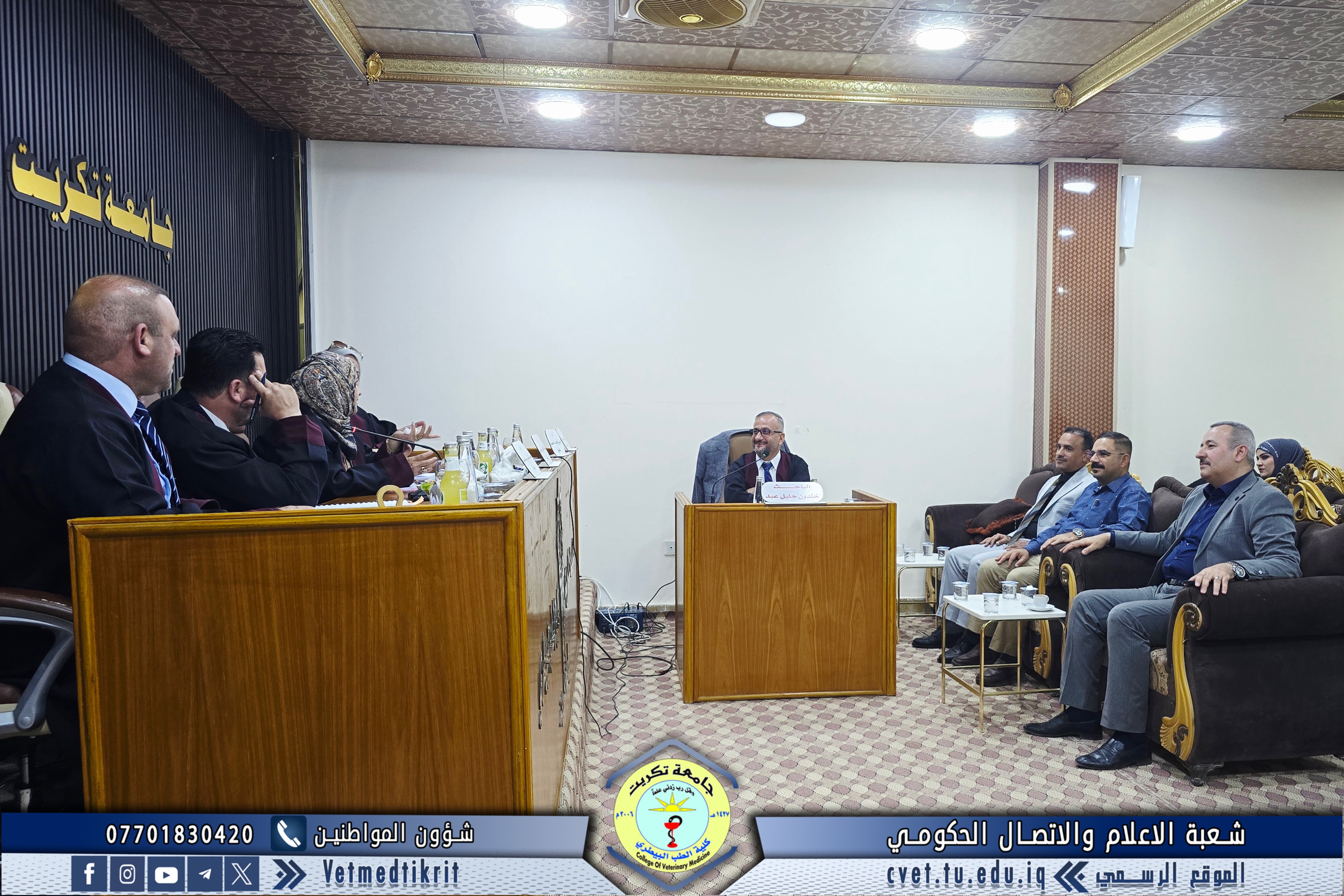 تم بعون الله تعالى في كلية الطب البيطري في جامعة تكريت وبحضور الاستاذ الدكتور بشار صادق نومي عميد الكلية مناقشة رسالة الماجستير الموسومة (التوصيف الجزيئي لانواع طفيلي التريبانوسوما في الابقار وقياس بعض المعايير المناعية في محافظة ديالى) للطالب (خلدون خليل عبد صالح) في تخصص (الاحياء المجهرية). حيث تألفت لجنة المناقشة من كل من: