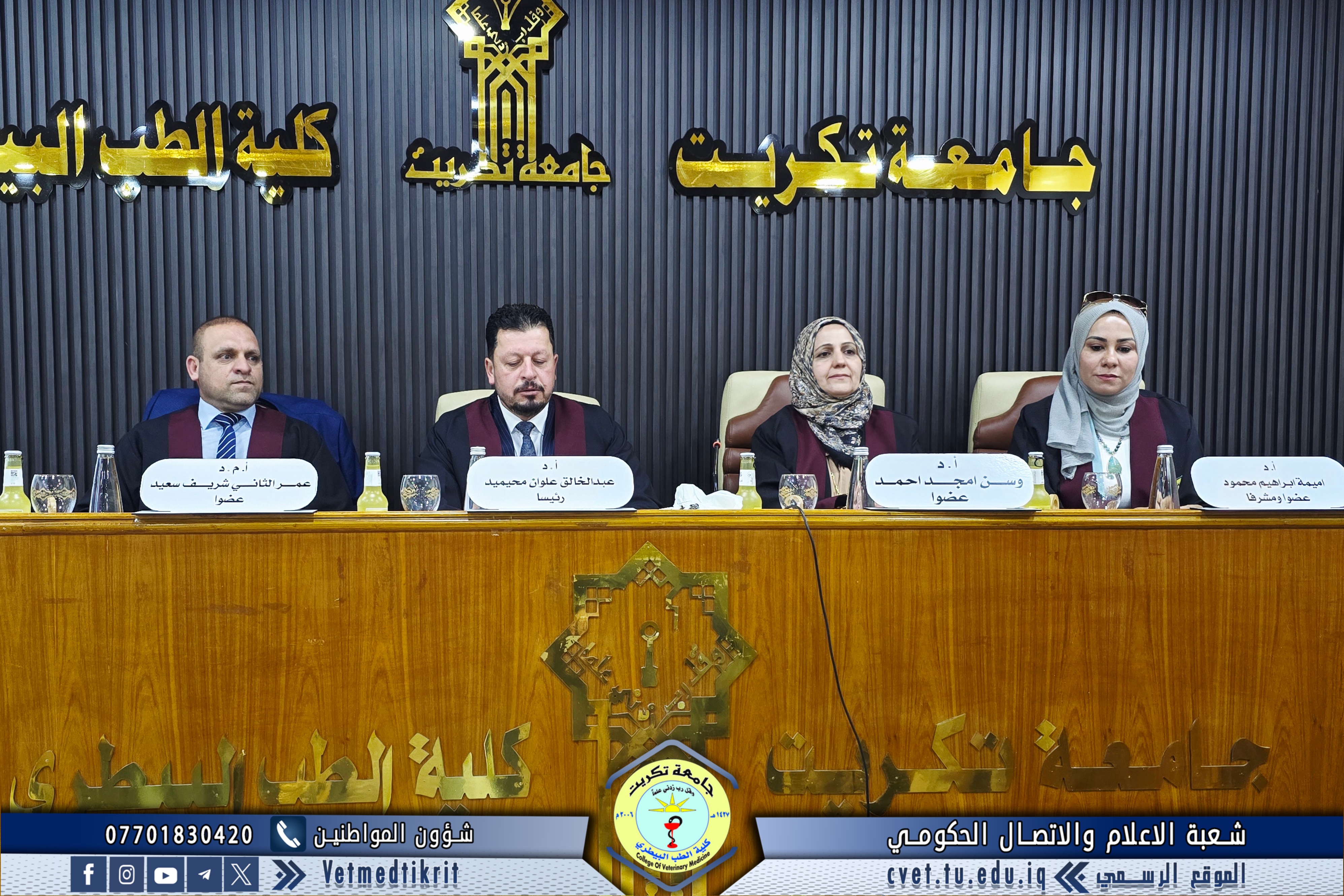 - الاستاذ المساعد الدكتور عمر الثاني شريف سعيد / تخصص طب باطني ووقائي / جامعة تكريت - كلية الطب البيطري / عضوا