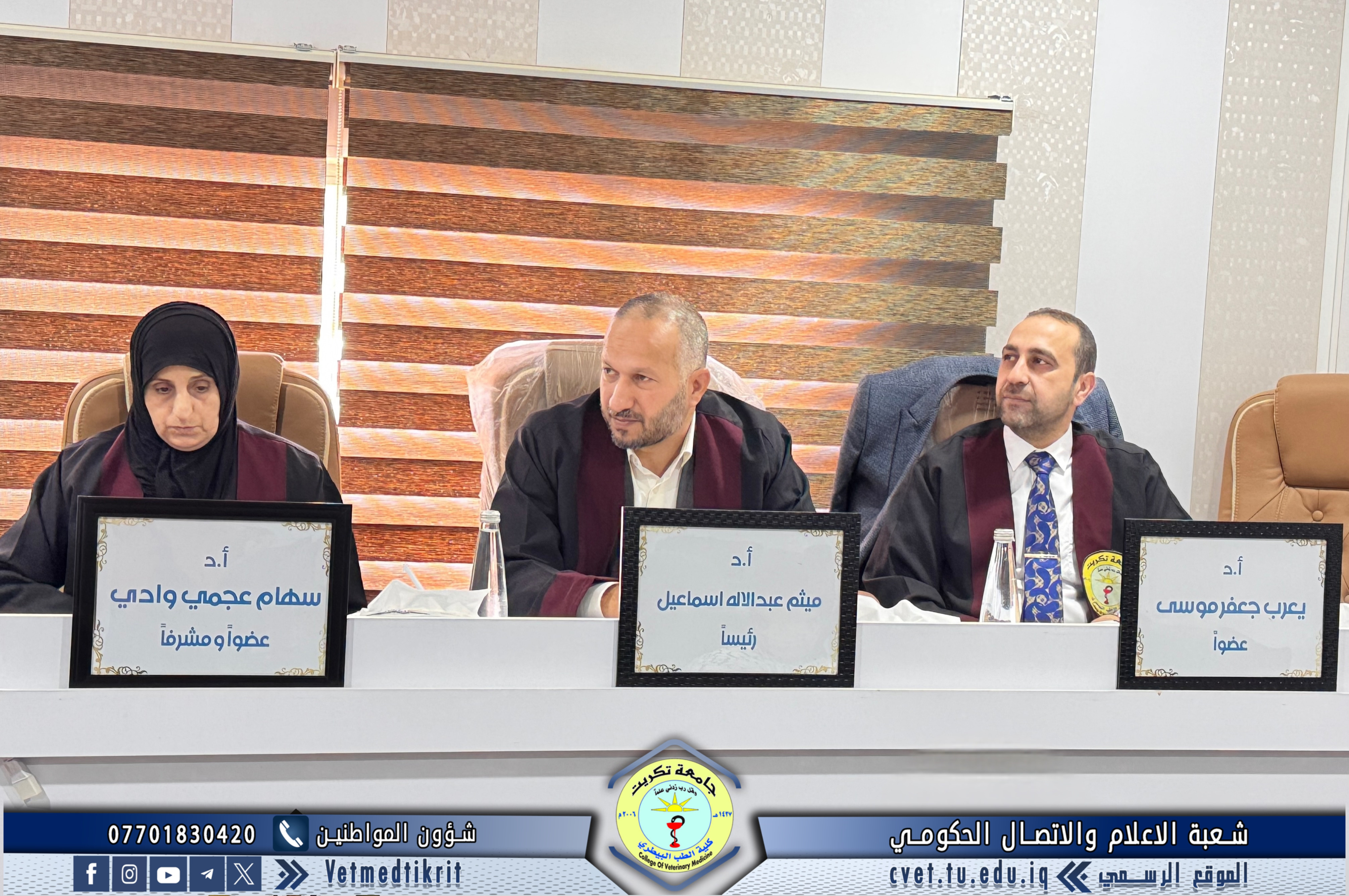 - أ.د. سهام عجمي وادي / تخصص ادوية بيطرية / كلية الطب البيطري - جامعة تكريت / عضوا ومشرفا