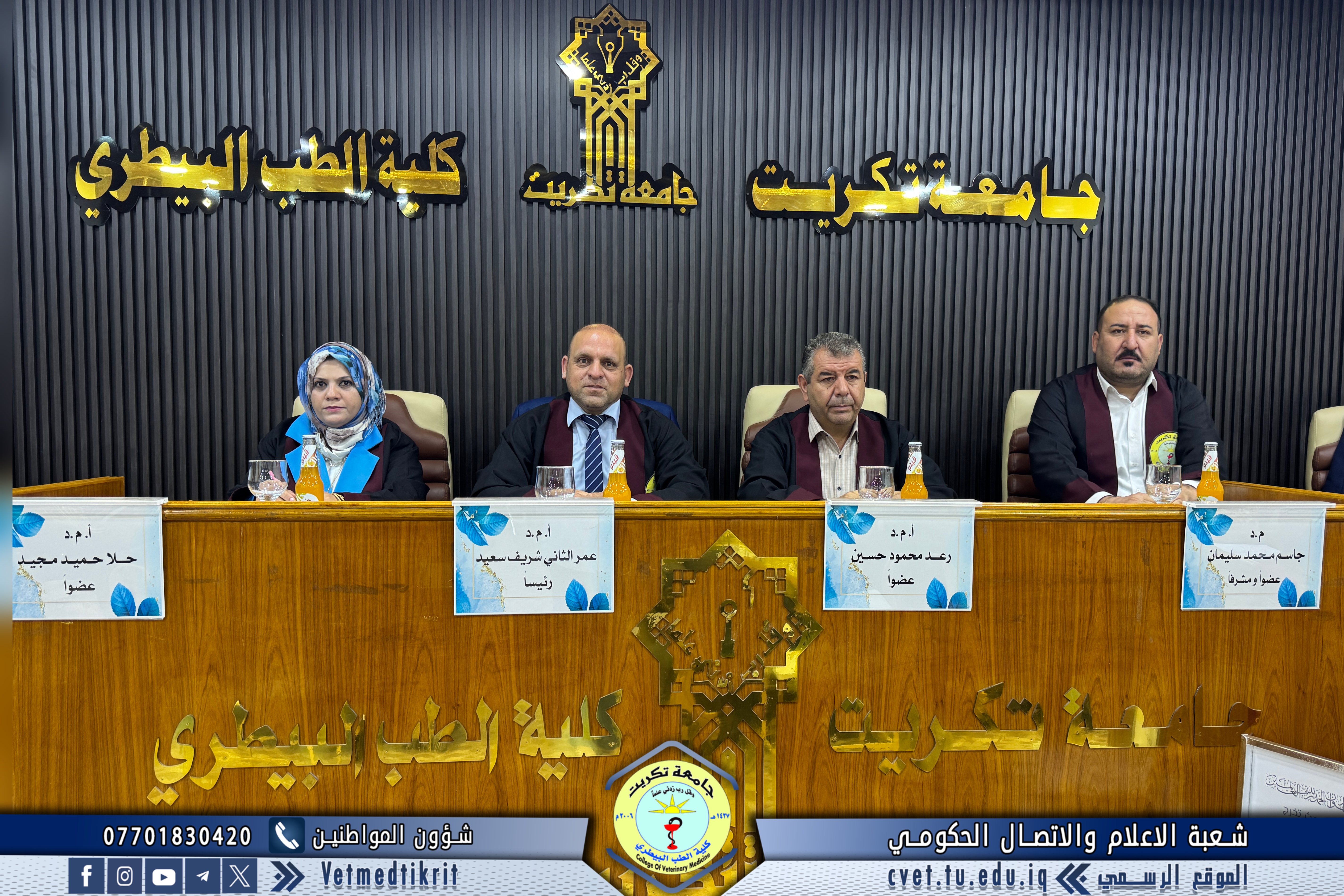 - الاستاذ المساعد الدكتور عمرالثاني شريف سعيد / تخصص الطب الباطني والوقائي / جامعة تكريت - كلية الطب البيطري / رئيسا