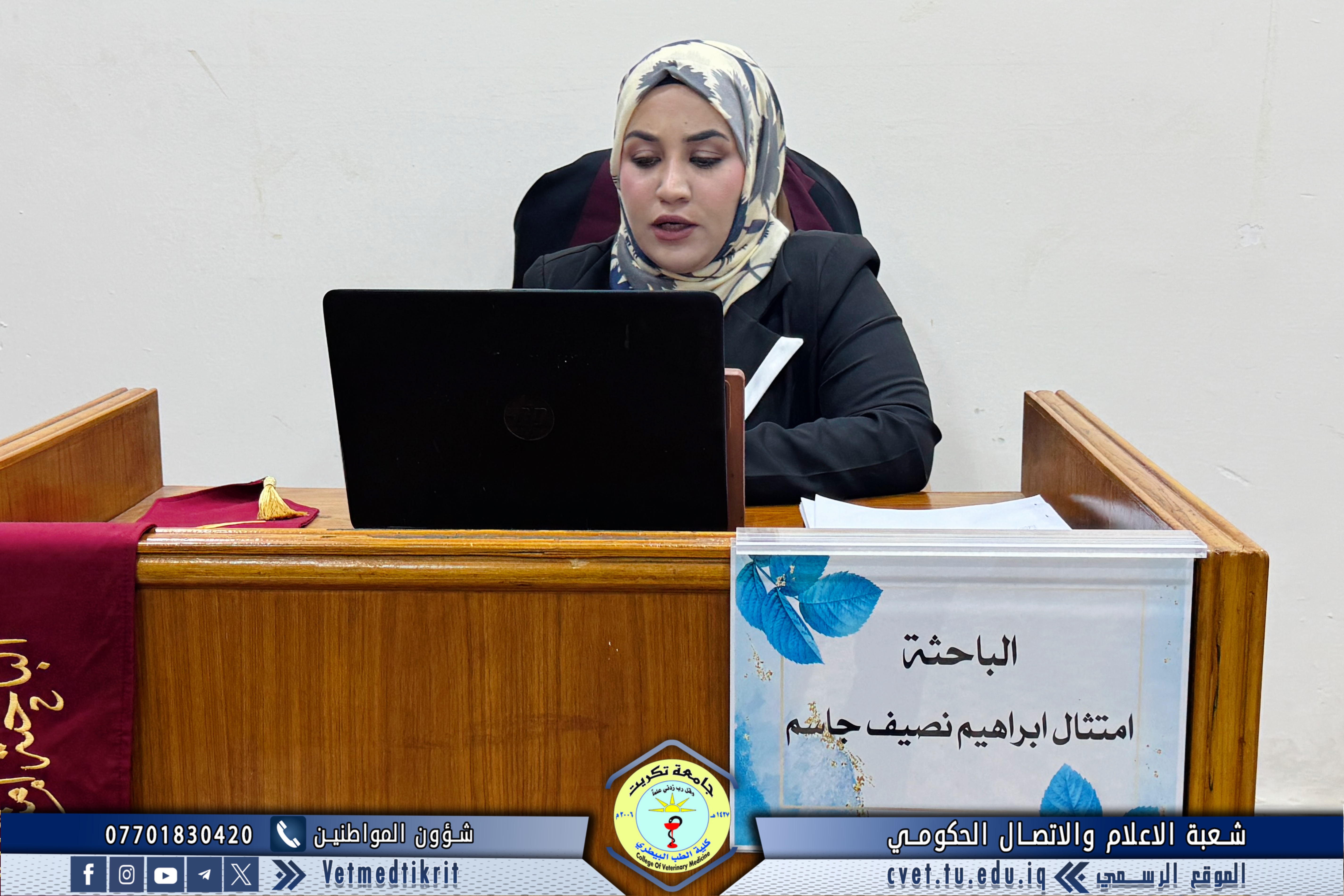 تم بعون الله تعالى في كلية الطب البيطري بجامعة تكريت مناقشة رسالة الماجستير الموسومة (دراسة تشخيصية لمرض نقص النحاس في الأغنام) للطالبة (امتثال ابراهيم نصيف) في تخصص (التشخيصات المرضية). حيث تألفت لجنة المناقشة من كل من: