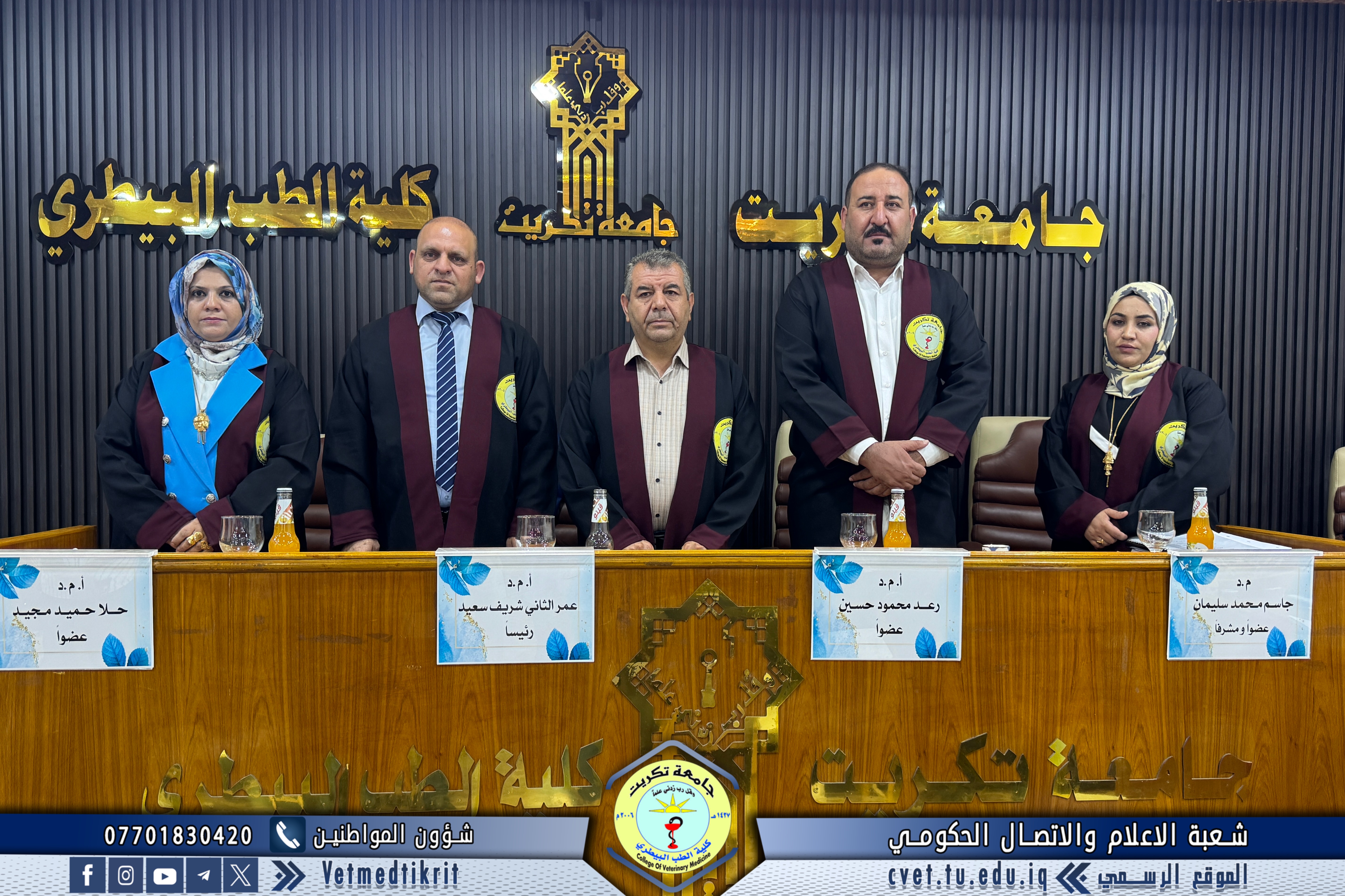 وحضر المناقشة التي اقيمت على قاعة د. مهند ماهر في كلية الطب البيطري عدد من السيدات والسادة اعضاء الكادر التدريسي وجمع من الطلبة.